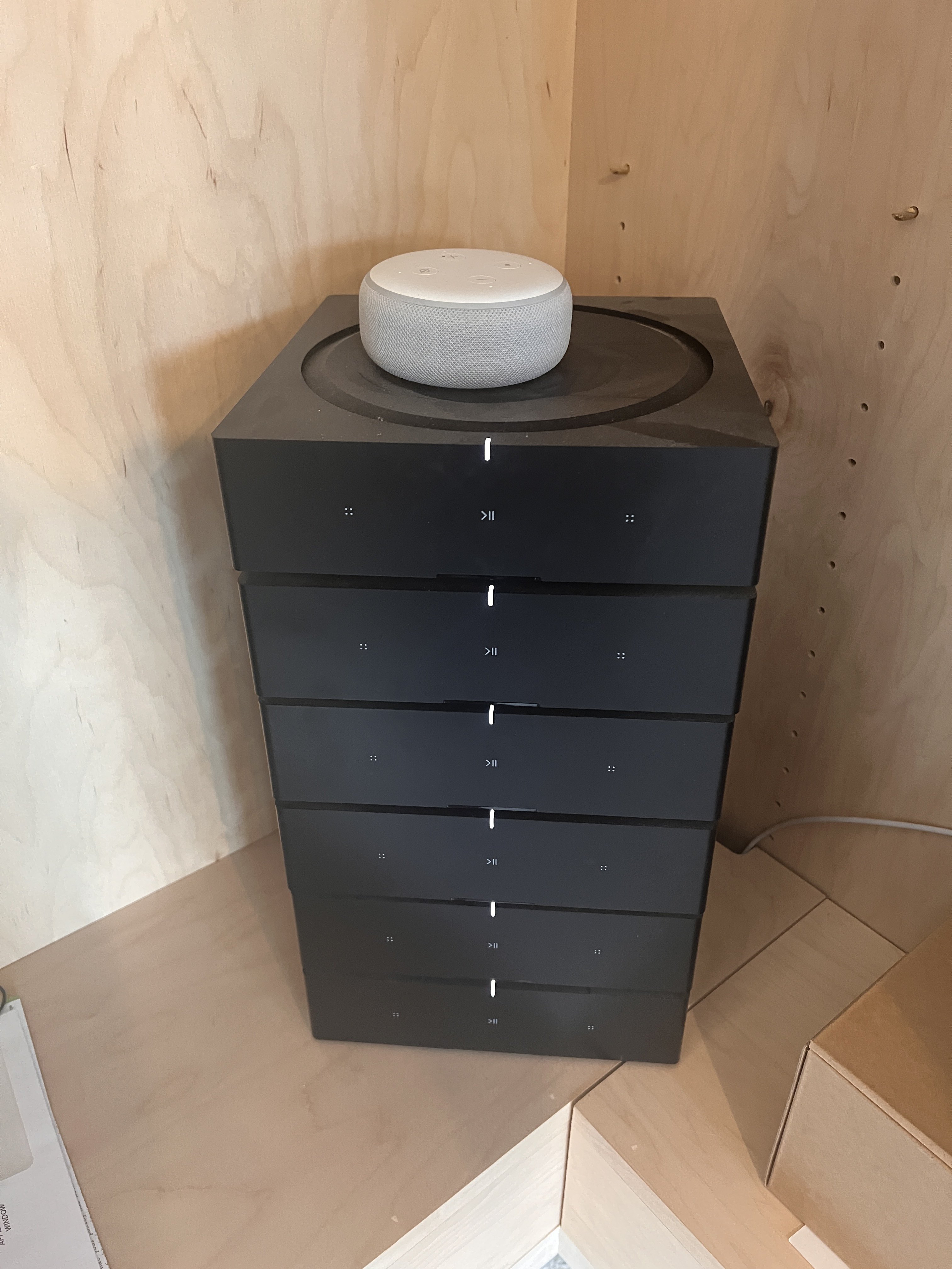 We have moved a bit around in the living room as well as gotten ourselves a TV (first TV I've ever owned...) and now we are looking at an audio set-up for music that will serve us.