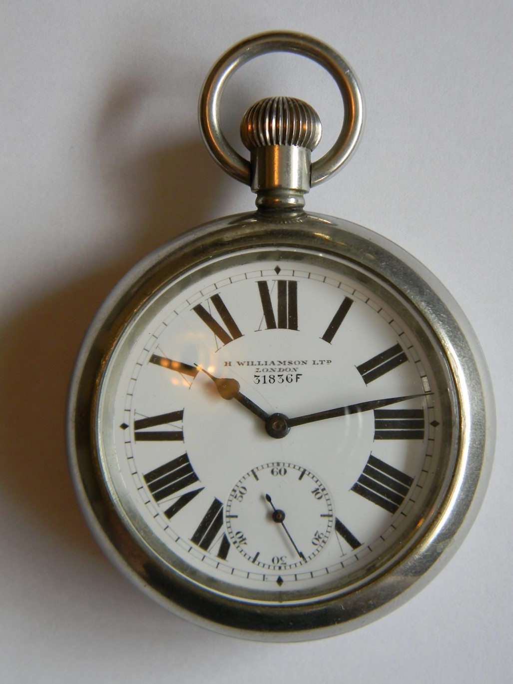 For most of WWI, standard British military issue for the Army was a 7-jewel pocket watch, supplied by the established English firms of H Williamson, H White, and W Ehrhardt. Once the USA entered the war, 7-jewel pocket watches were supplied also by Elgin, c 1917.