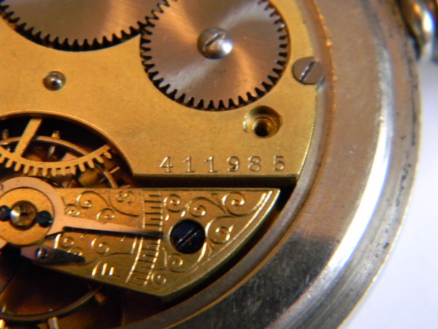 All G.S. watches were marked as standard with a military issue/contract number consisting of the item’s serial number followed by a letter code (vocab letter) that related to the maker’s name. English makers marked the military issue/contract number in 3 places:
