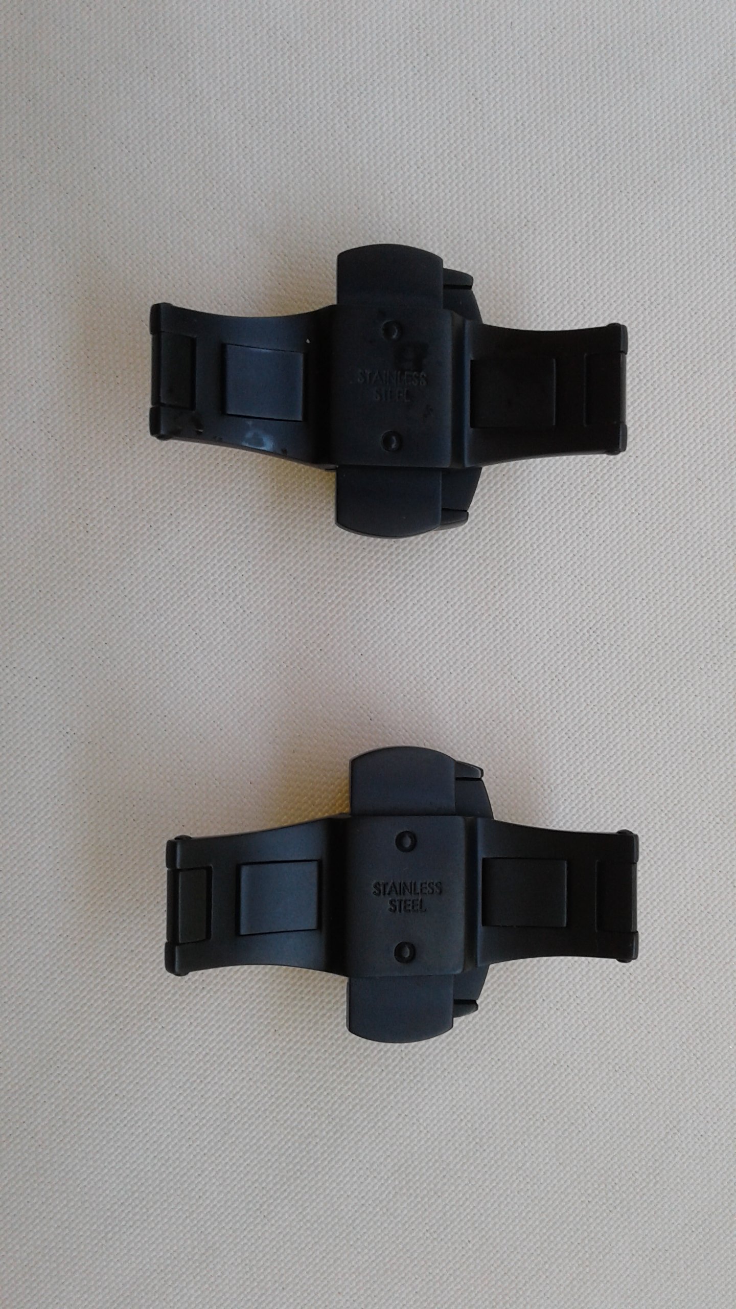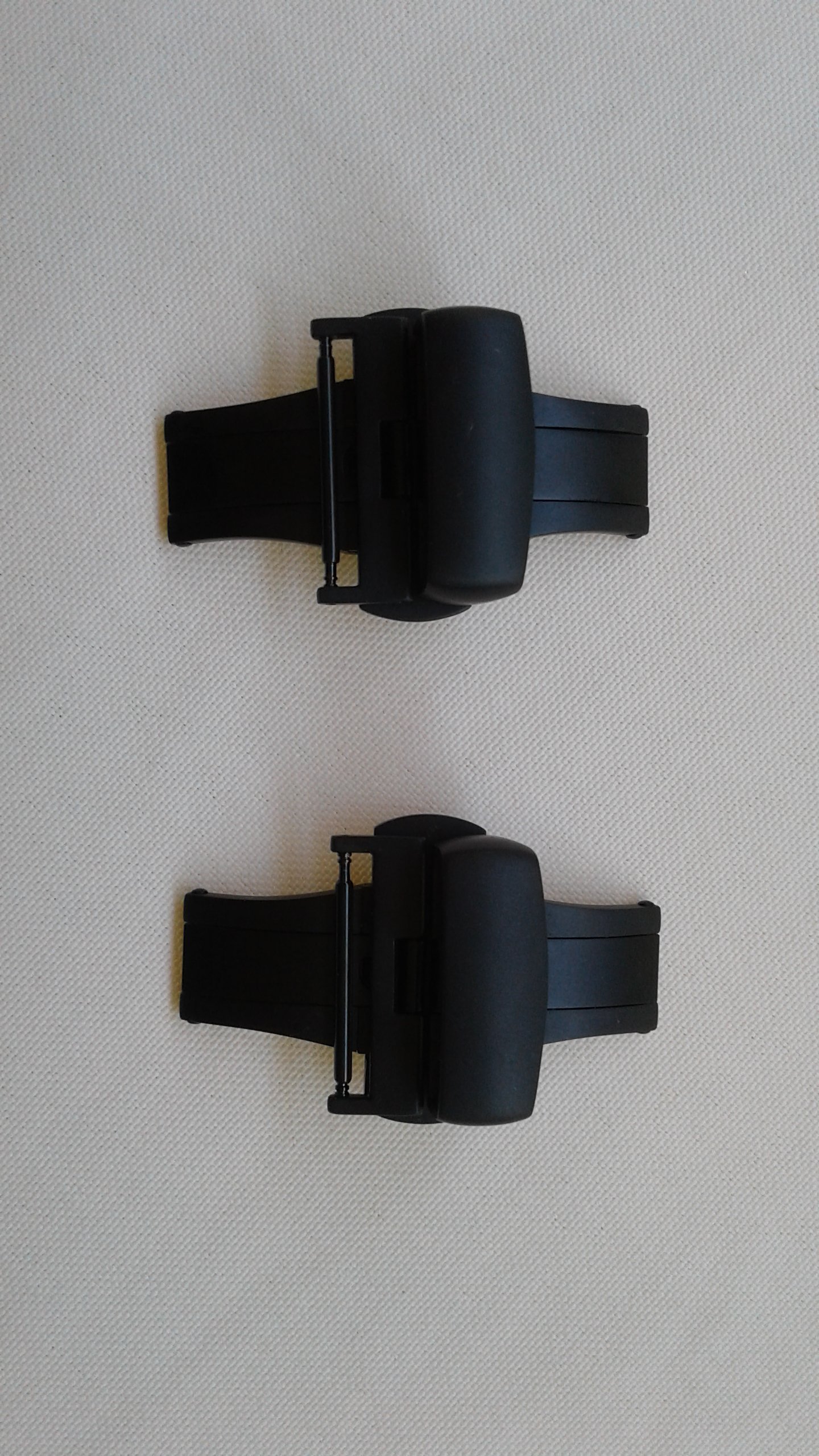 For sale I have x2 Hadley-Roma 20mm butterfly deployant clasp in black PVD model BKL150 in as new condition. These clasps work on all conventional/regular straps with 20mm buckle ends. Comes with black PVD spring bar and is easy to install. Push button closure/release, fits straps up to 4mm thick, heavy gauge 316L Stainless Steel with matte black PVD coating. Bought new by me from Holben's Fine Watch Bands. Sell as a pair only, won't separate.
