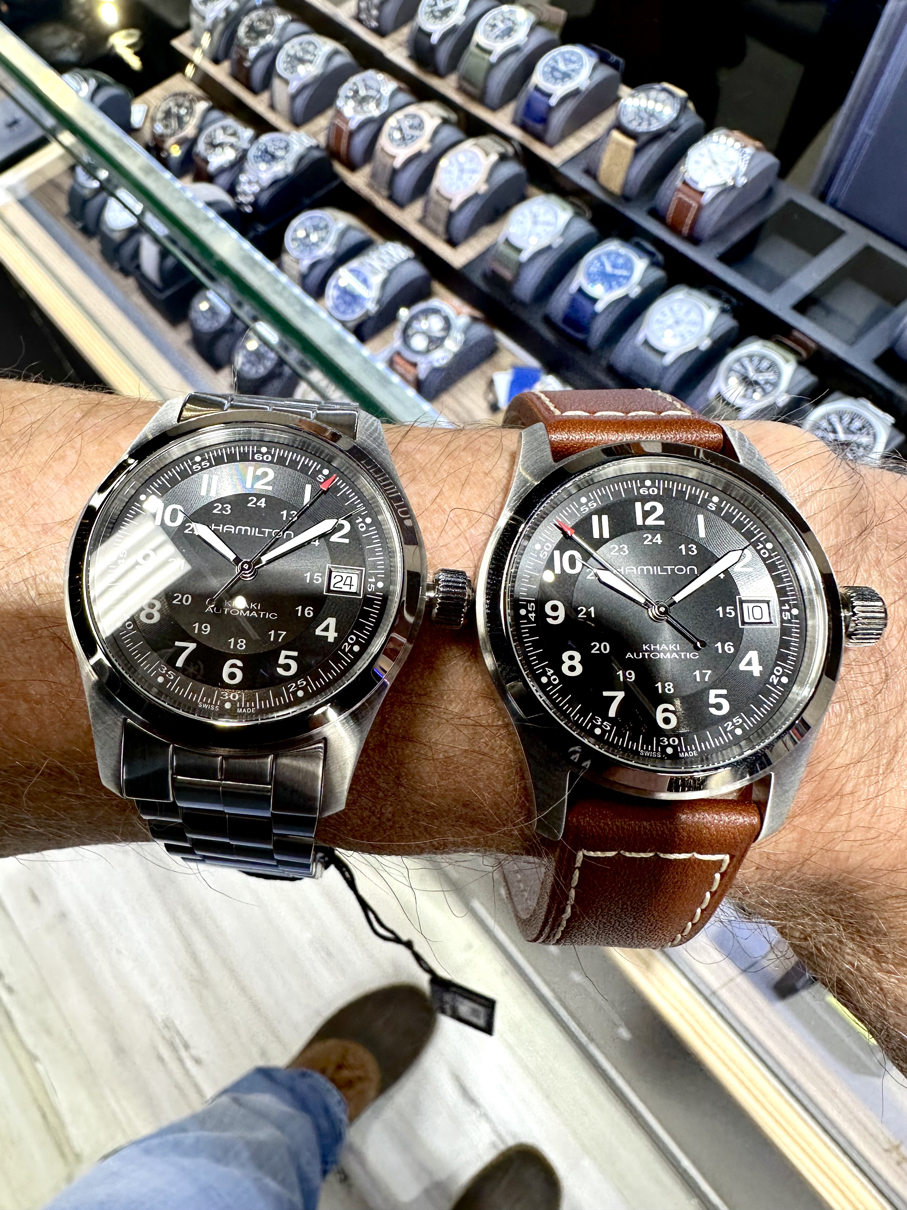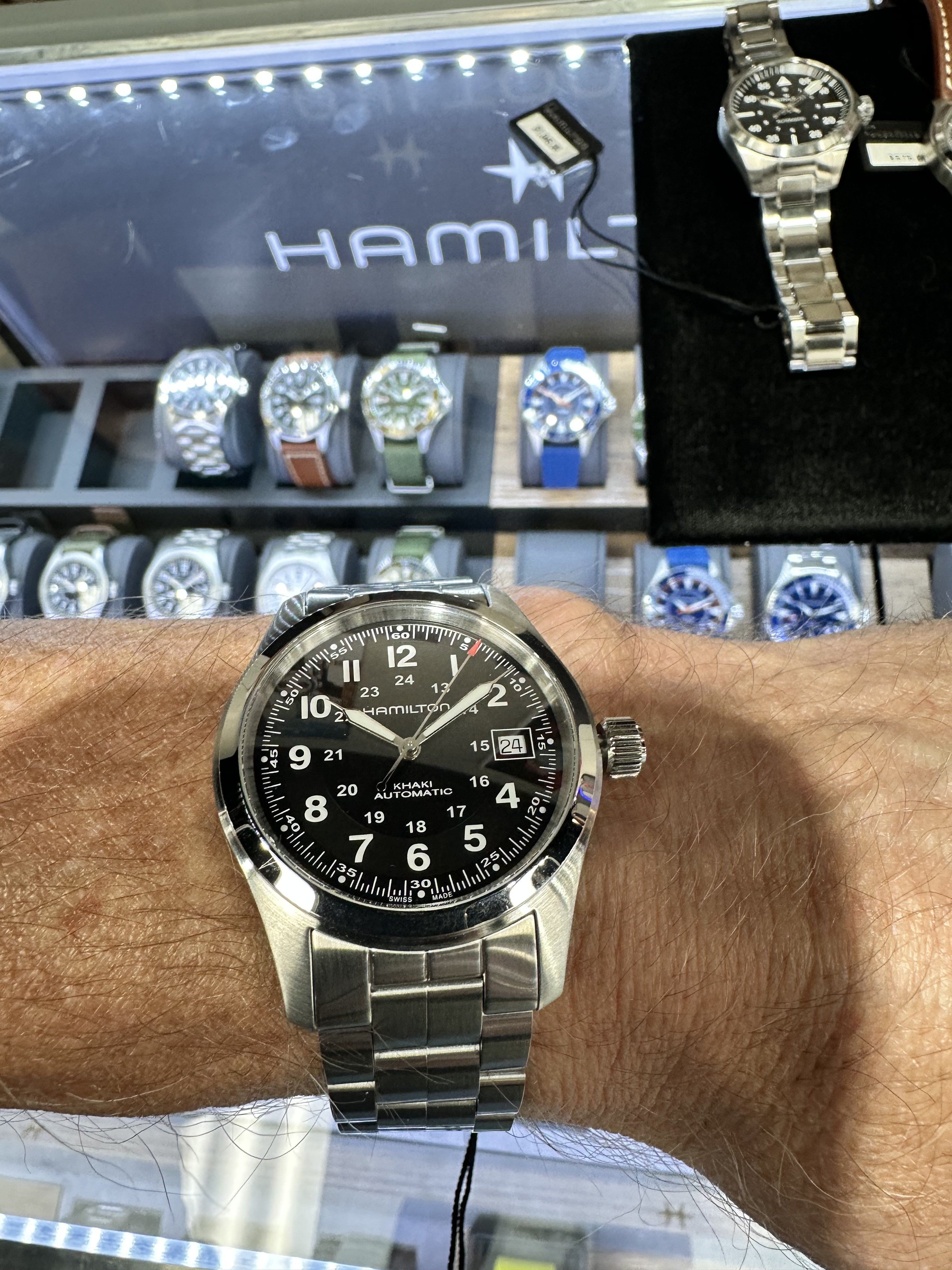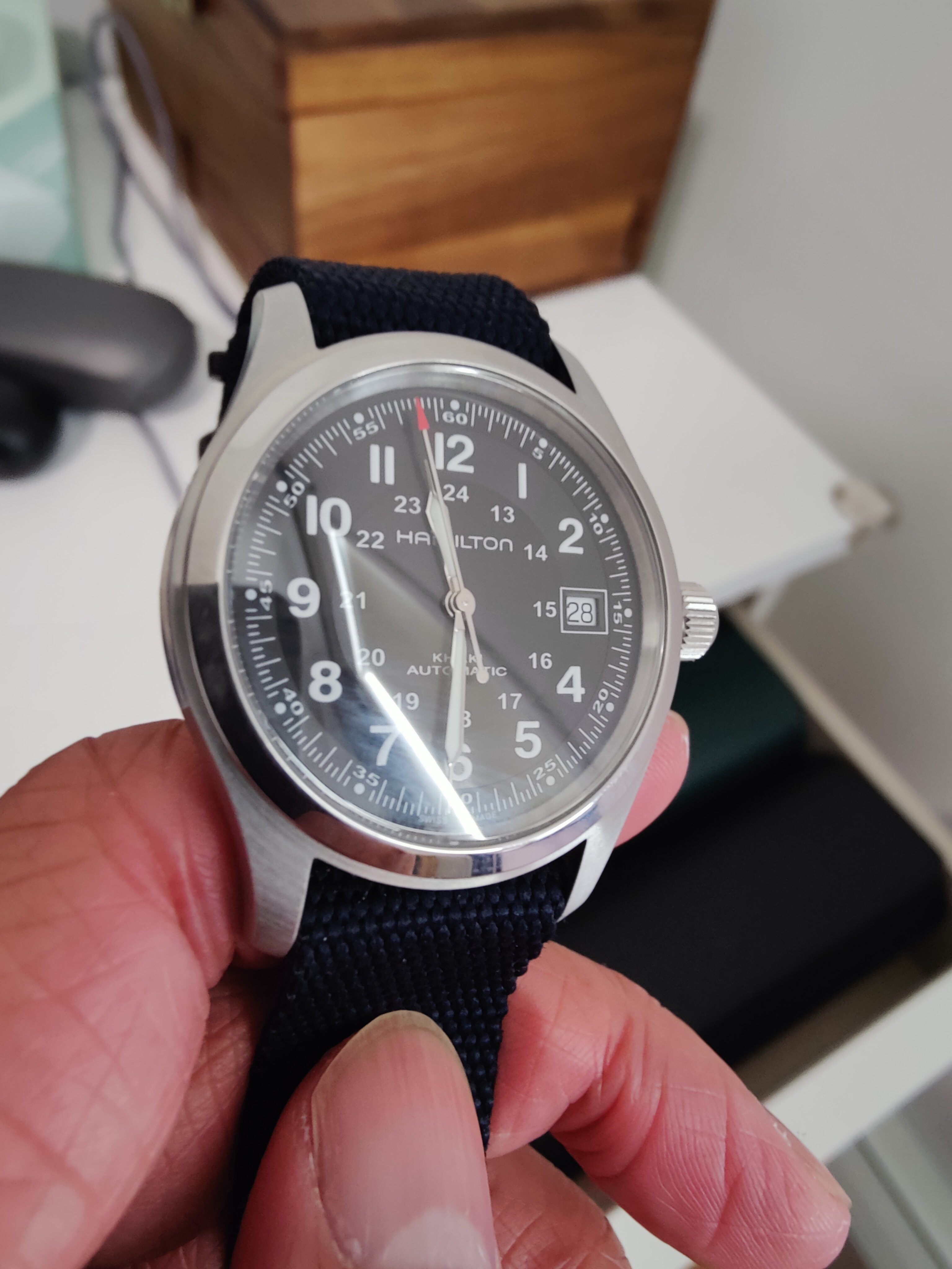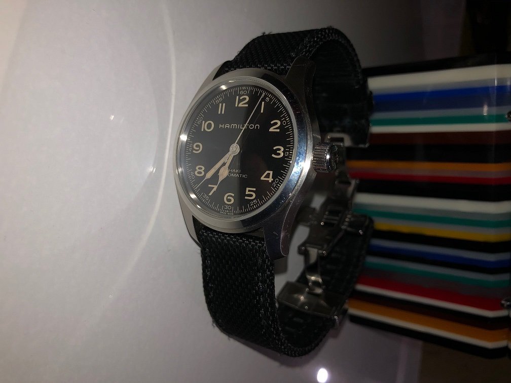 I'll be the devil's advocate and will say that I am not a fan of the Khaki Field. I own it and it gets no wear because there's just too much glare. I don't know if the AR on the sapphire crystal is bad or the dial is reflecting too much light because of the angles but the glare is very annoying. I much rather have it on acrylic than crappy anti reflective coating.