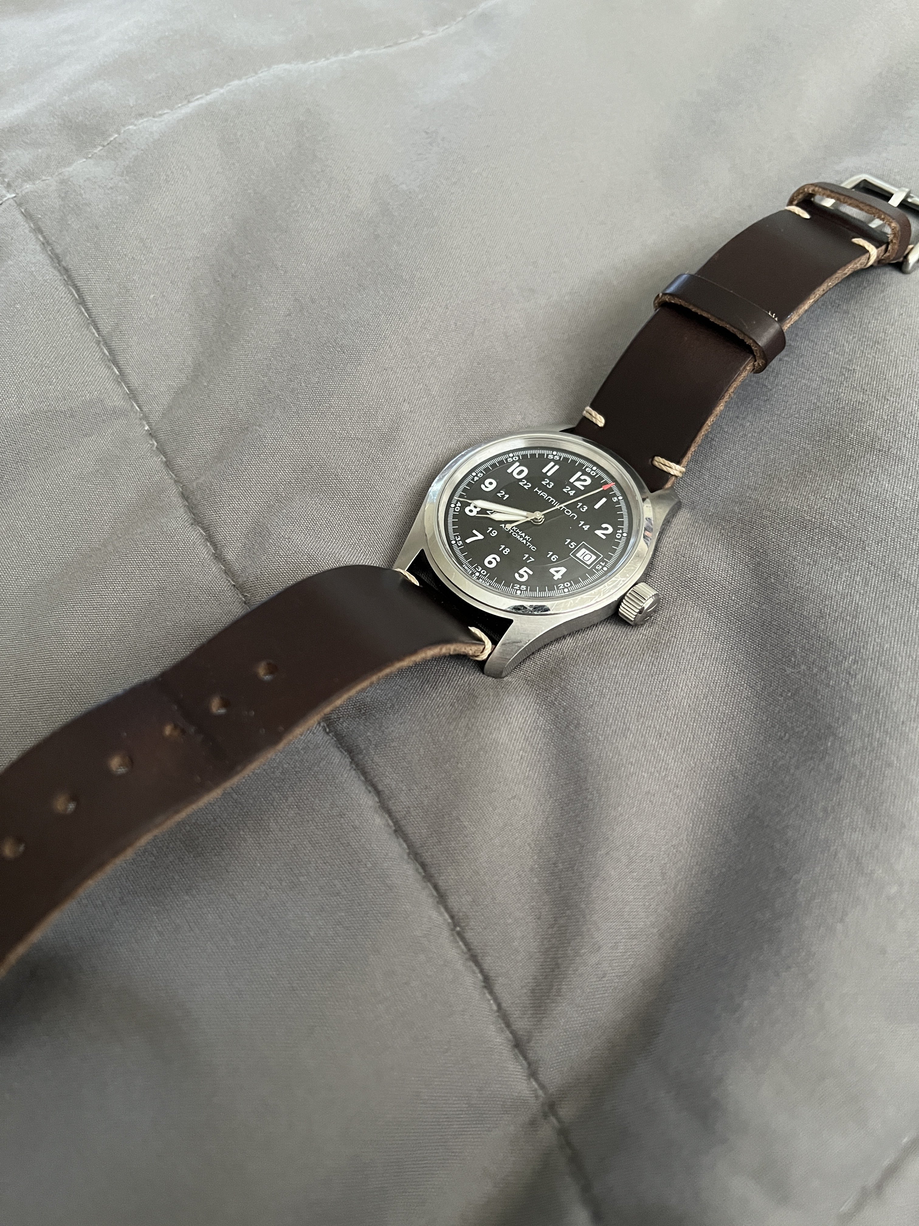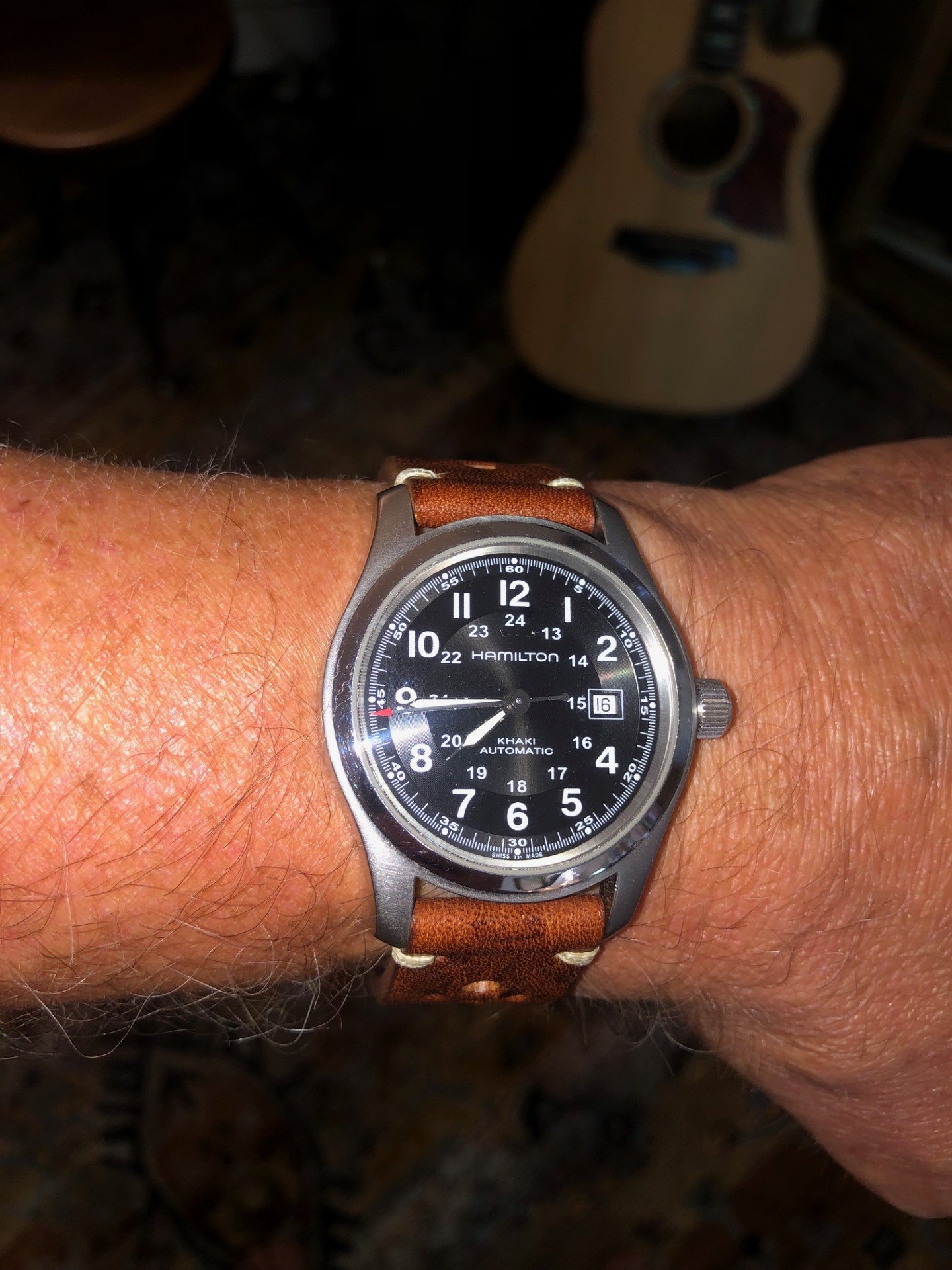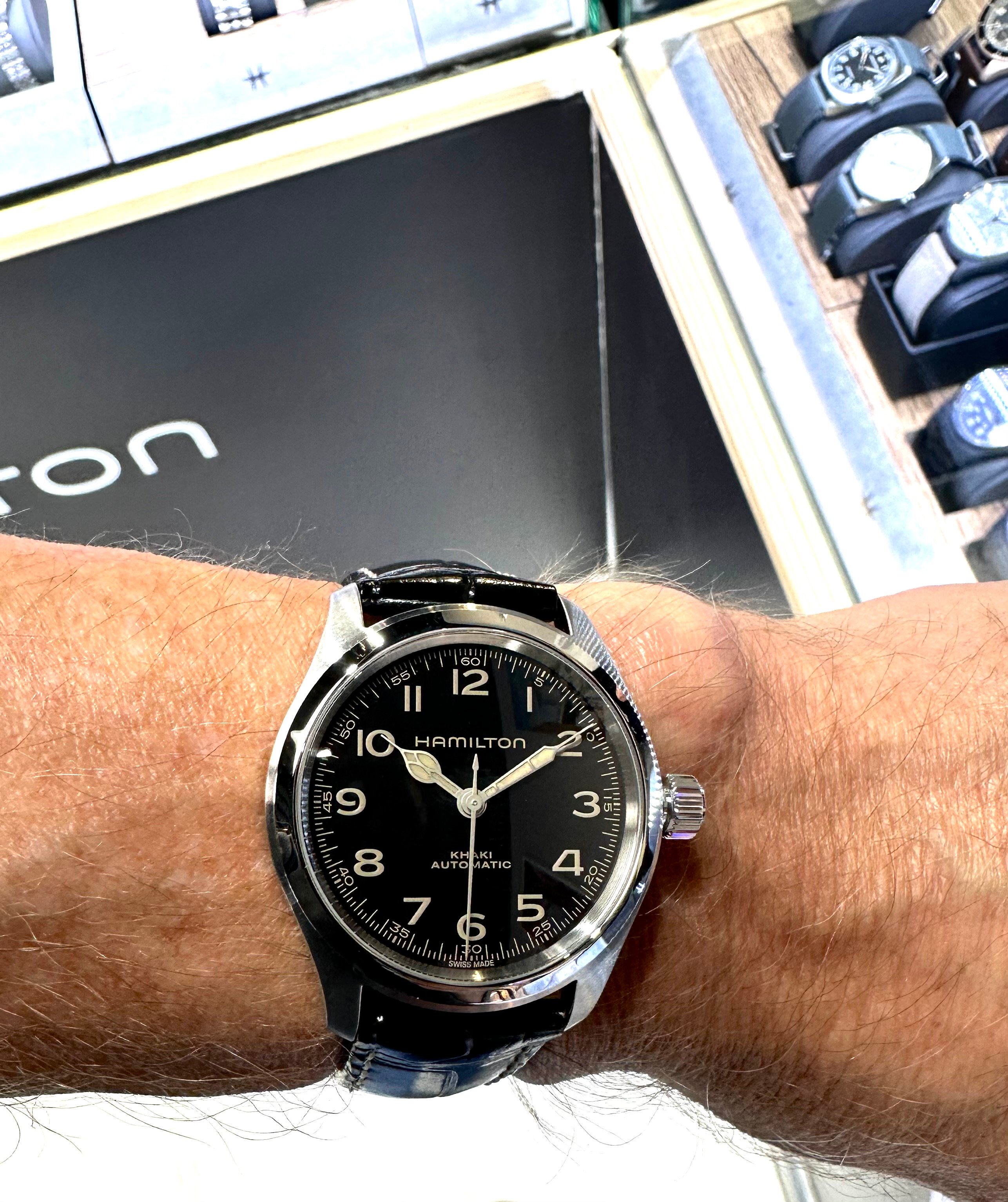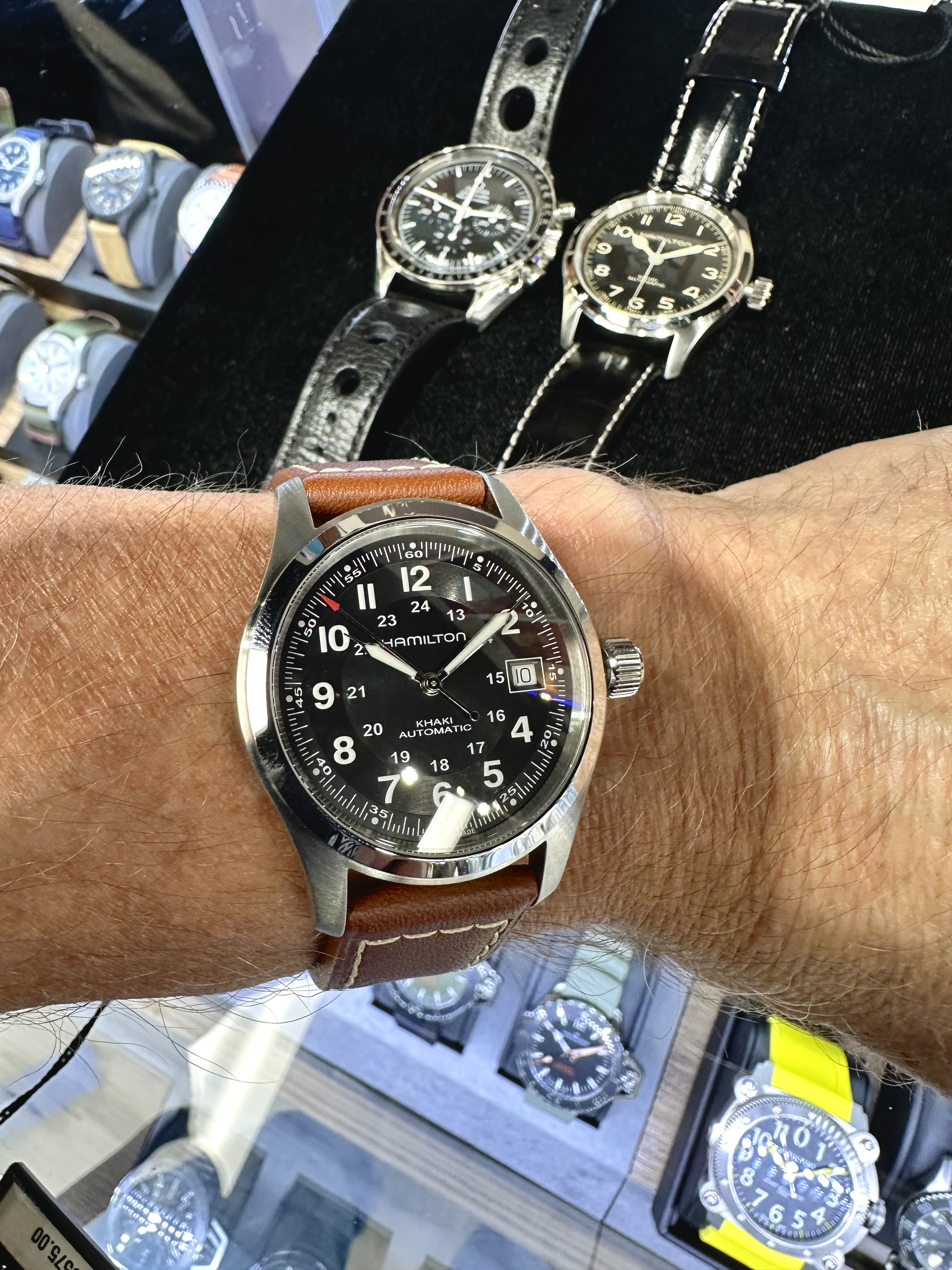 I'll be the devil's advocate and will say that I am not a fan of the Khaki Field. I own it and it gets no wear because there's just too much glare. I don't know if the AR on the sapphire crystal is bad or the dial is reflecting too much light because of the angles but the glare is very annoying. I much rather have it on acrylic than crappy anti reflective coating.