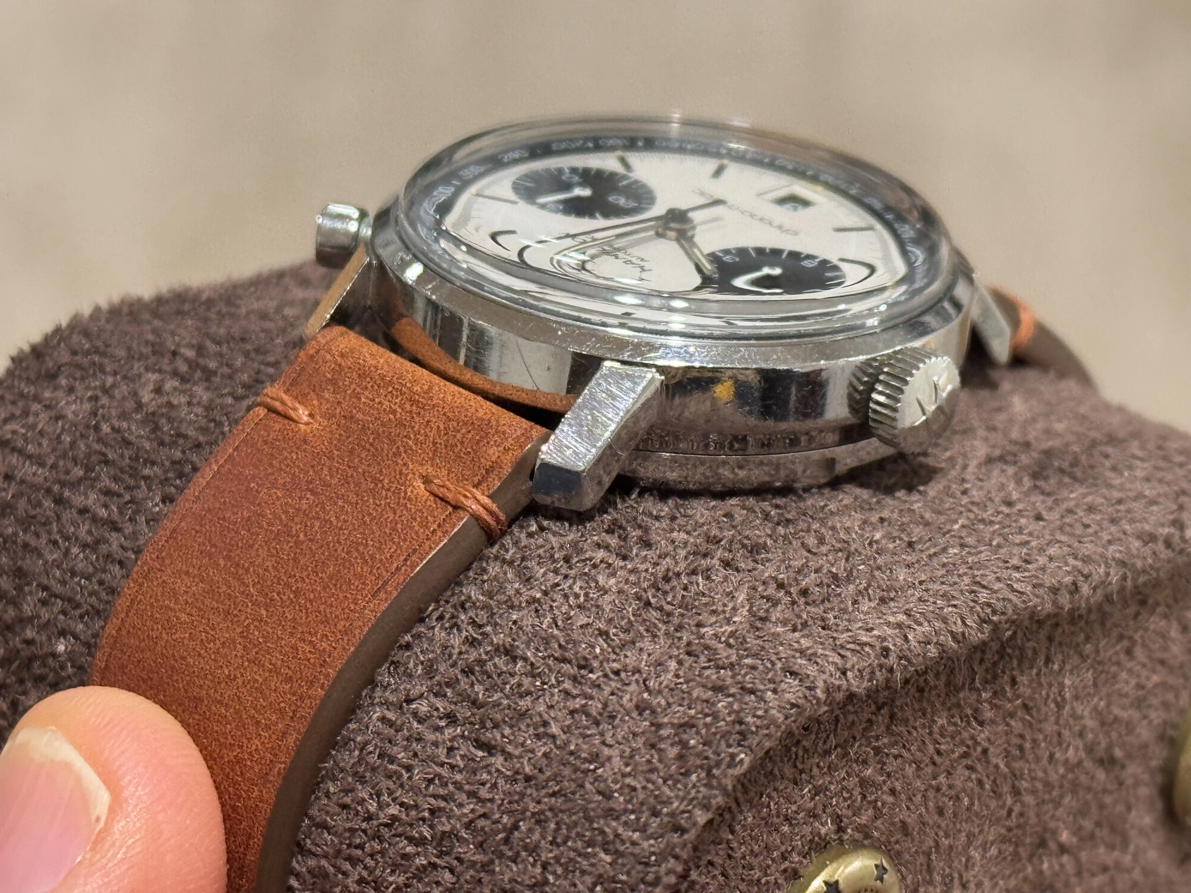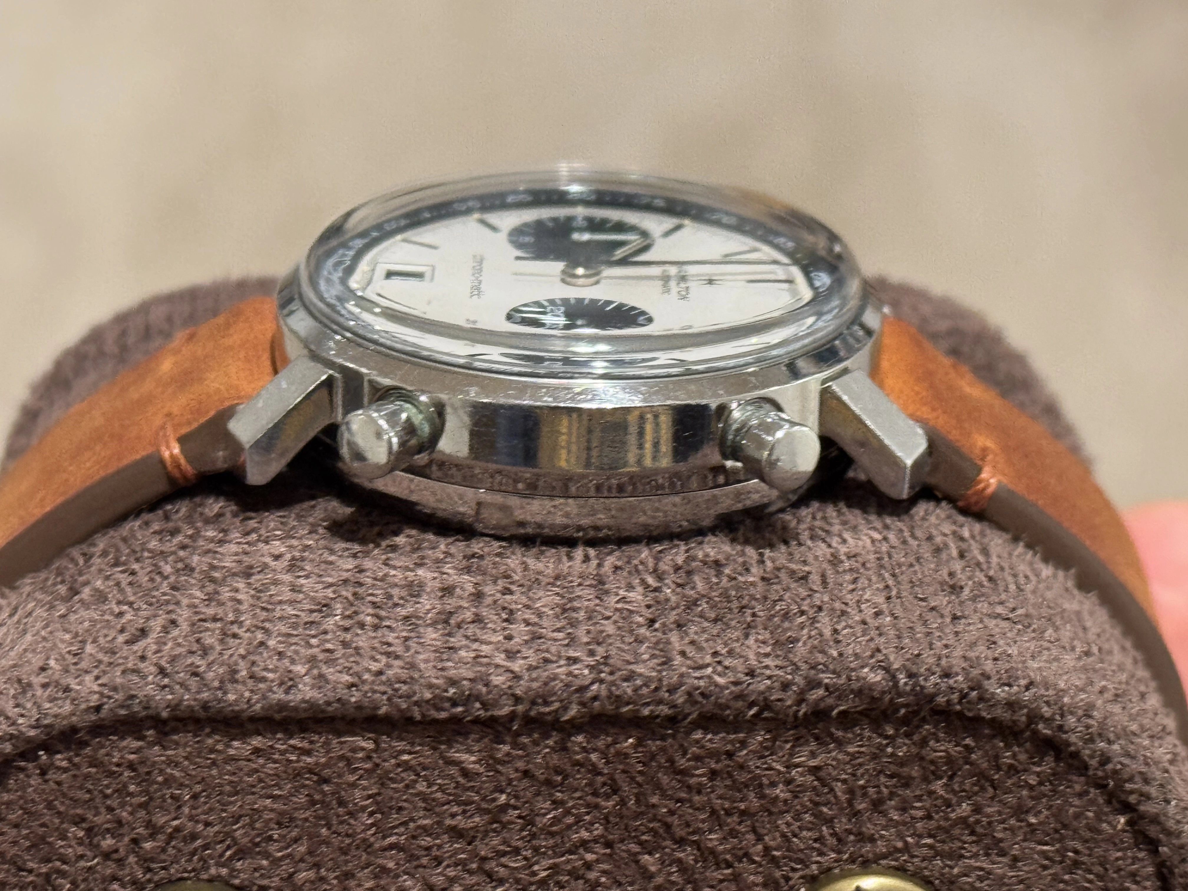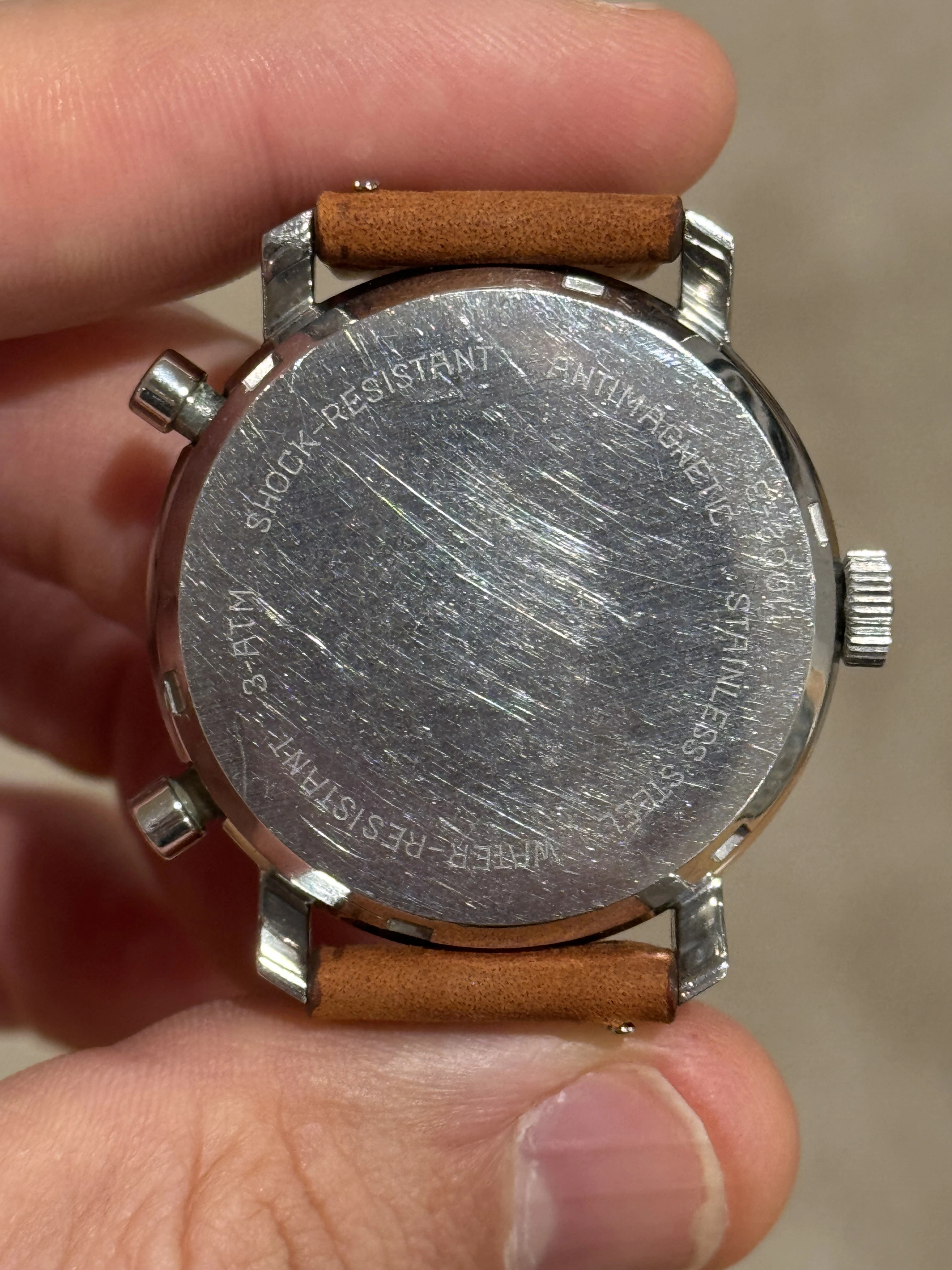 No dents/dings/major scratches, but the case and caseback have many fine scratches commensurate with its age.