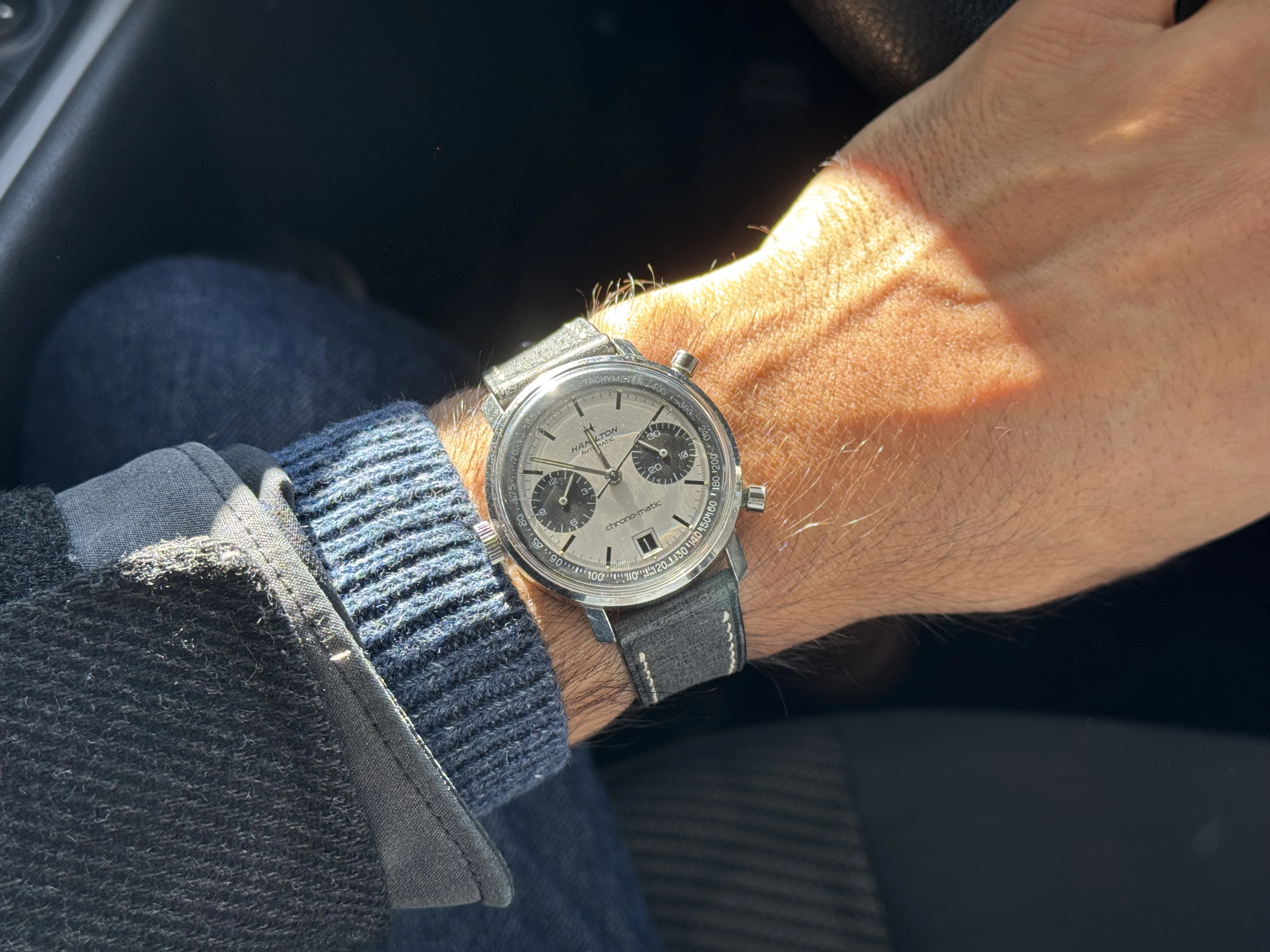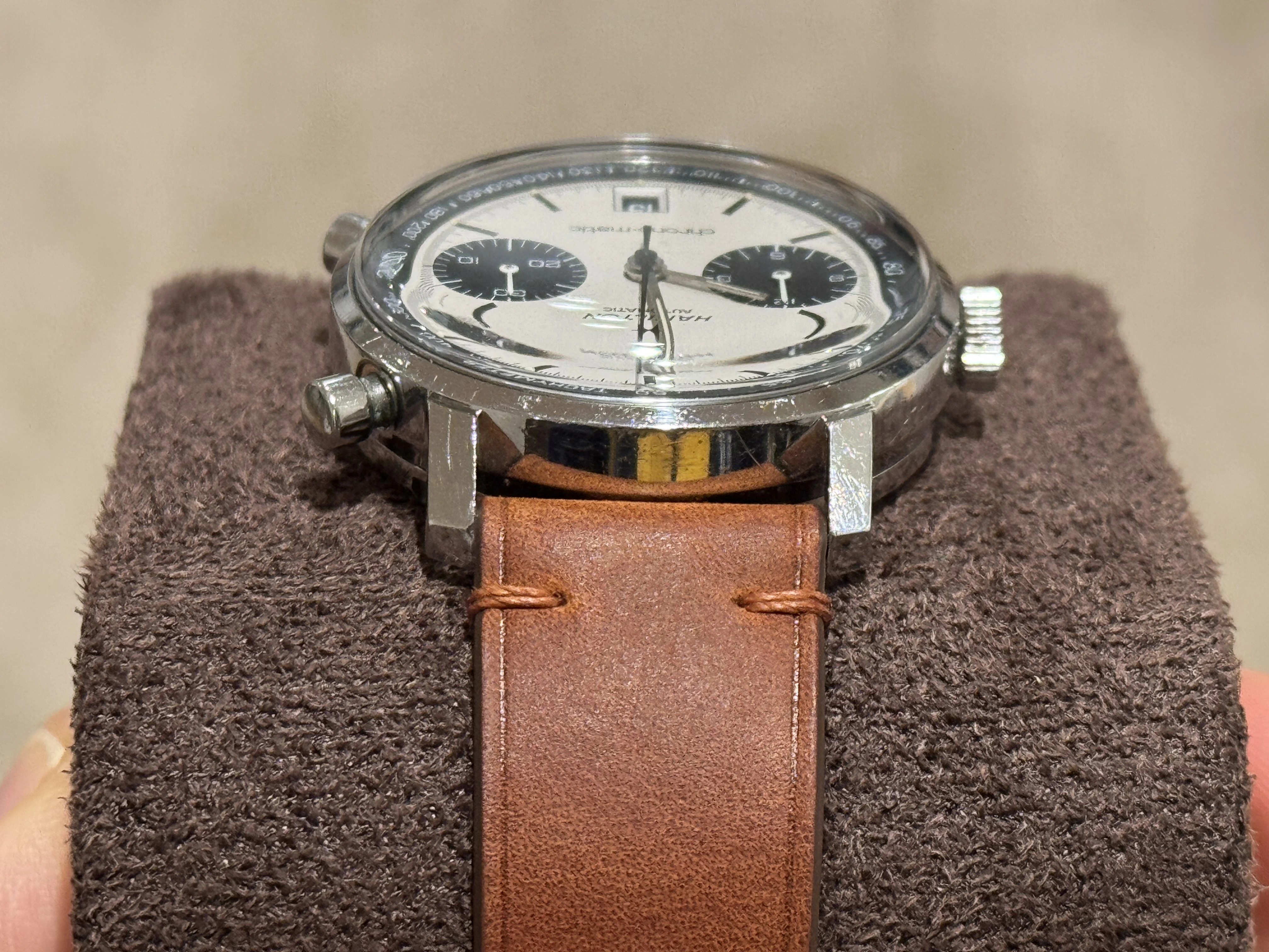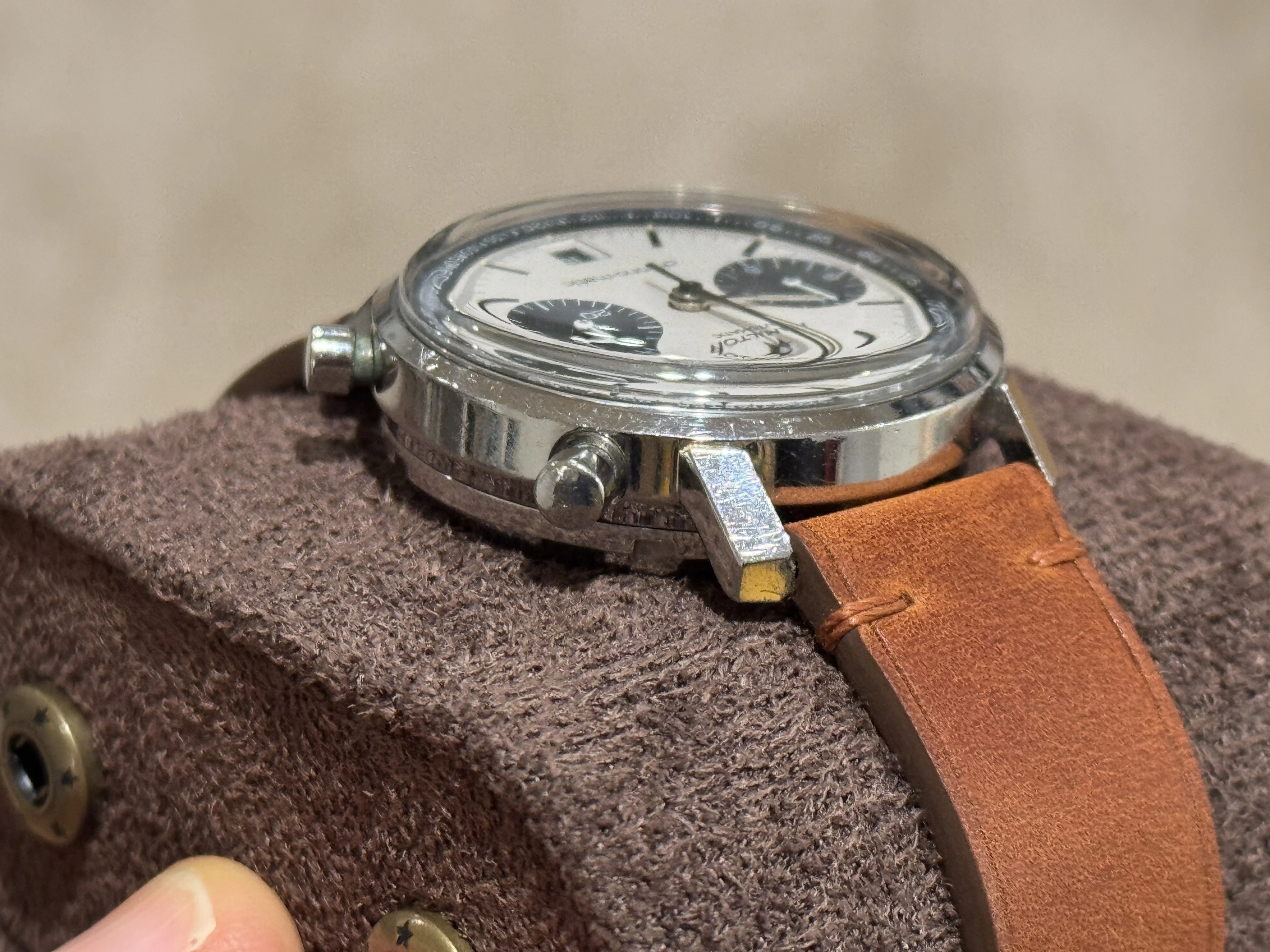No dents/dings/major scratches, but the case and caseback have many fine scratches commensurate with its age.