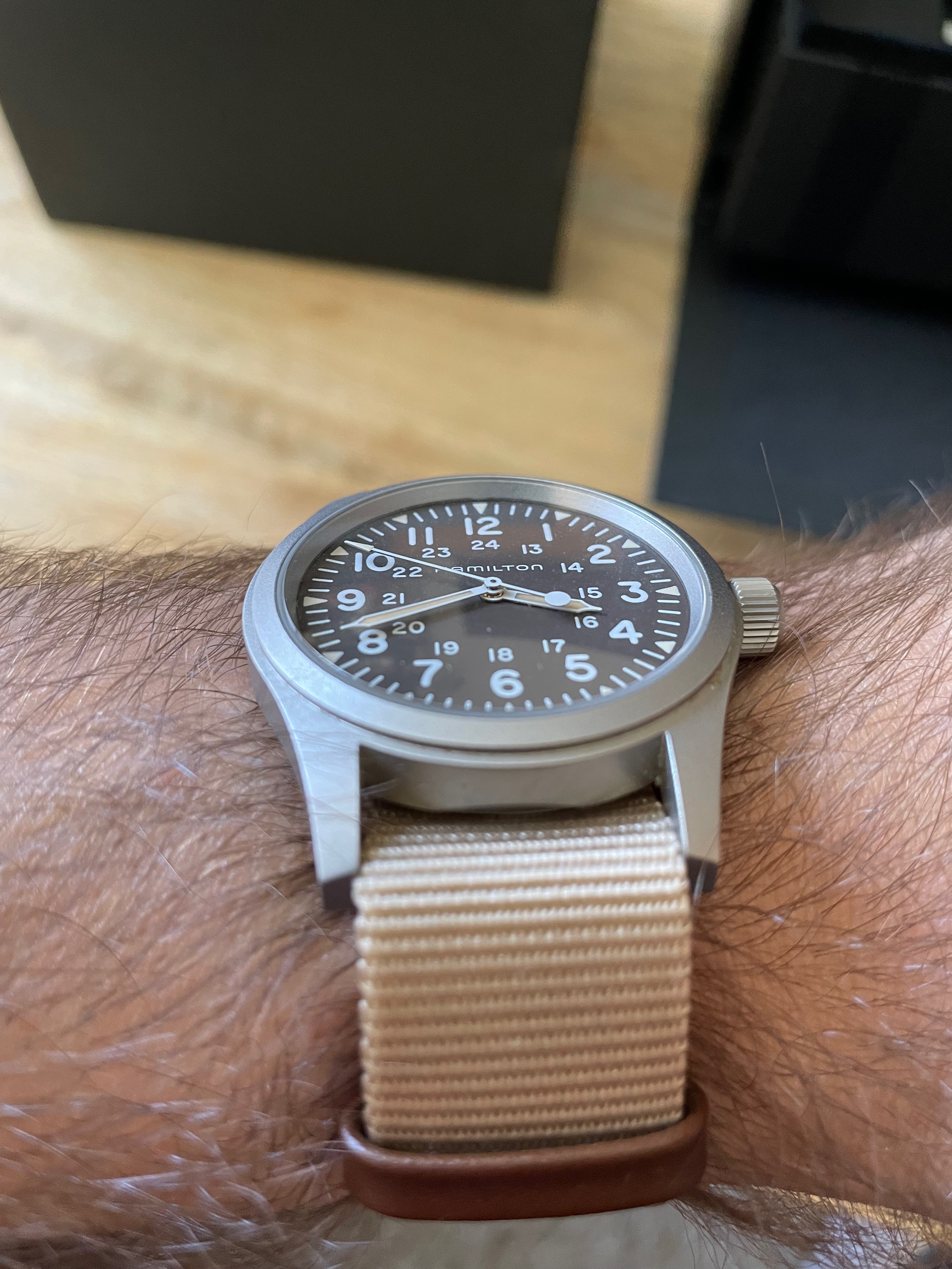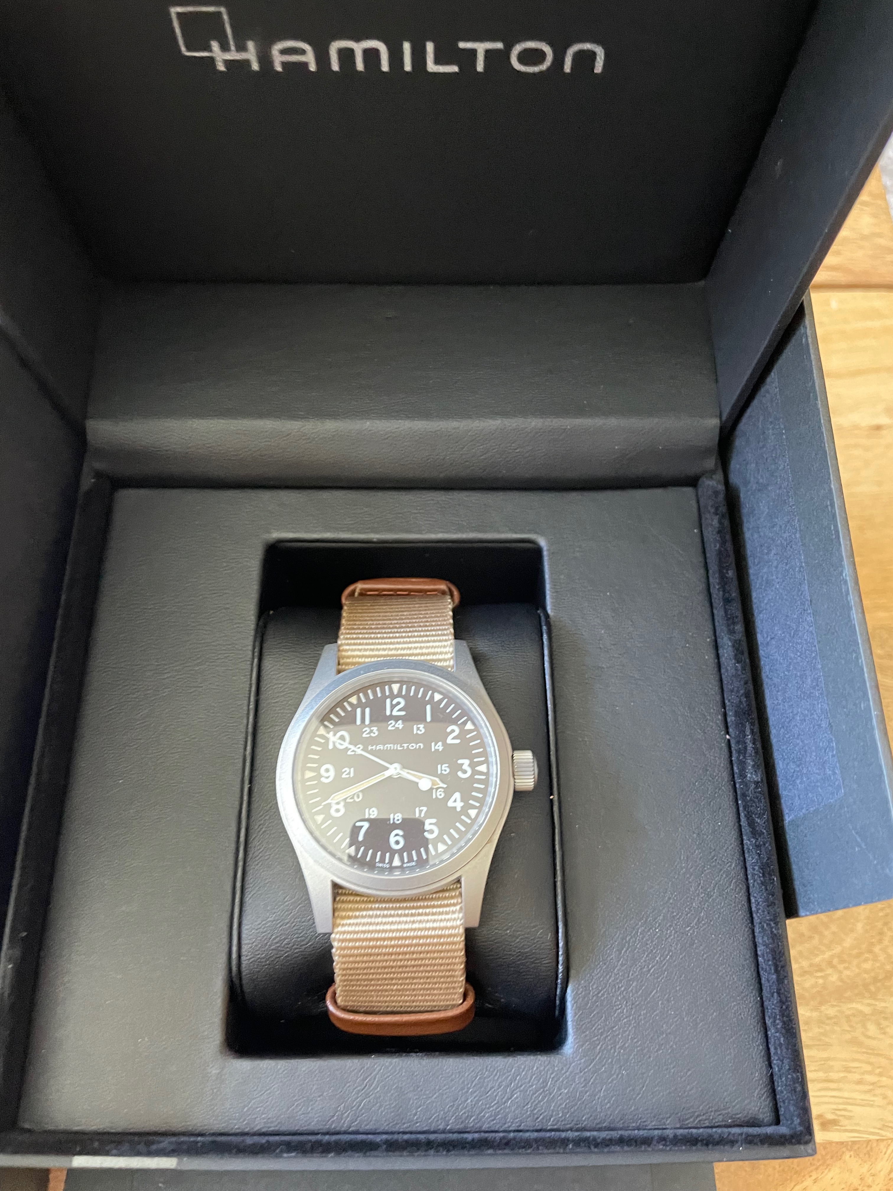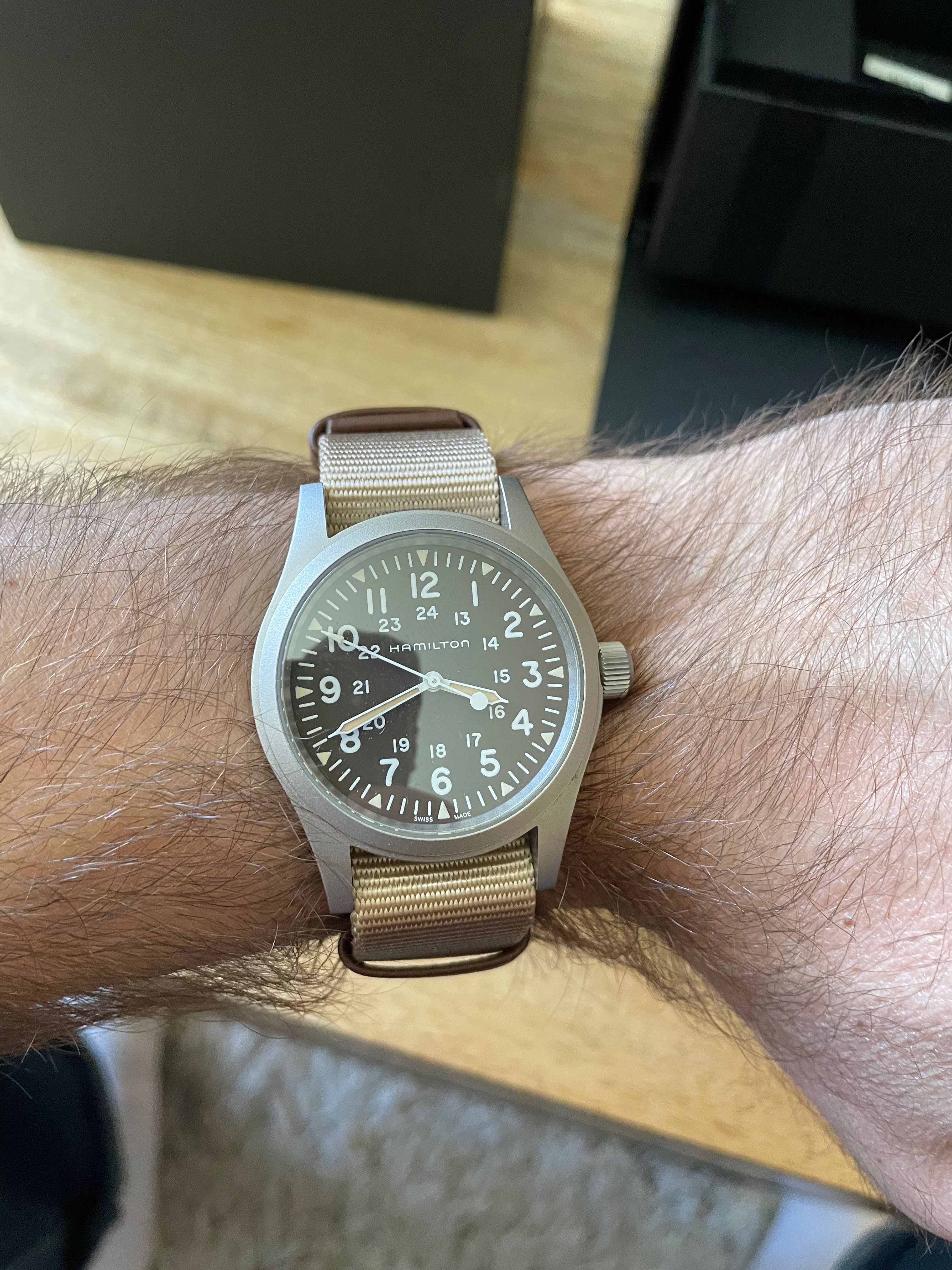 ·Listing this basically unworn Hamilton Khaki Field Mechanical with a brown dial as it hasn't received any wrist time since I received it as a gift some ~3 years ago. Overall, I love the watch and I think it's an incredible value, but it just doesn't make sense for me to continue to hold on to it. Therefore, I'm selling this at what I think is more than reasonable discount to retail of $275 + shipping (fine with Venmo, Paypal, etc given the amount, as long as no transaction fees are incurred).