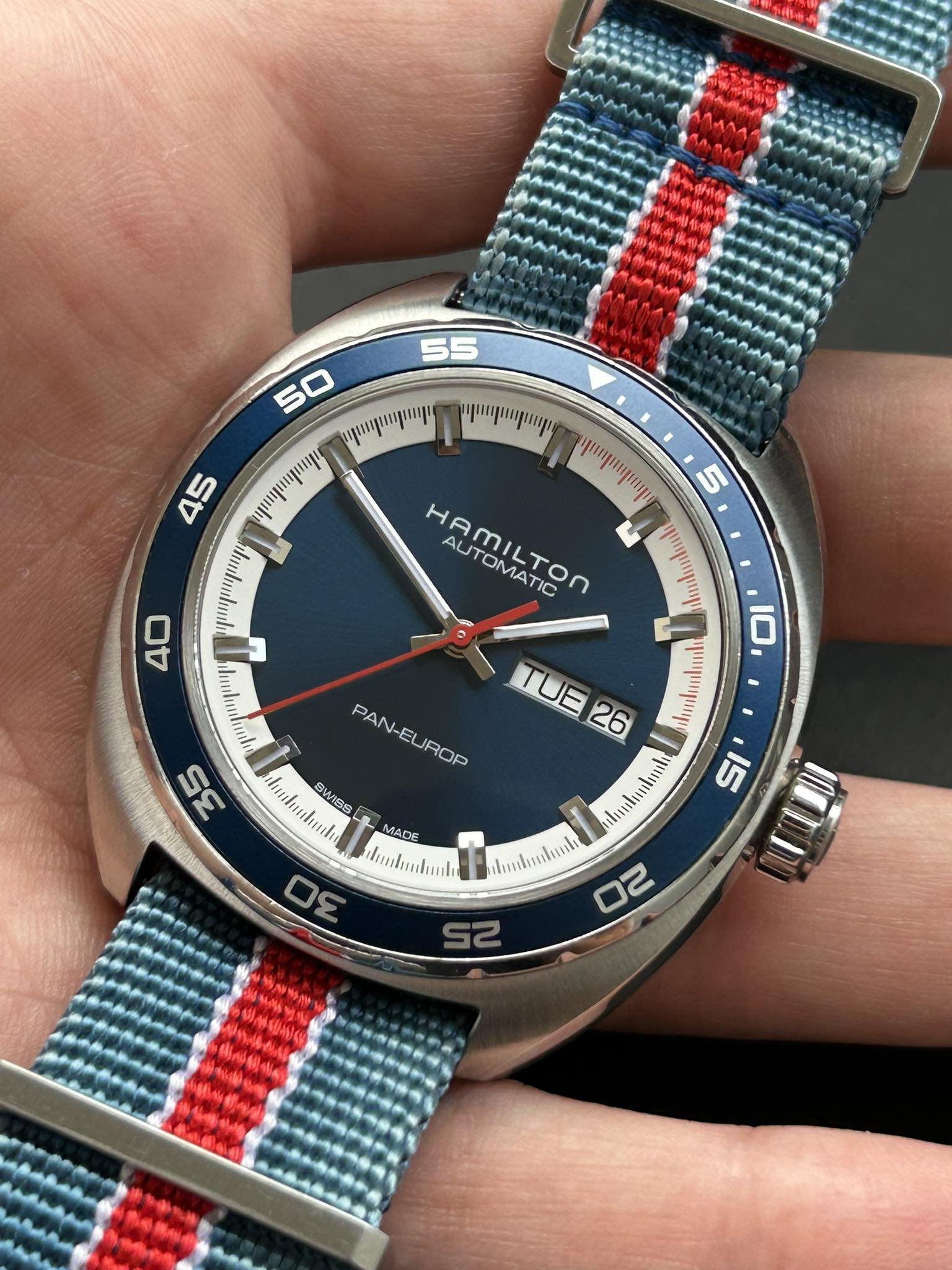 For sale this Hamilton Pan-Europ Automatic Day date in excellent condition!