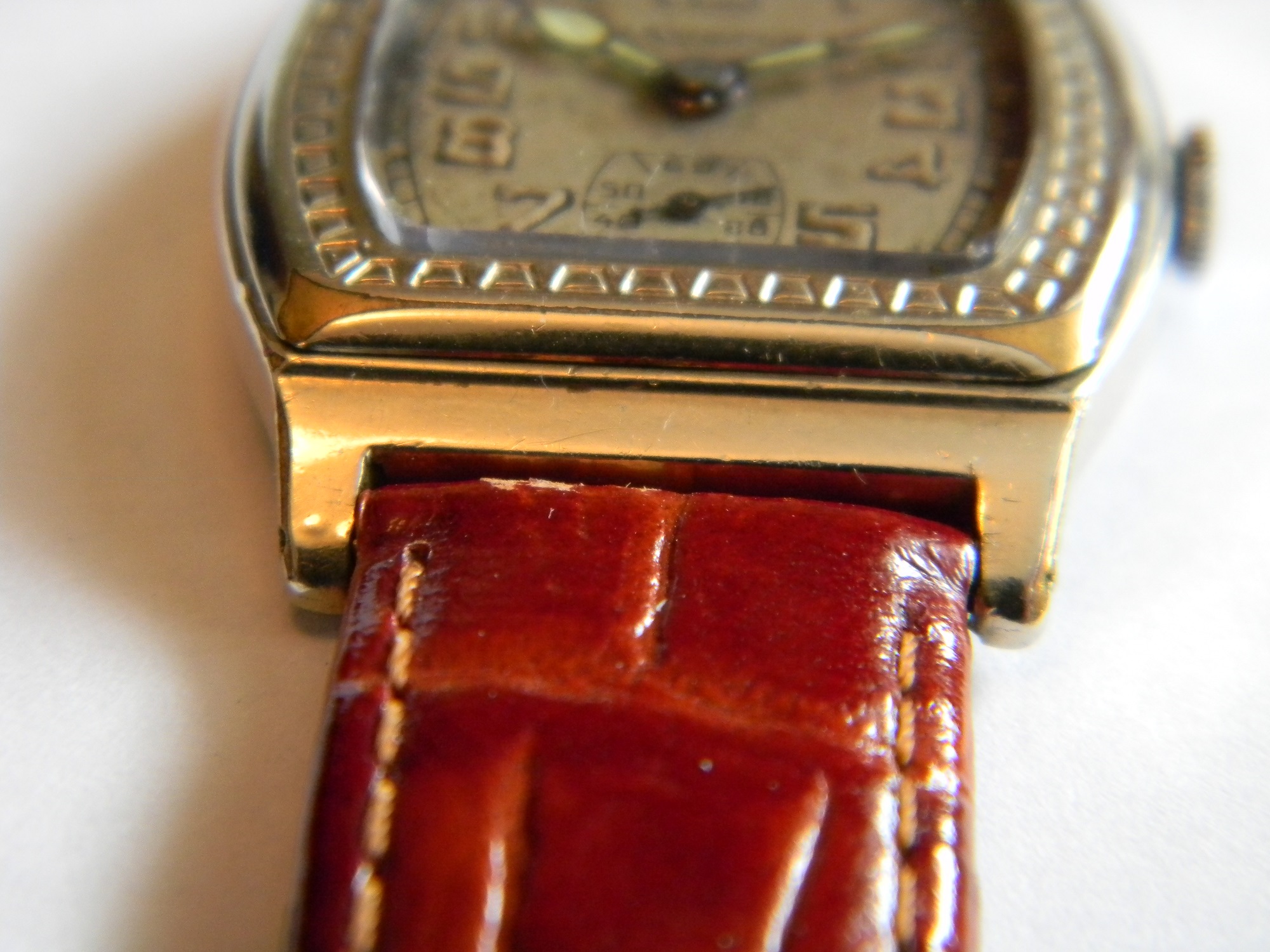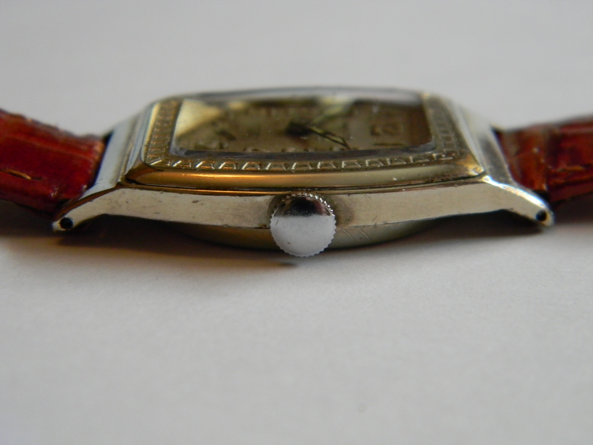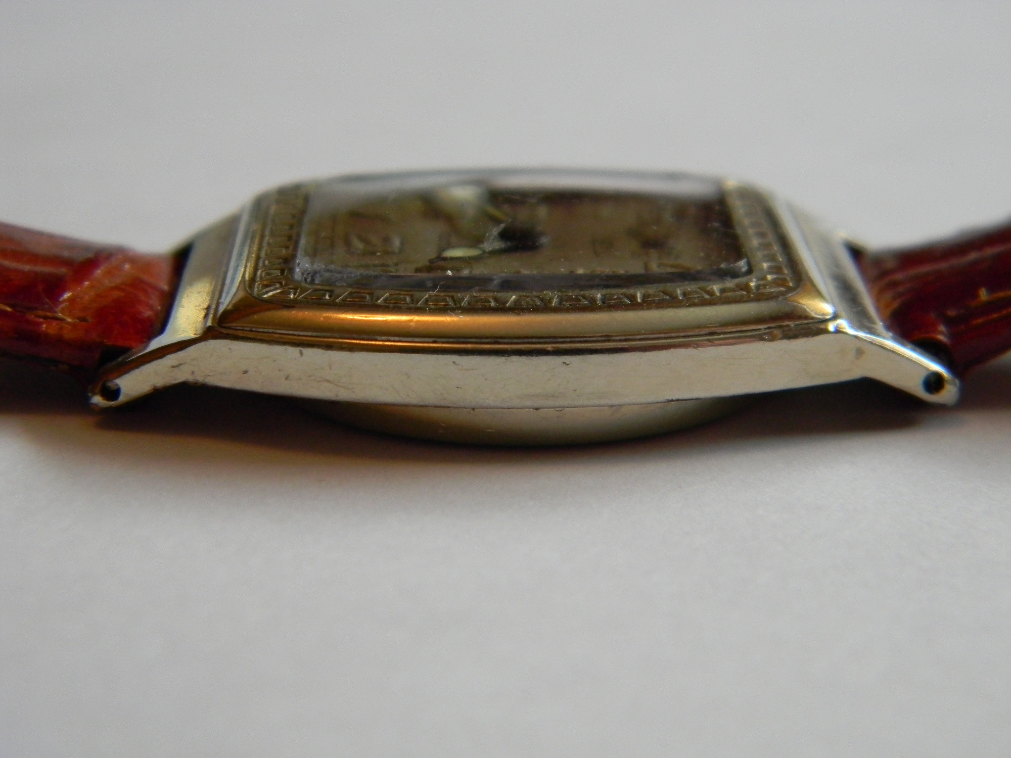 14K white gold filled case with some wear on the top corners