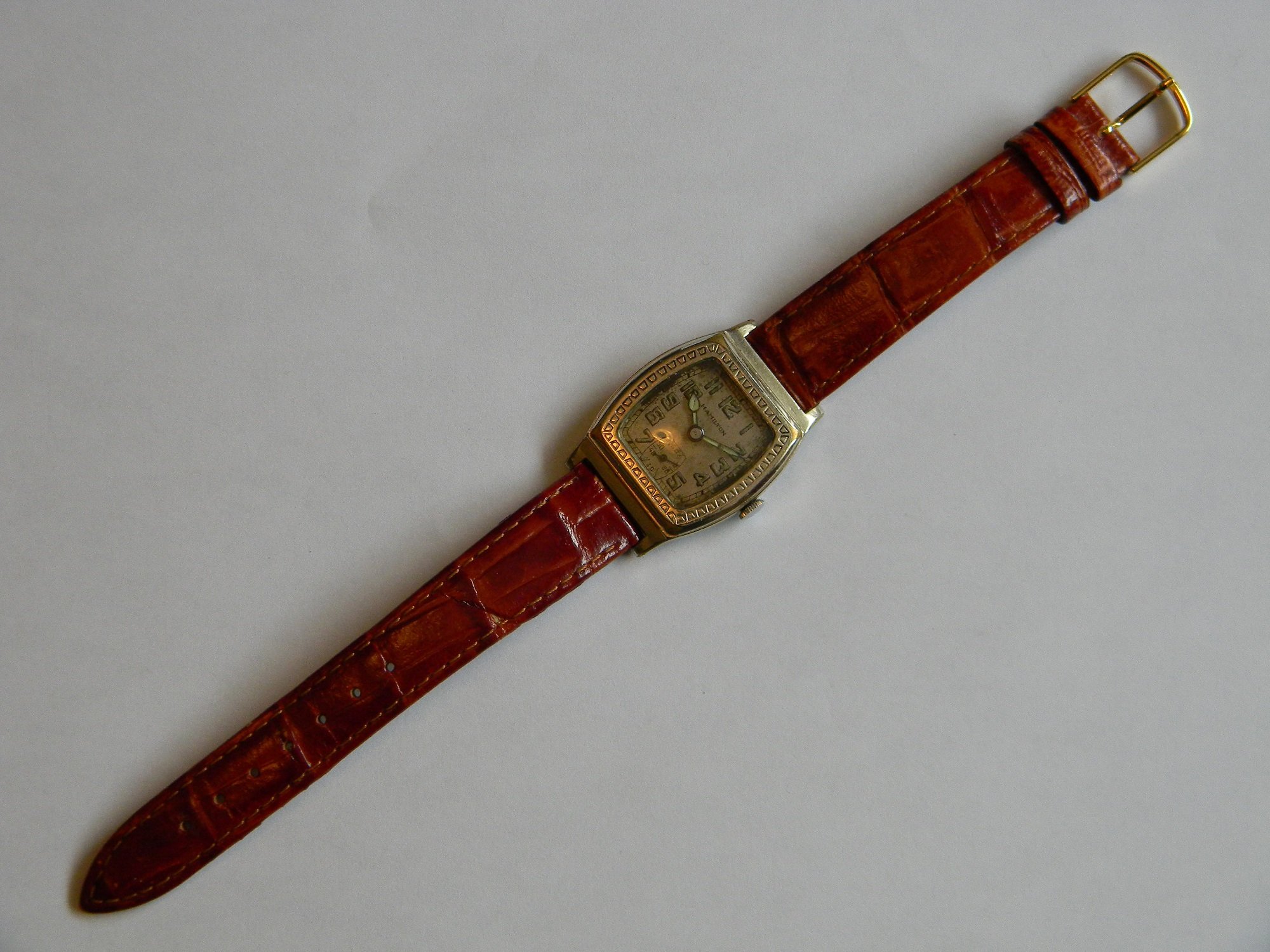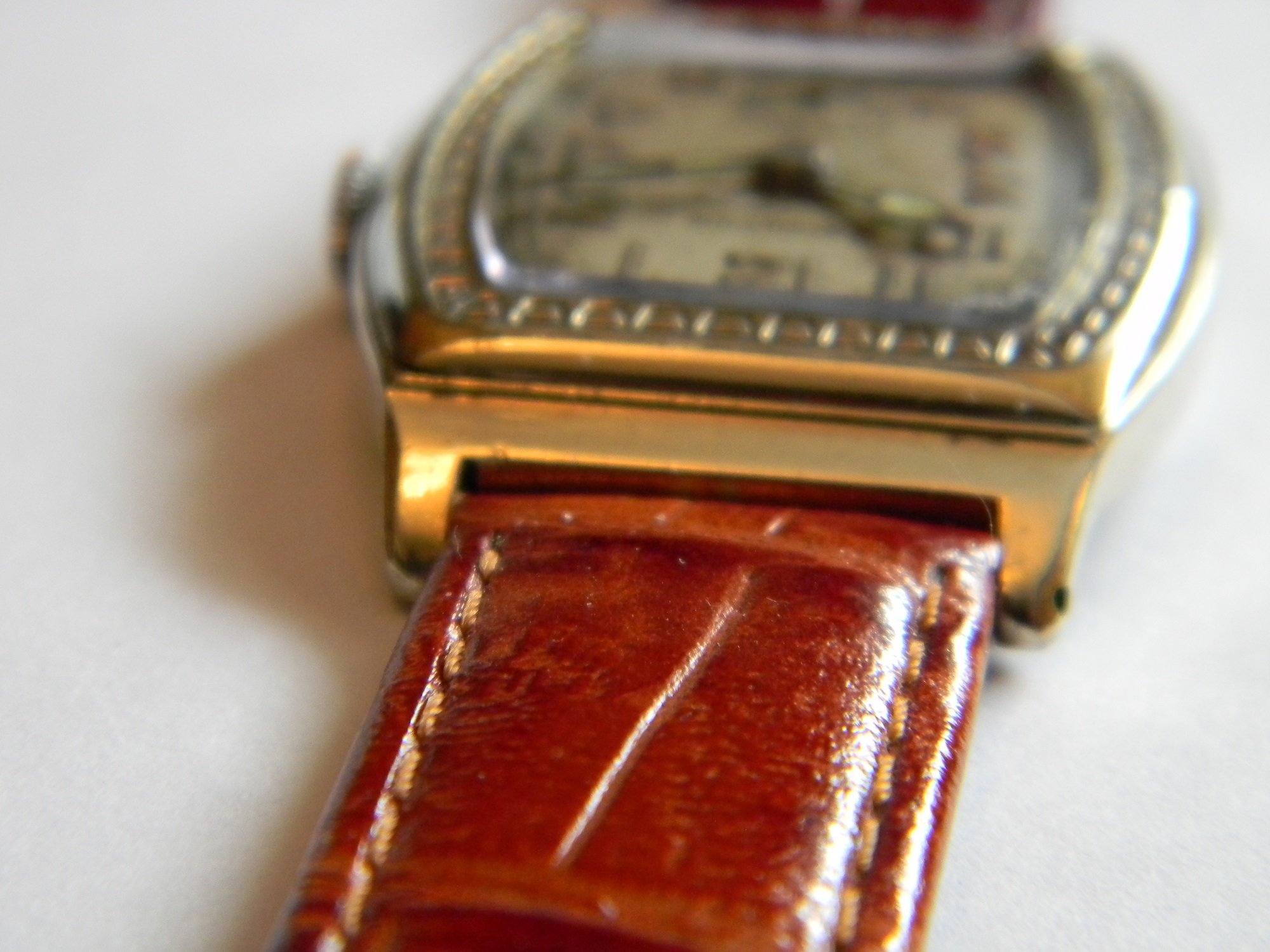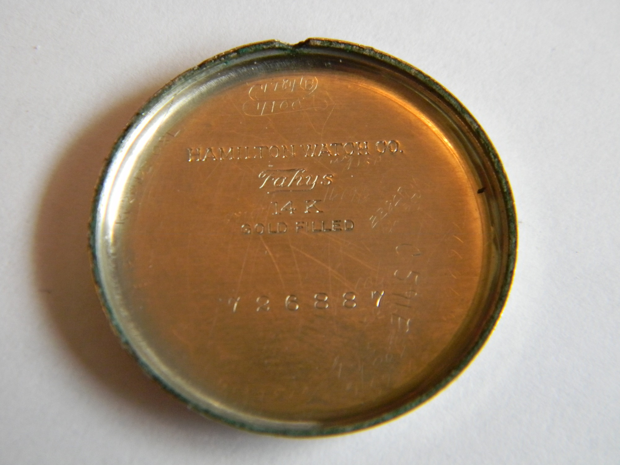 14K white gold filled case with some wear on the top corners