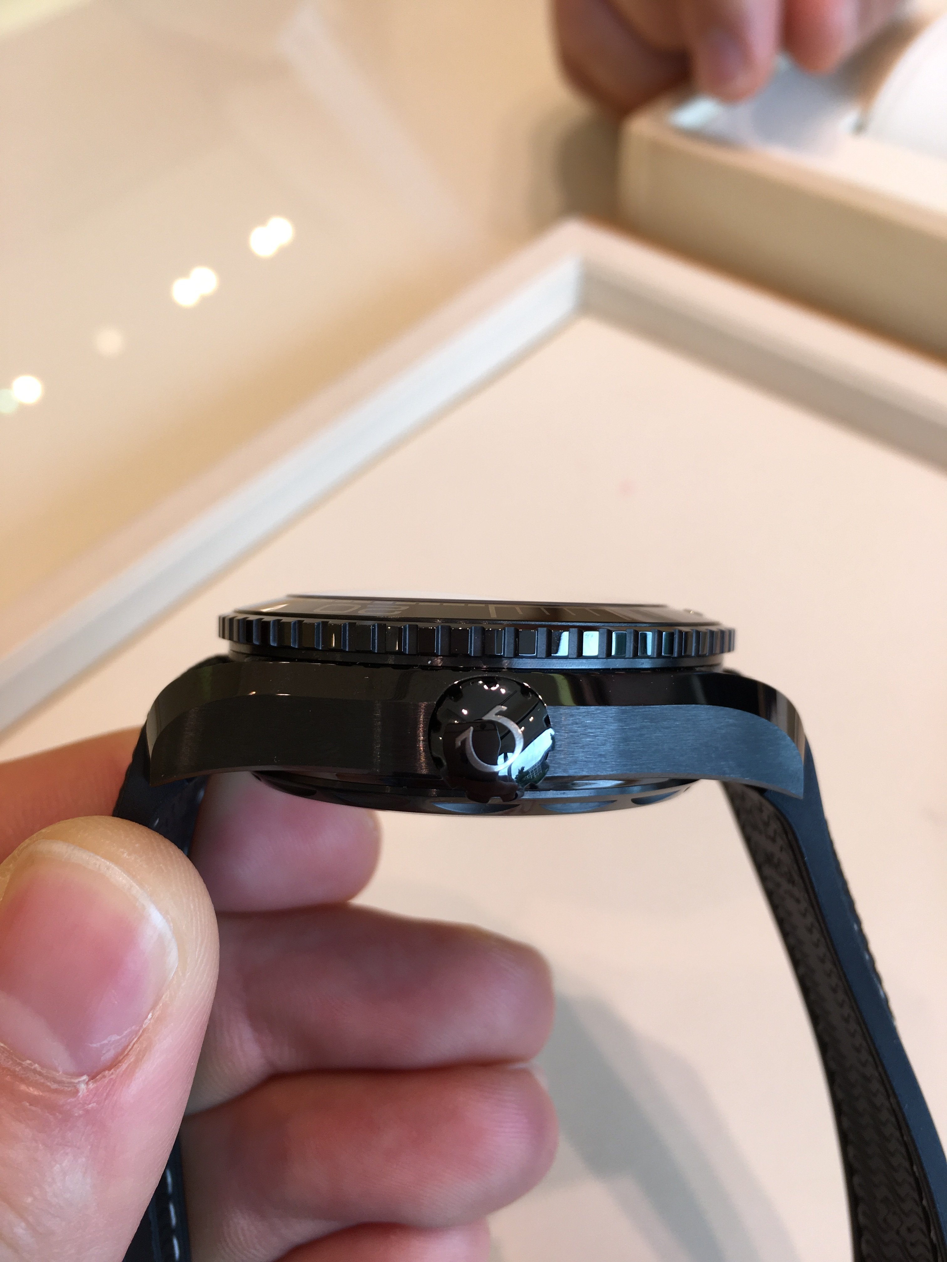 The quality and finish of the cases Is top notch! I haven't had the chance to get my Hands on some of the ceramic Speedmasters so I can't compare the new PO's to those. But the quality of craftmanship that went into those New PO cases was realy impressive. Yes, they are huge but weight wise they felt very comfortable. Bezels where top notch also and with crisp edges that give you a realy good grip.