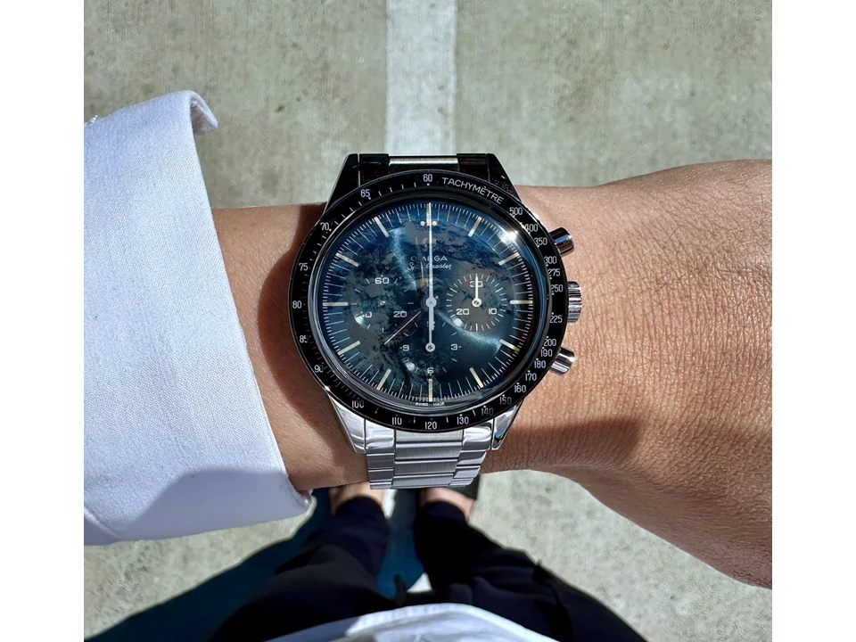 ·A reflection from our blue planet underneath and a nod to those astronauts who saw her with their own eyes from a different vantage point. I would like to imagine what it was like to lose focus on any objects that were reflecting earth, including their watch if they were wearing one.