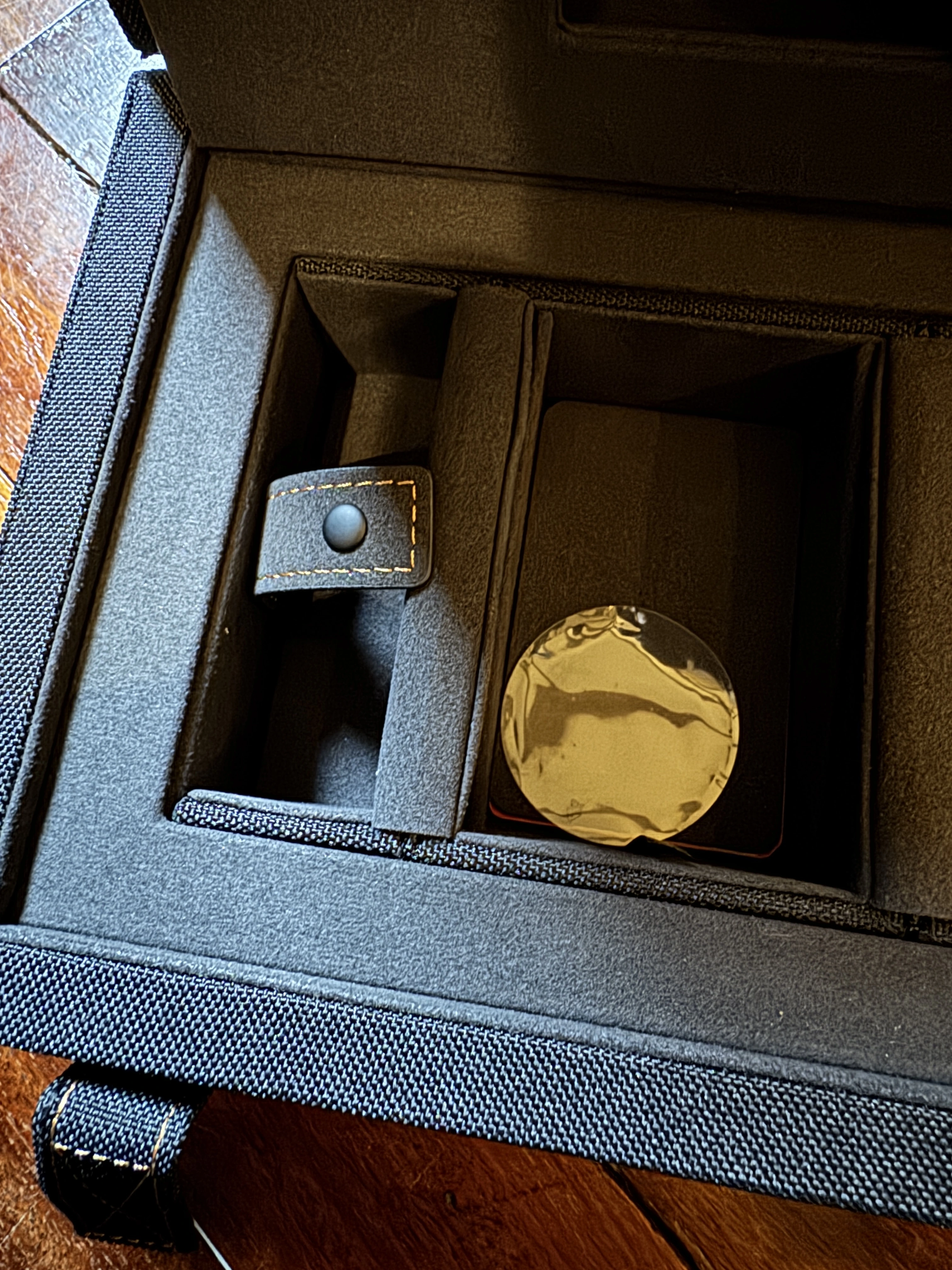 Quick question to those who have theirs. What was in the box? I ask as mine has just arrived and those credit card things don't appear to be in there and there is an empty section with an open press stud. (see photo)