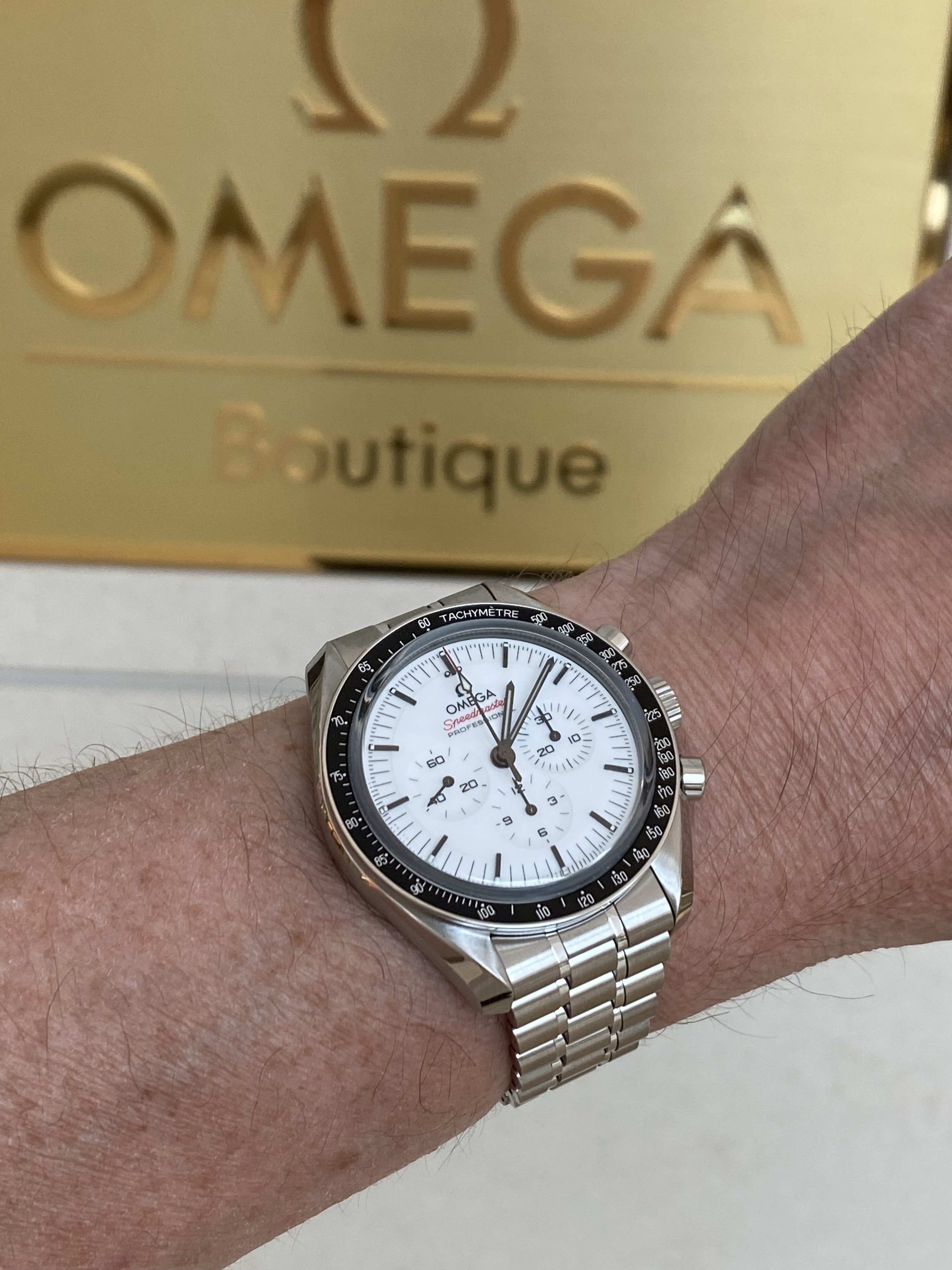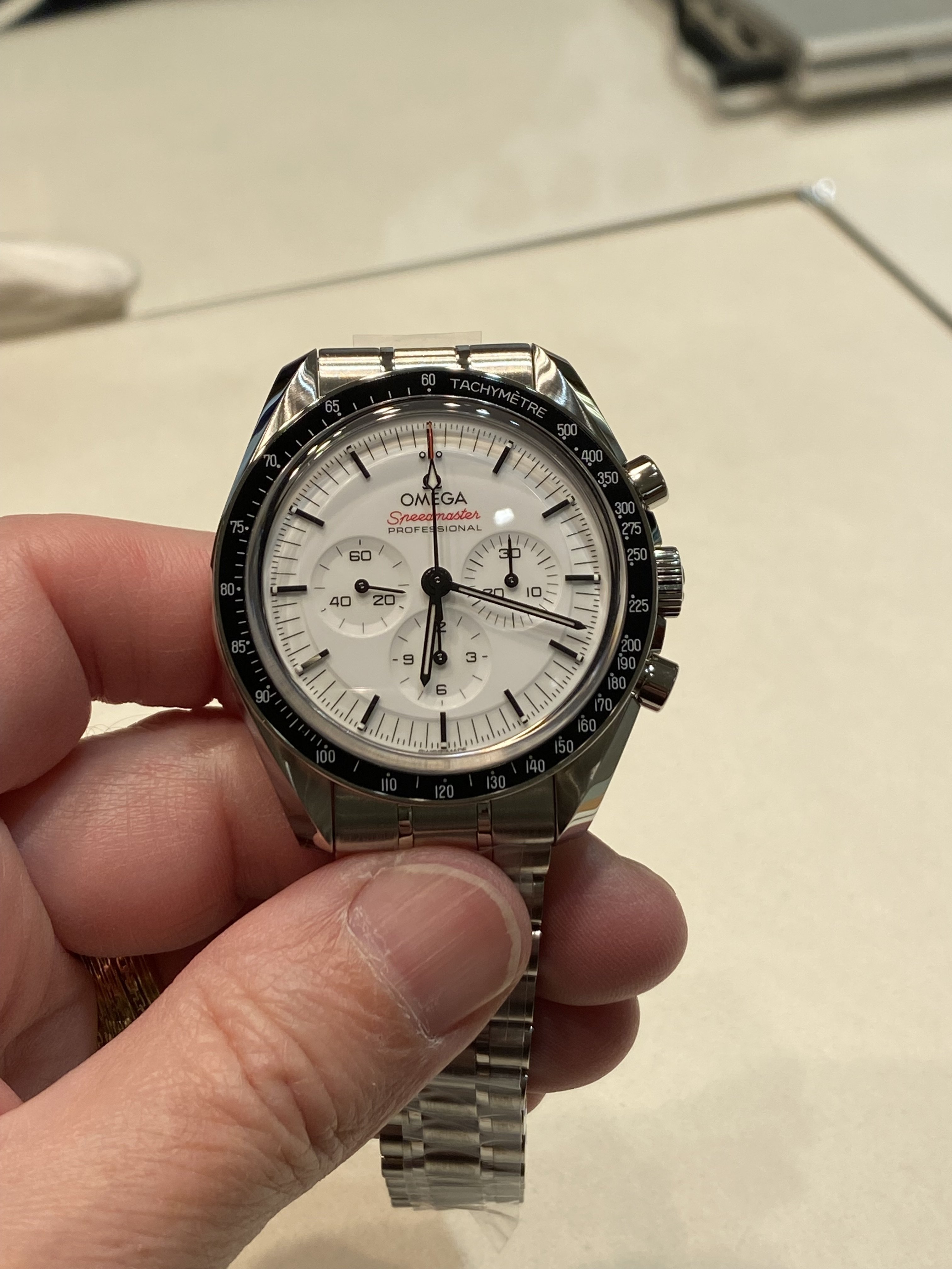 I had the opportunity to see the white dial Speedmaster back in May: