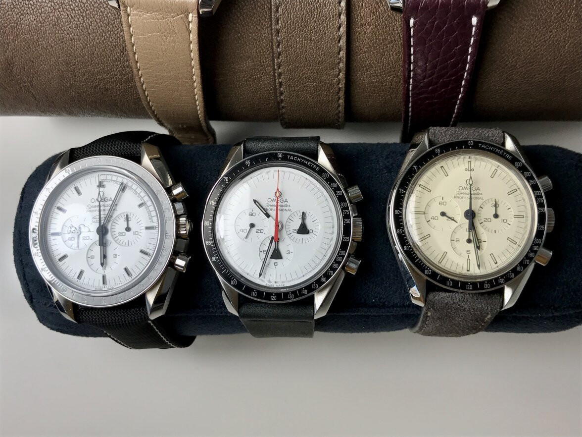 Yeah, not the best pic but you can see the Apollo 11's dial is not as white. In the flesh, side by side, the difference will be easily seen, one dial is snow white, the other silver. Same with the Albino which will be easily seen as creme. Unfortunately pictures often don't show the differences between white, silver, creme or even something as different as a Rising Sun, they all can pass off as being white in most pics but are totally different when viewed in the wild. I'd like to see an Albino next to this new watch, to really see the difference in the colors.