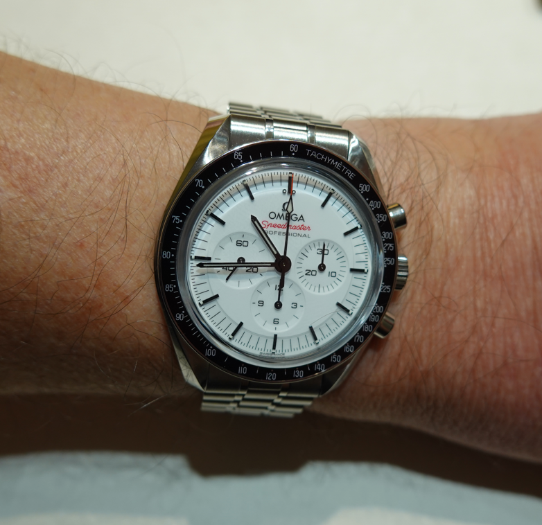 ·Just left the Regent Street AD for a first look at the watch. Great looking in the flesh and appears smaller on the wrist than my other speedmasters. Will get one at some point but no rush.