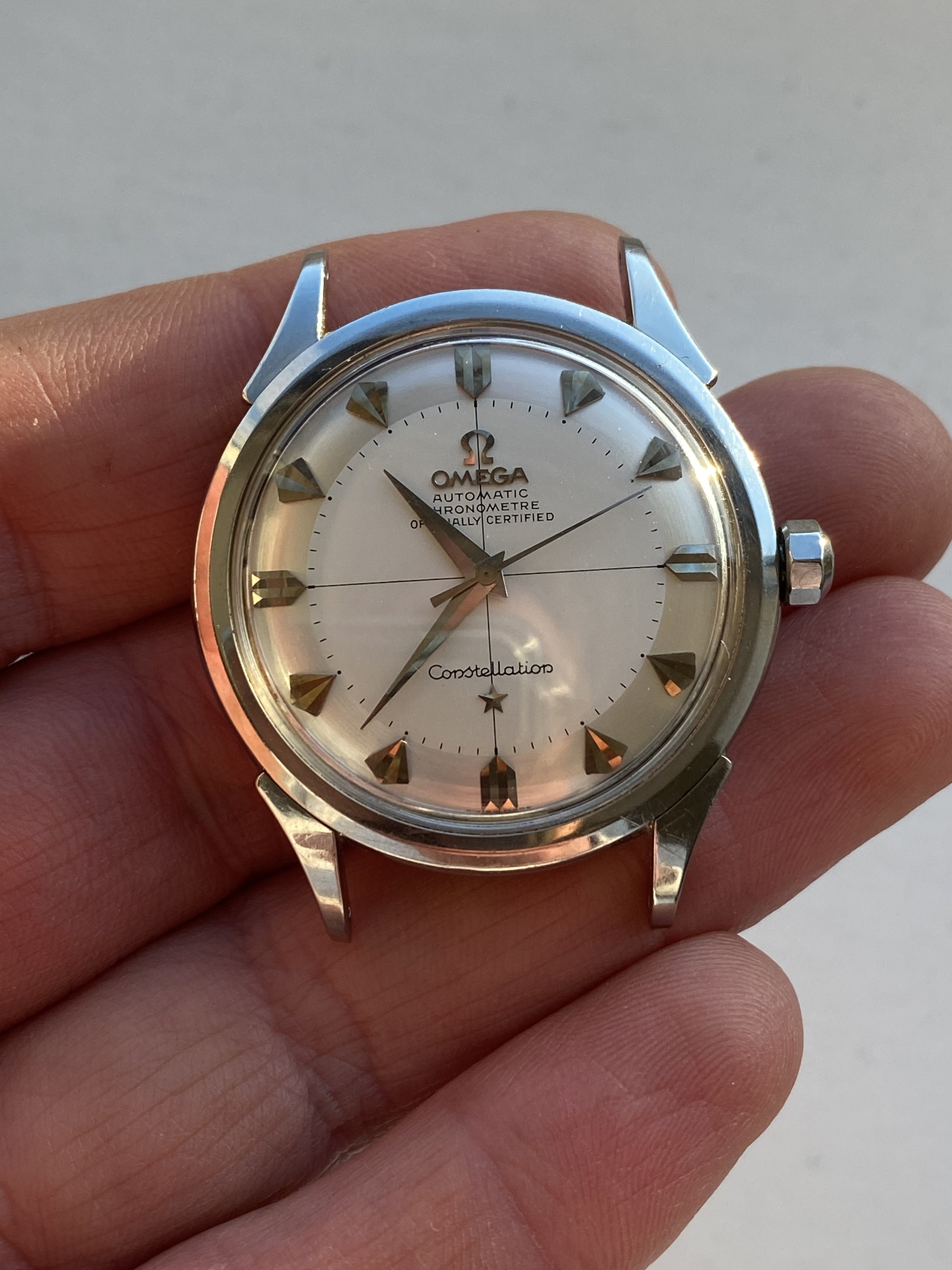 As can be seen on the photo below, the hands on my Omega Constellation 2782 cal. 354 are unfortunately slightly too long. Therefore, I’m looking for a correct hands set: dauphine style, with a ‘fold’ in the middle. I think the minute hand should be 10.3mm, the seconds hand 10mm. Please let me know if you might be able to help me out!