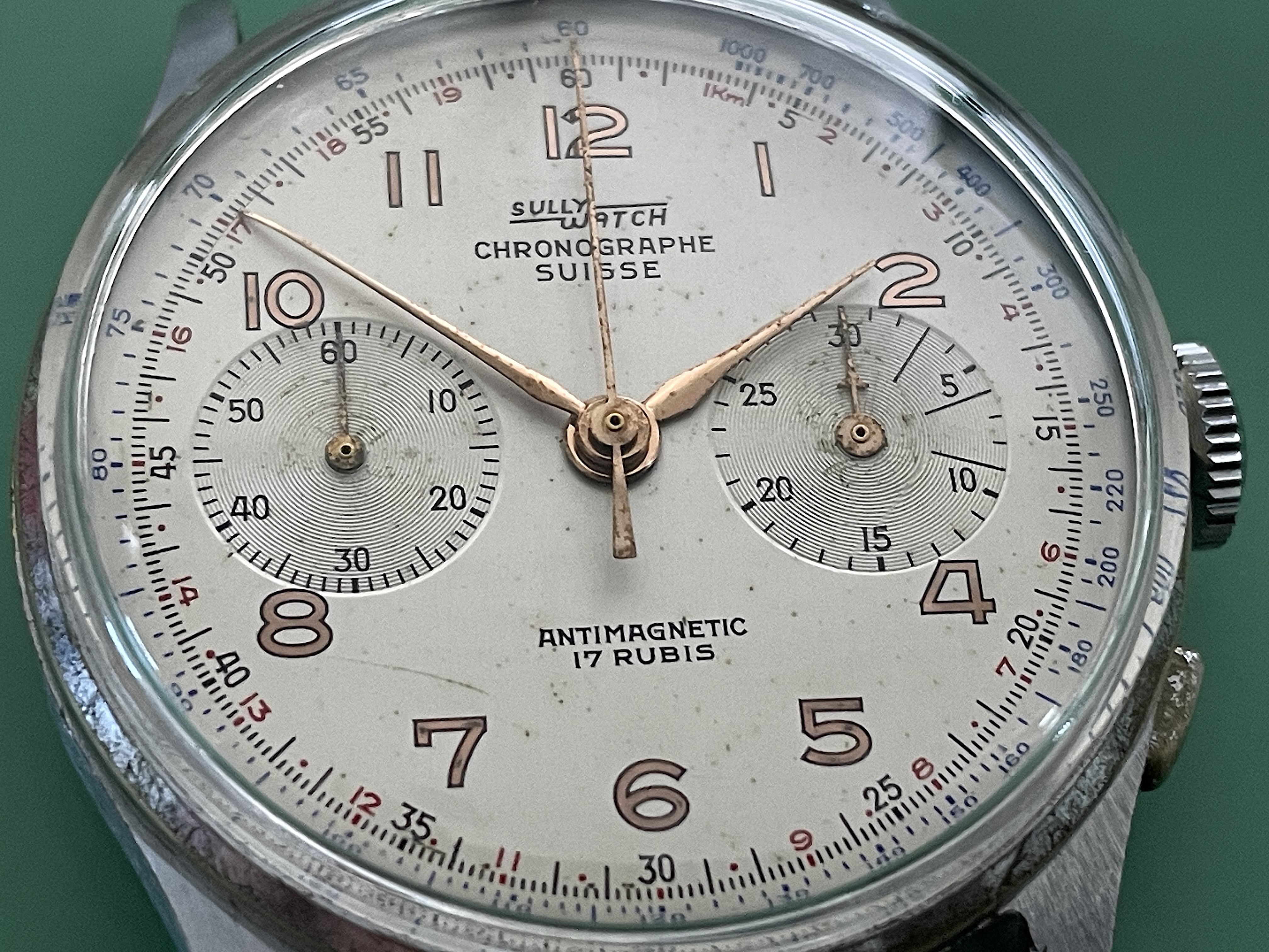 A magnet test confirms that they are gold plated steel (at least the chrono sweep hand is).