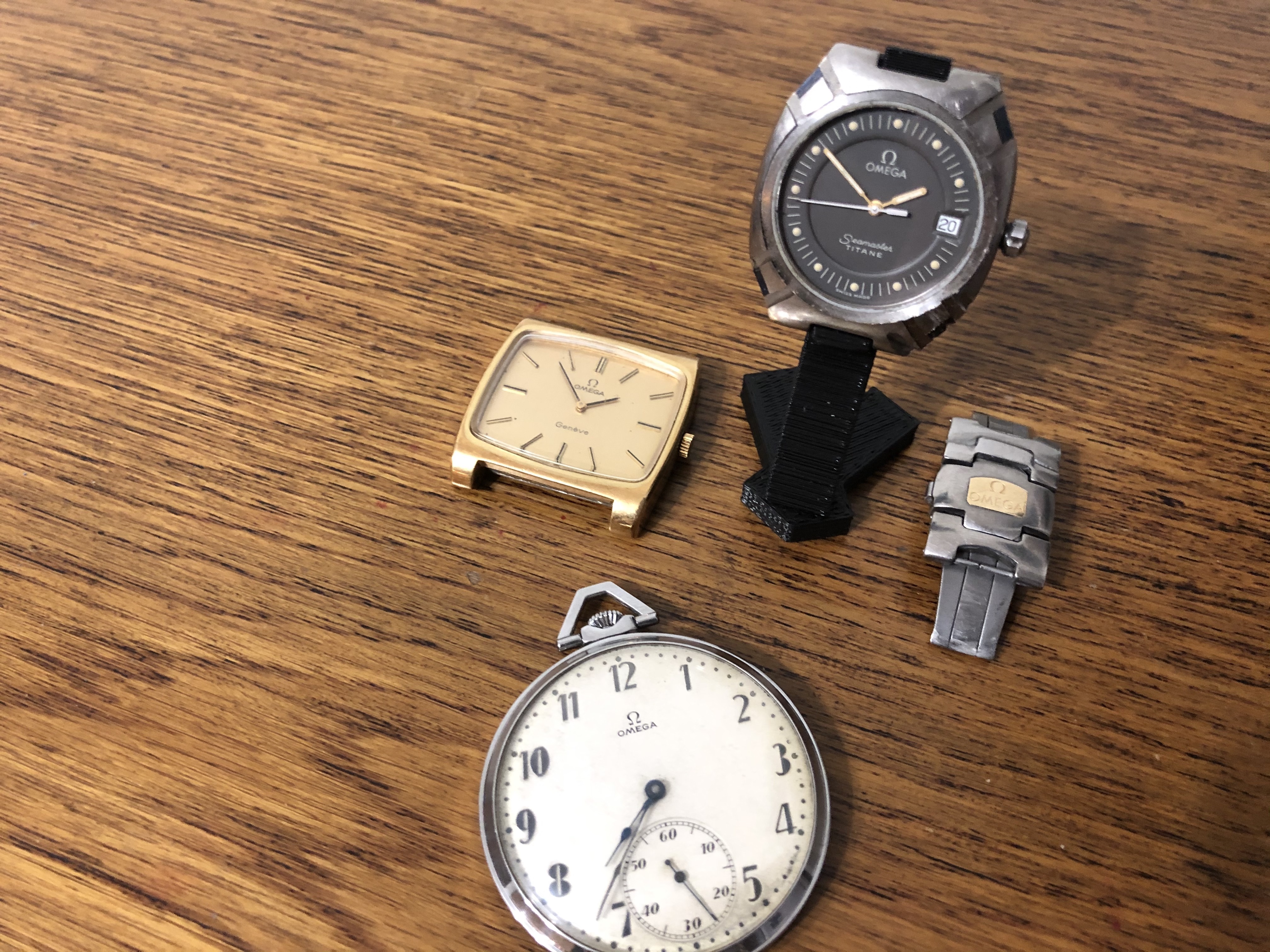 The 1432 Titane was luckily in good shape, but it wasn't ticking, the 1449 GMT was a goner, but it funnily ticked despite the water damage