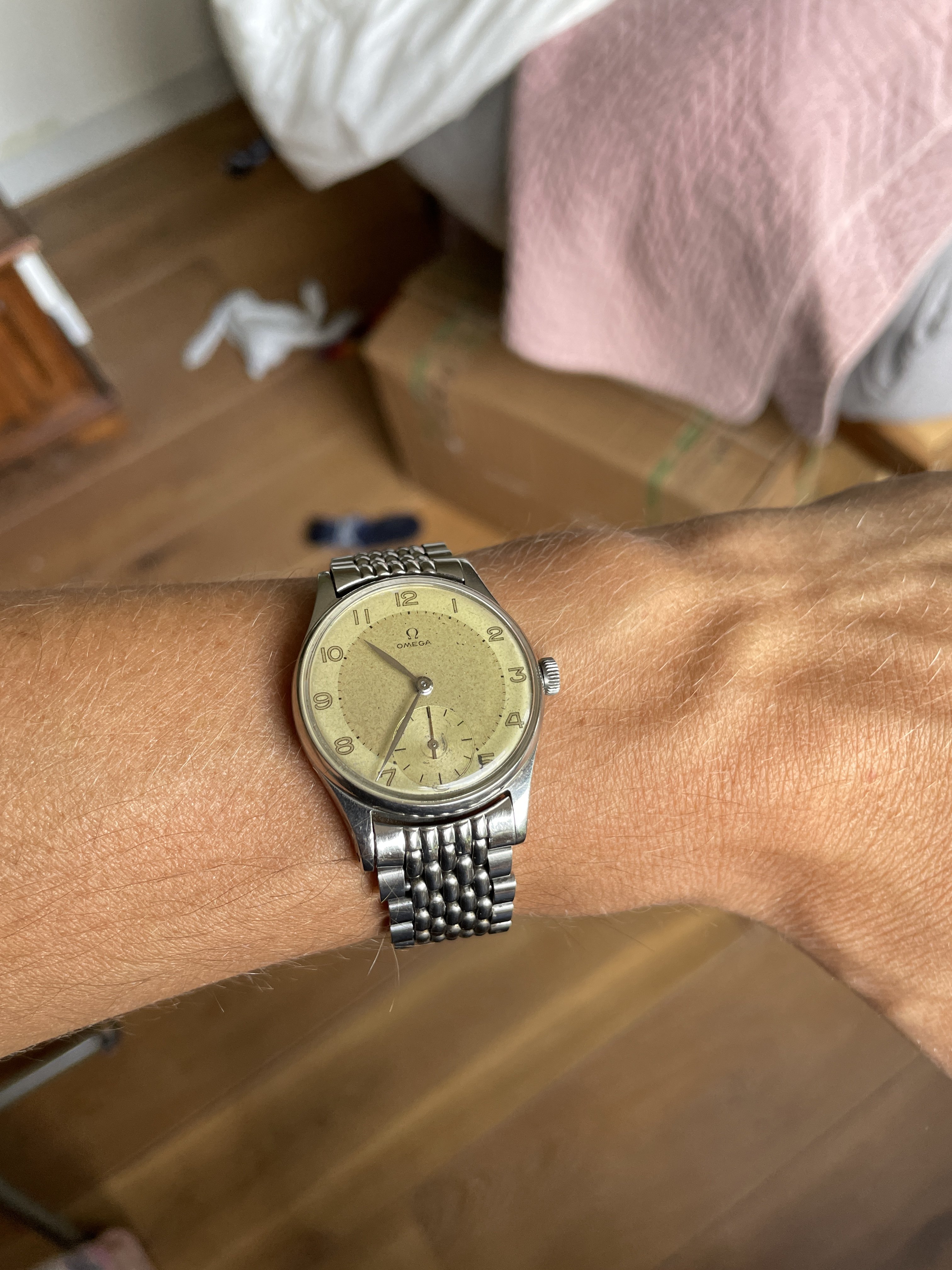 Posts 241 Likes 352 unxsr ·Jul 3, 2022 jantjewgm Just wanted to show the Omega I just bought, let me know what you thinks guys! It’s a 33mm manual wind. Looks great!