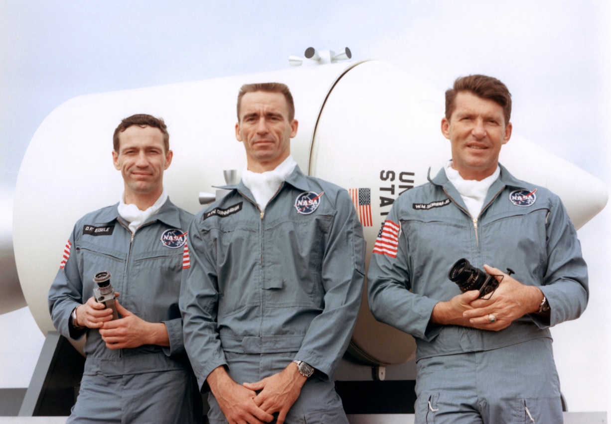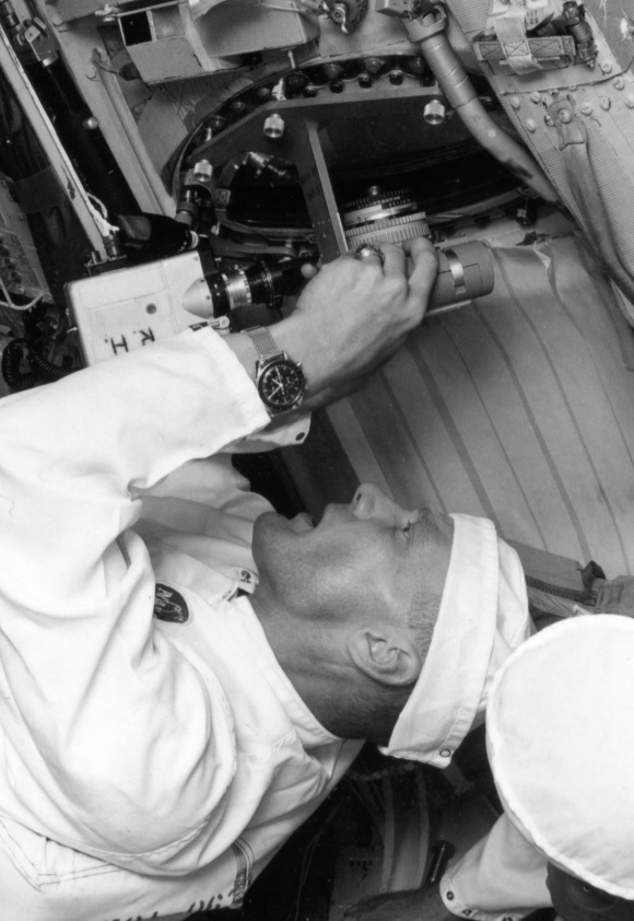 1968 official Apollo 7 crew photo, a photo series during which Walter Schirra was wearing a Rolex Daytona 6240 on riveted bracelet