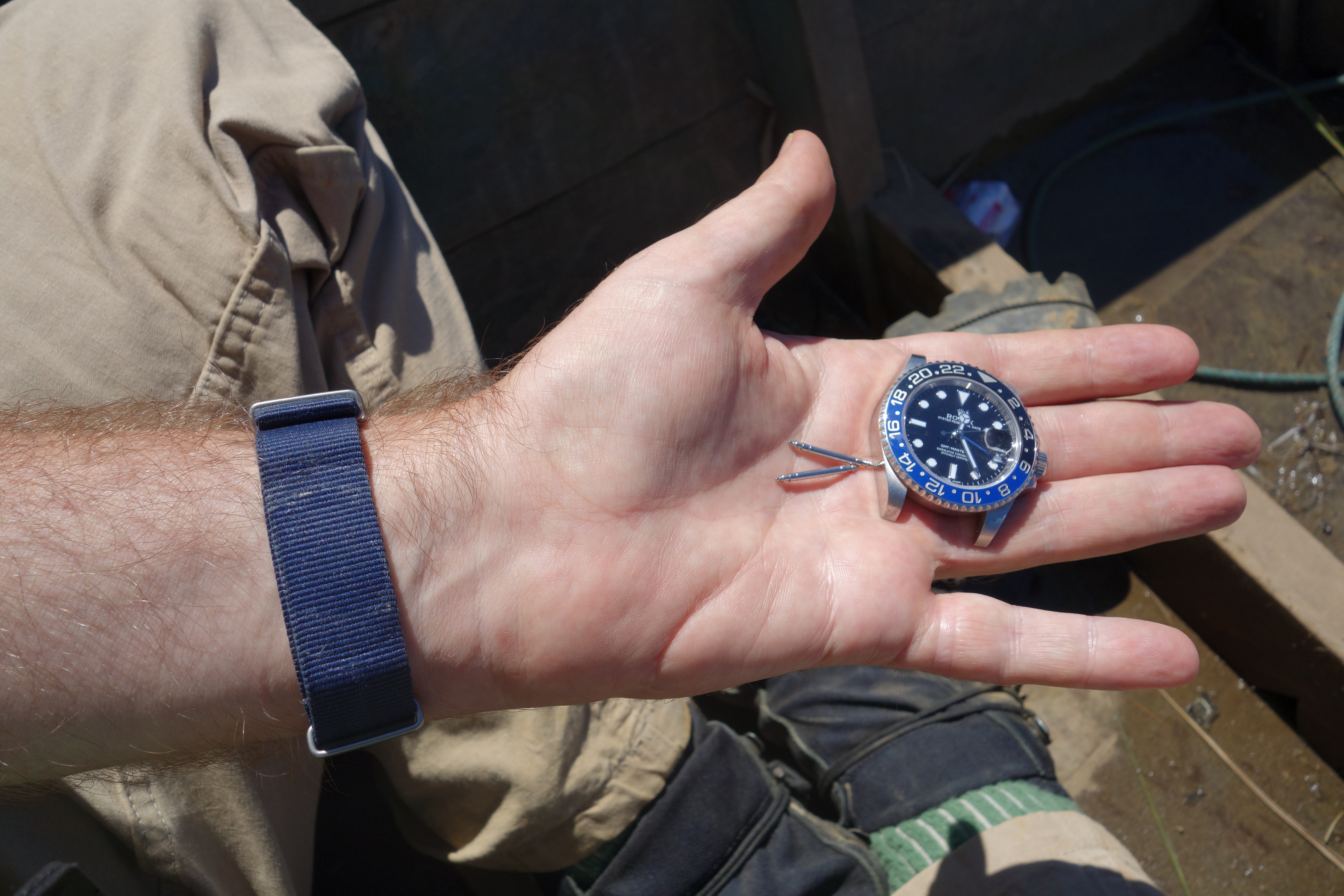 Once, when I was on the Ausable River in NY, on a wet and drizzly afternoon, I pulled up the sleeve of my raincoat to check the time, and my watch鈥攁 modest Victorinox that my wife Amy had given to me as a present when we first started dating in 1997--was not where it should have been on my wrist. I know it was there in the morning, as I always went out on the river with it. Then I remembered earlier in the day, I got caught in a strong current that pinched me from behind and caused me to spin around fast to keep my balance. Could it have come off then, I wondered? So I drove back to where I had been fishing, walked and waded a half mile to the spot, and 2 feet down among the Ausable's bowling ball rocks was a shiny object--the watch, which was still, to my surprise, still ticking.