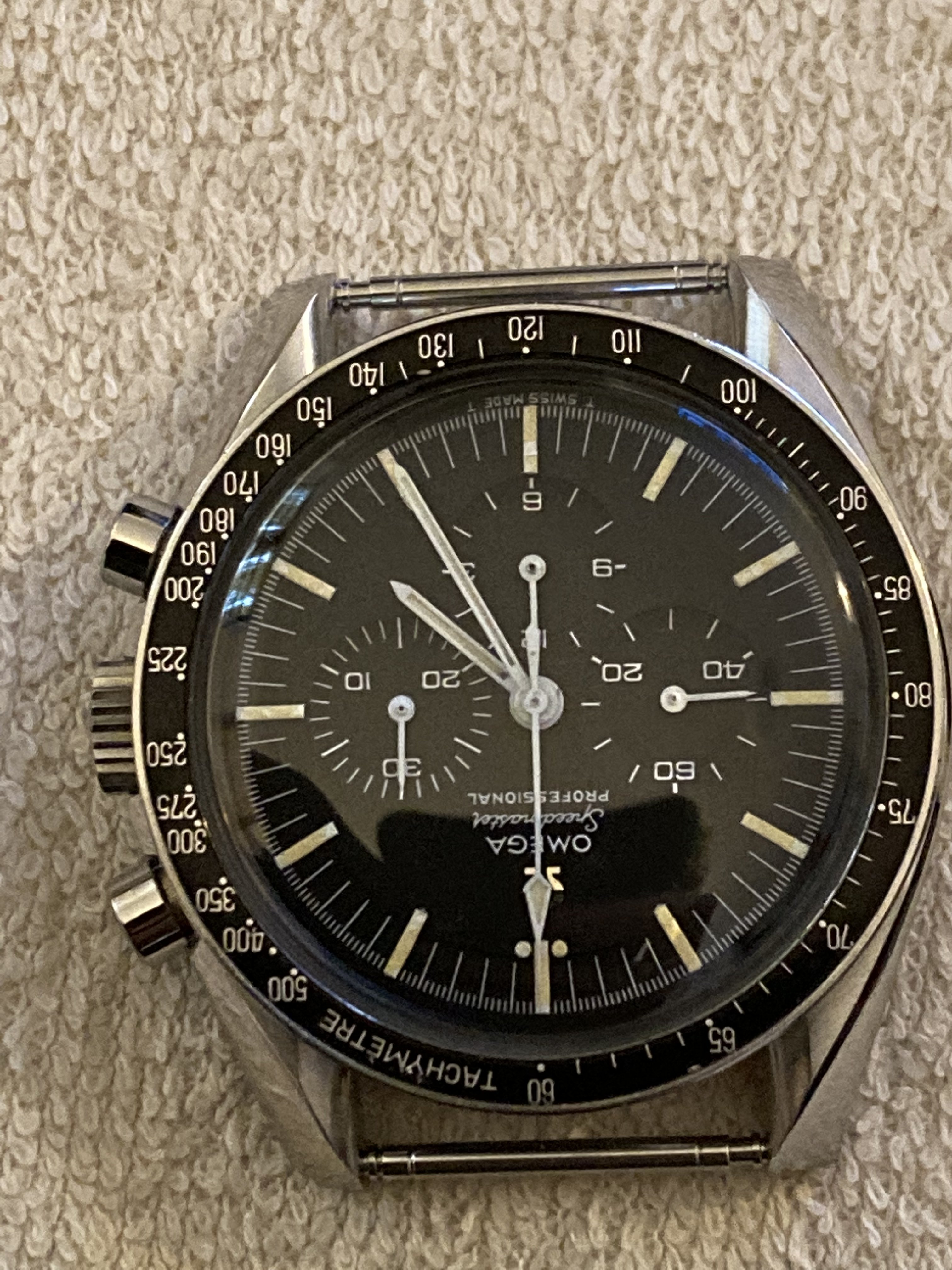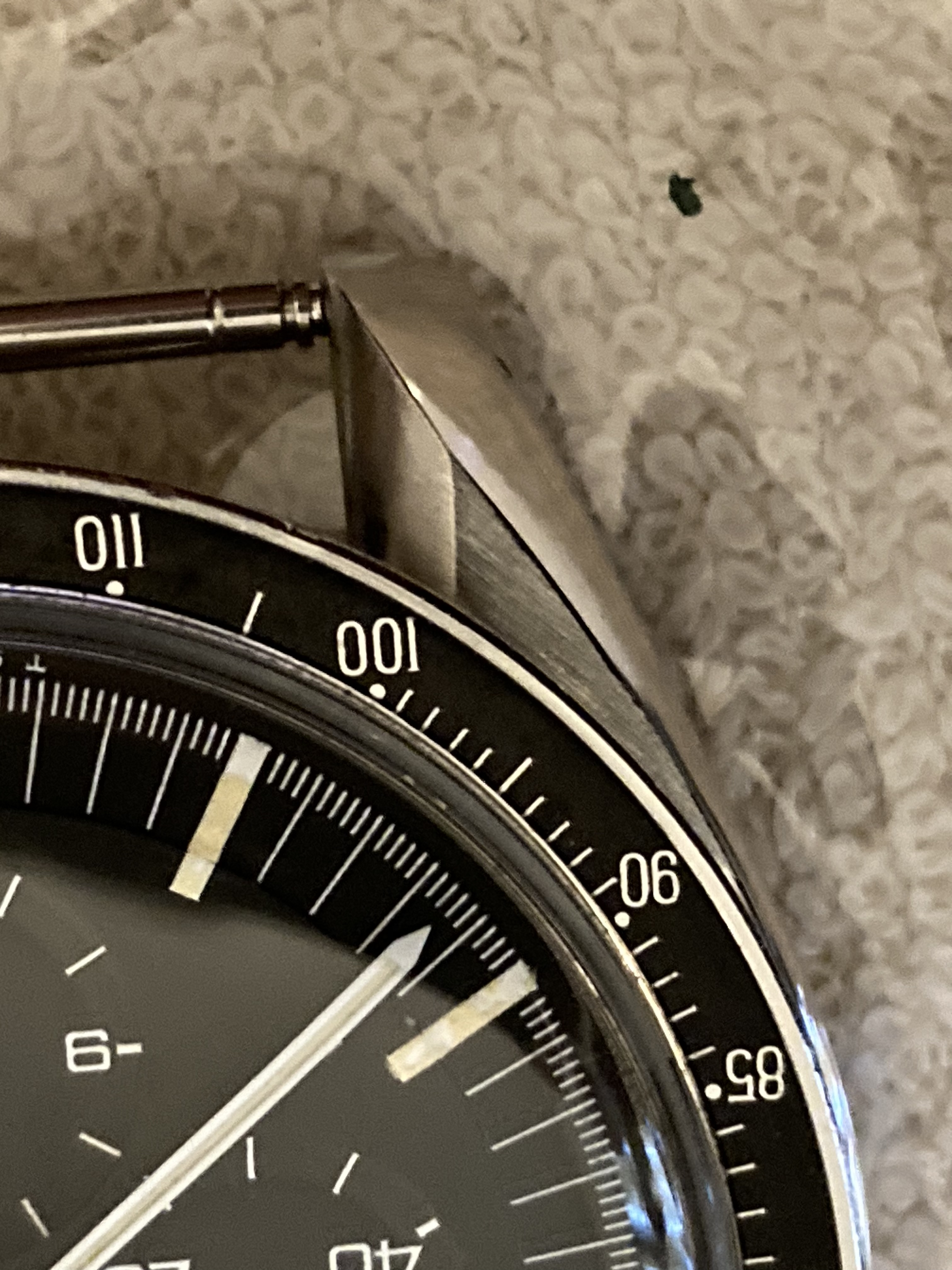 I happened to have my 105.012-66 CB Speedmaster out and I was examining the facets on the lugs in different light and angles. The appearance was constantly changing and I also discovered that I could not get a sharp photo of all 4 facets at once. Now, I’ll admit that I’m not the best photographer, plenty have told me so, but, I know that someone in this group can get all 4 in sharp definition… let’s see.