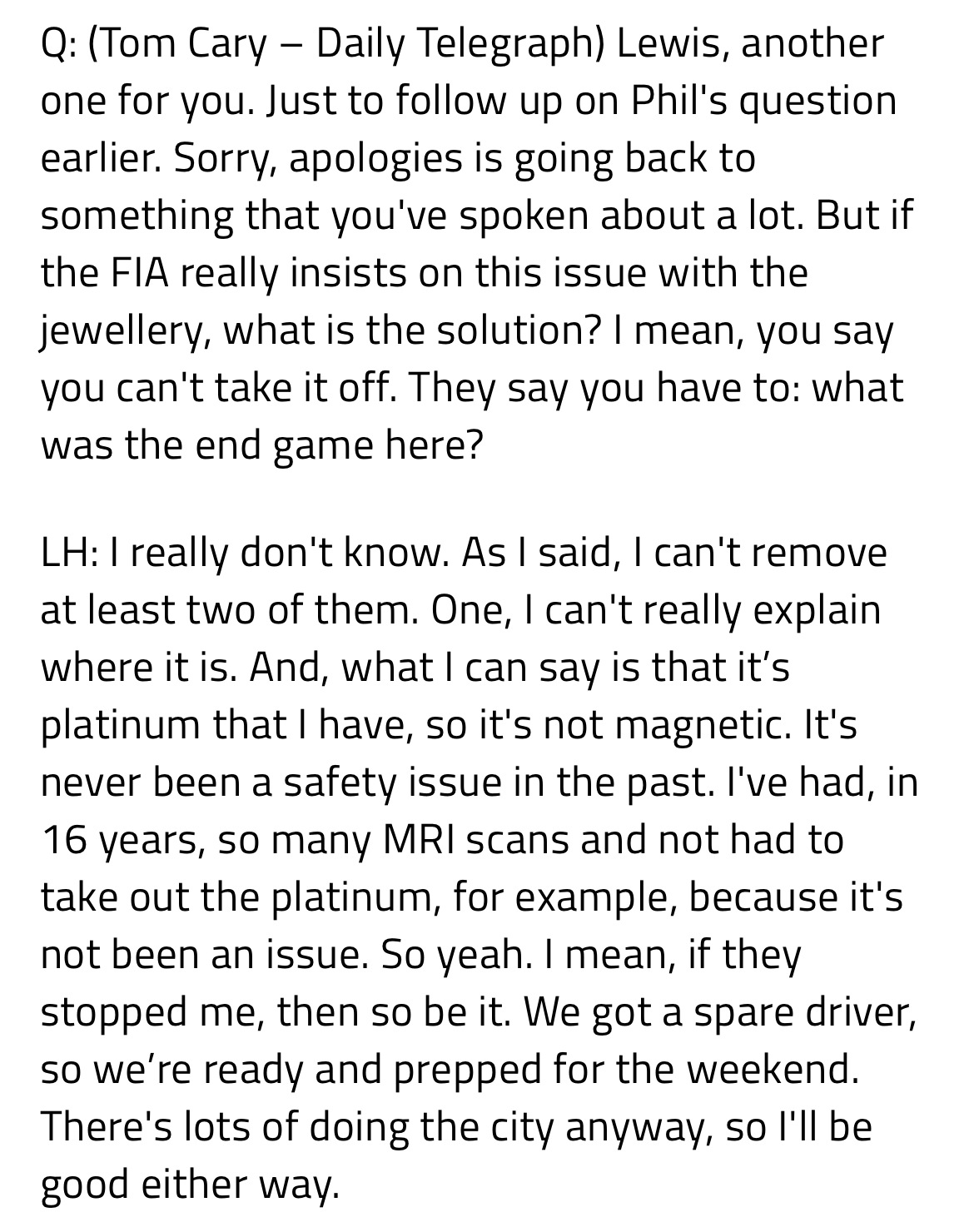 I believe Sir Lewis has bigger problems to worry about, like why is he being outdriven by his less experienced team mate? And why MB is non-competitive this season.