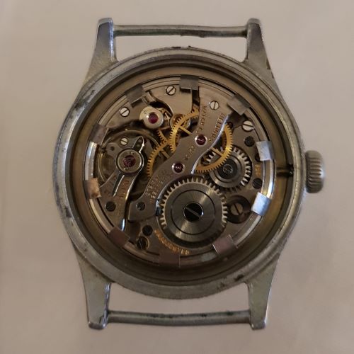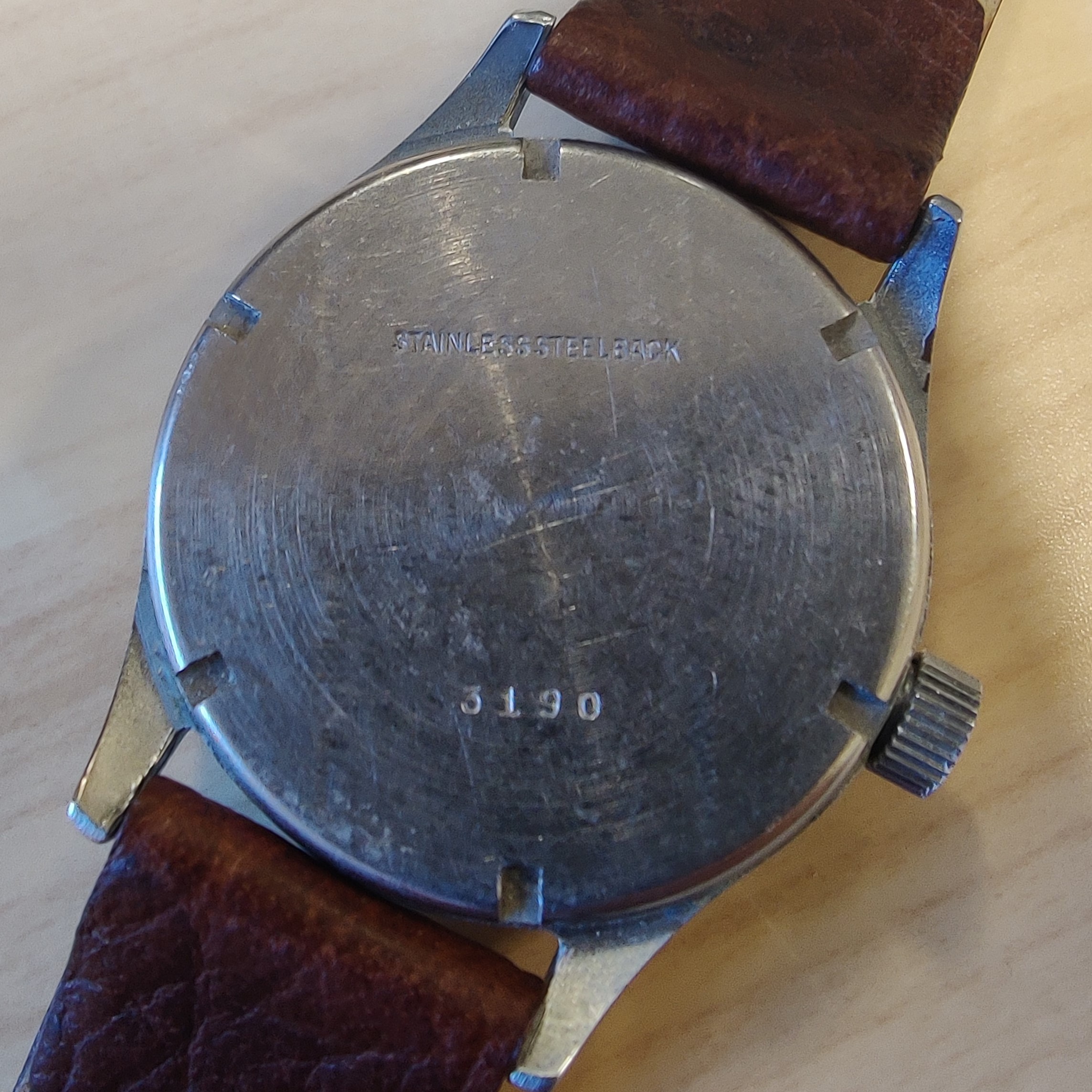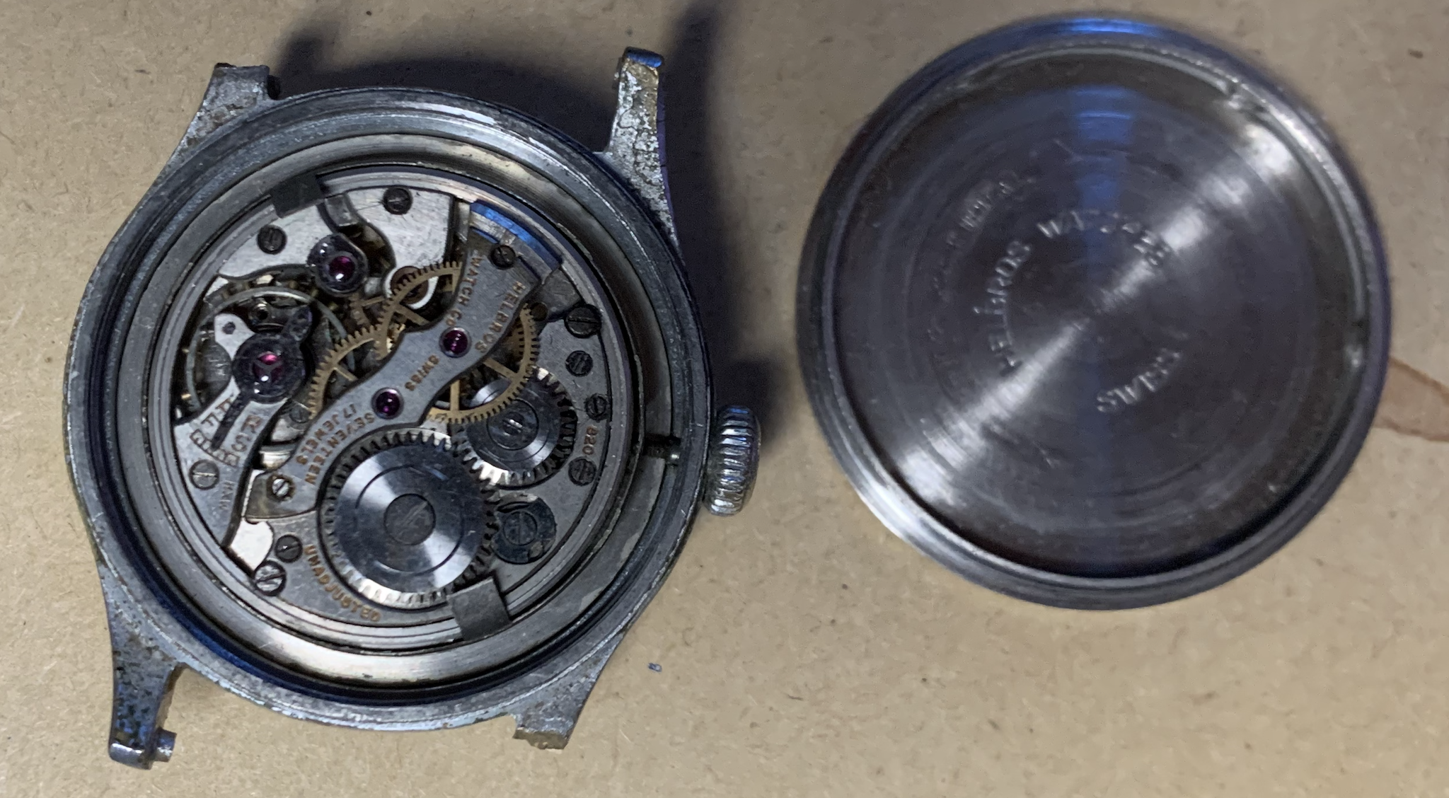 And we have a winner! You win your bet .You are correct as to the 820. The import code is HXW so points there as well. Sadly someone cut the lugs. Which is too bad as this has a good balance and would be a great candidate for restoration. Even with the wrecked case this is high on my lists of practice watches to clean and service. I am sure I have a paperclip somewhere...
