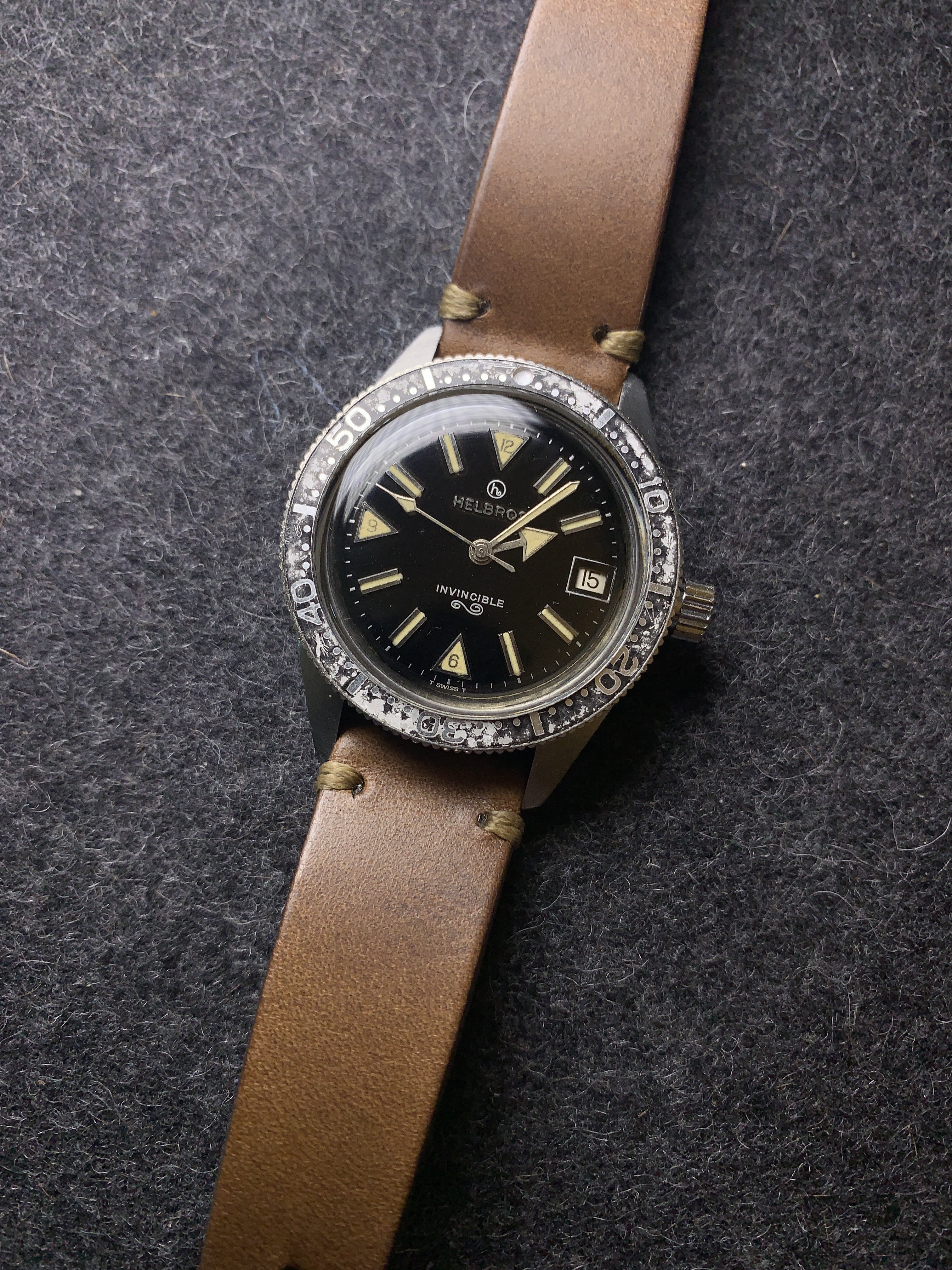 ·I was wearing my Helbros Invincible yesterday when my bezel insert decided to jump ship. My watch maker happened to have a replacement but it's pretty abused and serves as a good place holder. Attached is a picture of my watch to show what the insert looks like. I would ideally like one in similar quality and with lume intact but I am open to anything. Even if you have a complete watch as parts or whatever. Also attached is a picture of what my watch looks like with replacement.