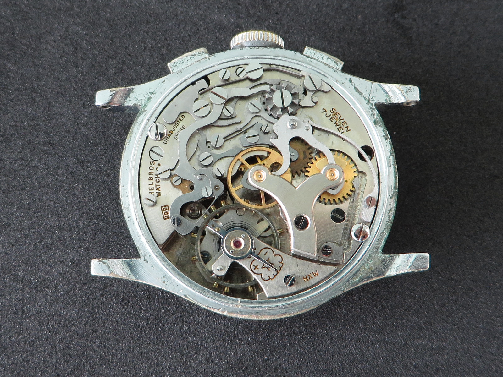 Venus caliber 170 movement is nice and clean and sets smoothly but it is wound tight, the balance staff is OK, but it is not currently running. It ran and functioned correctly when I purchased it years ago.