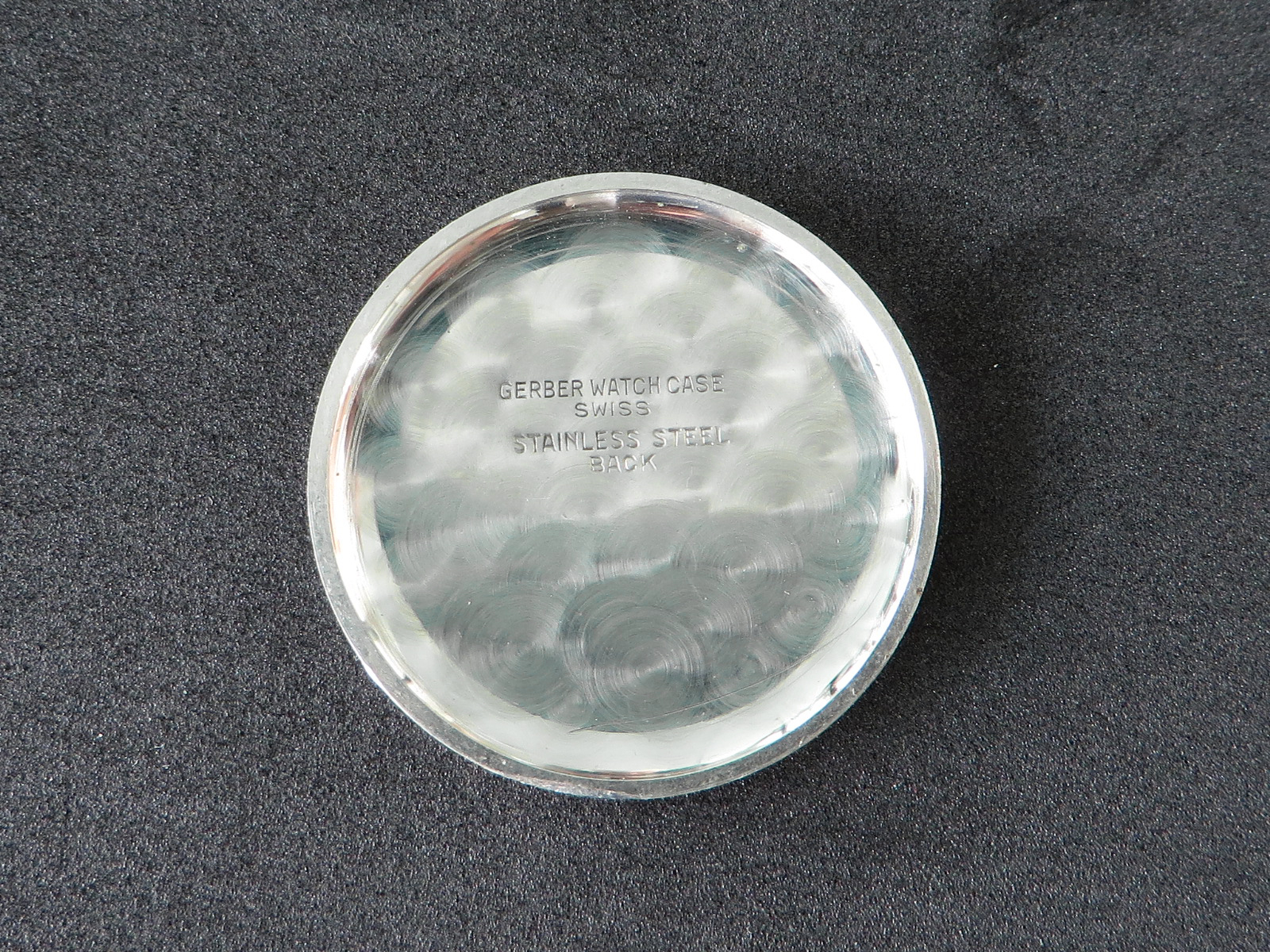 Chrome/rhodium plated case with flat pushers and stainless steel snap back.