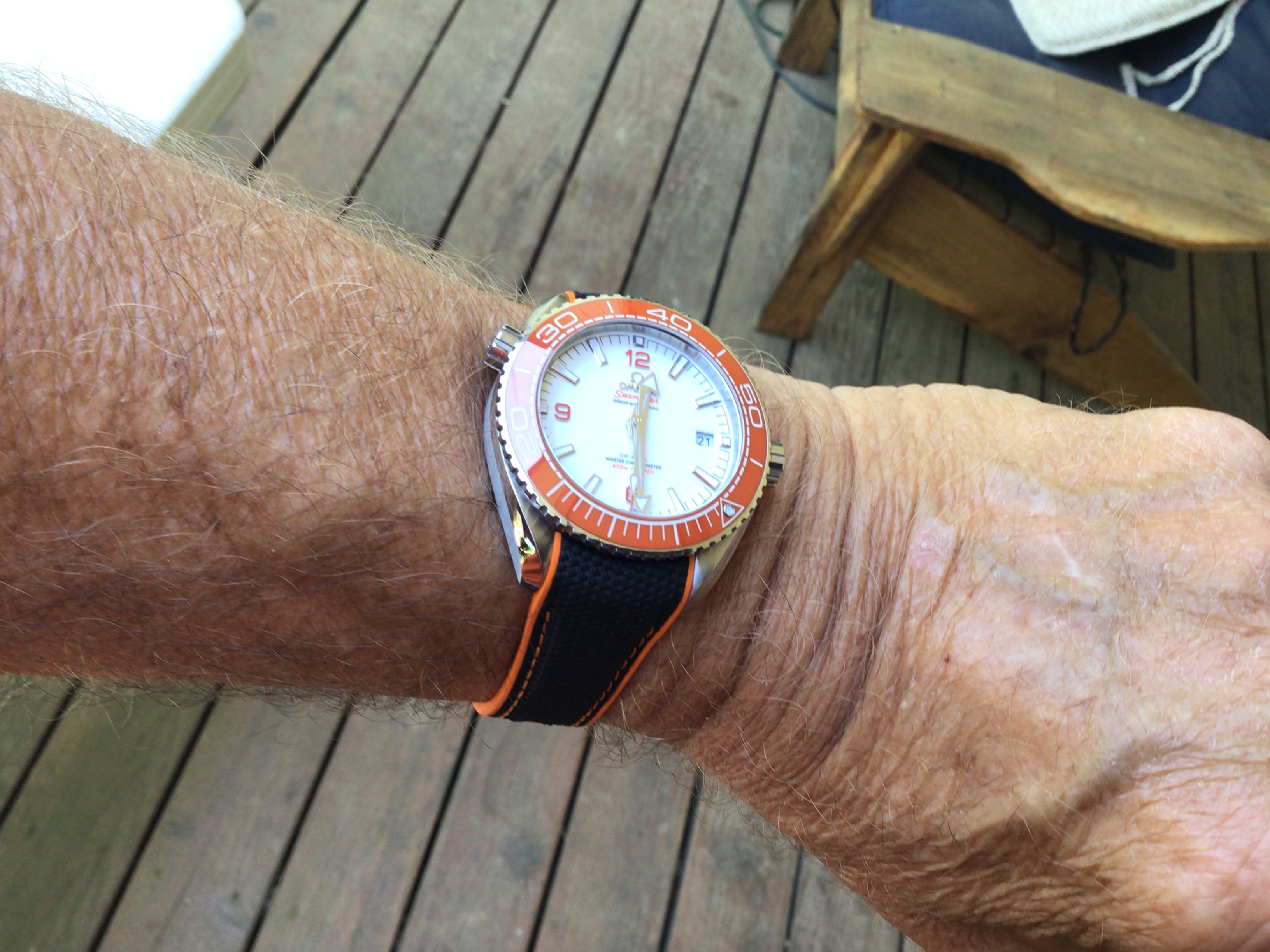 I started my Omega journey about 4 years ago with a Seamaster Aqua Terra 15,000 Gauss model, at which point I sold nearly everything else I had and it's been my constant companion since then. It's now been joined by a stablemate in the form of a White face / Orange bezel Planet Ocean on a bracelet. Although at the moment I've no plans to swap from the PO bracelet, does anyone know of any decent quality aftermarket rubber straps, preferably black but with a suitable matching orange vibe to them? To my eyes the bezel is a tricky colour match, it's not clearly orange but nor is it red.