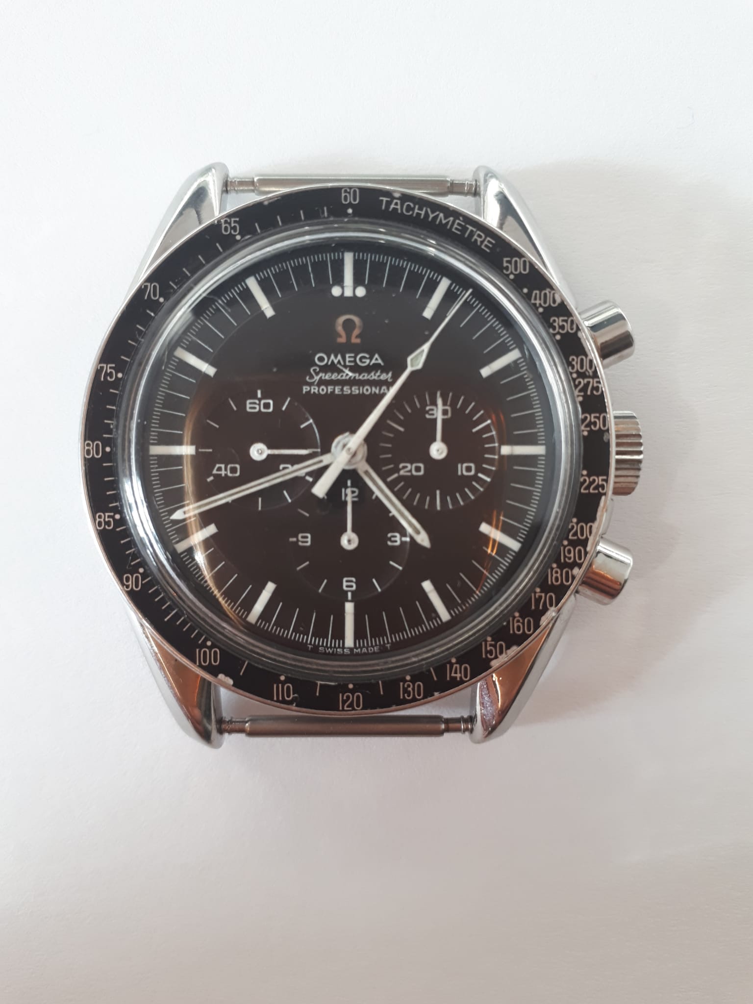 Does anyone know better how the assembly of a made in Swiss movement sent by OMEGA to the USA and a Made in USA case took place? Was it to satisfy a NASA request? Also on the case there is a hand-made engraving with the wording "57CMM" which reads little but is evident.
