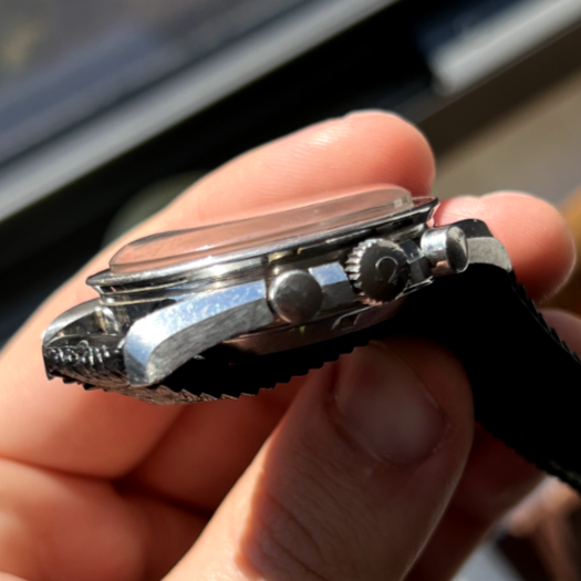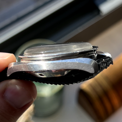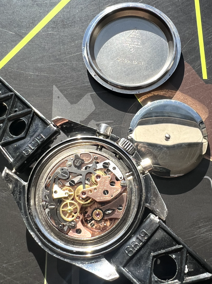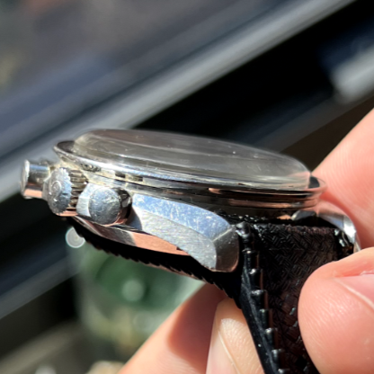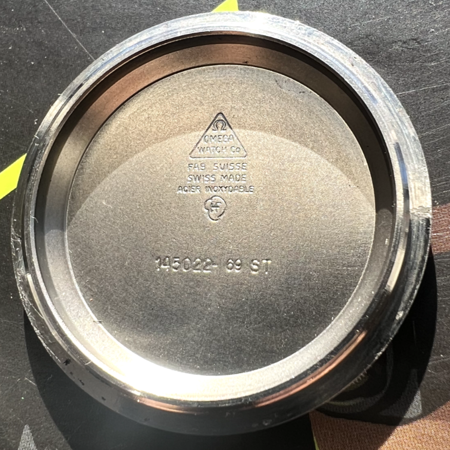What are your opinions of the following, listed on Ebay? Do you see anything that seems worth double checking? Though I'm a total novice I think the movement serial number seems appropriate; I can't tell if there as an Omega logo on the crystal so wonder if it may be aftermarket. The DON bezel makes me look twice (and more) - from reading about the complex world of reproductions here I understand that the bezel can have a major impact on valuation, and I'm finding it really hard to determine what I think about this one.