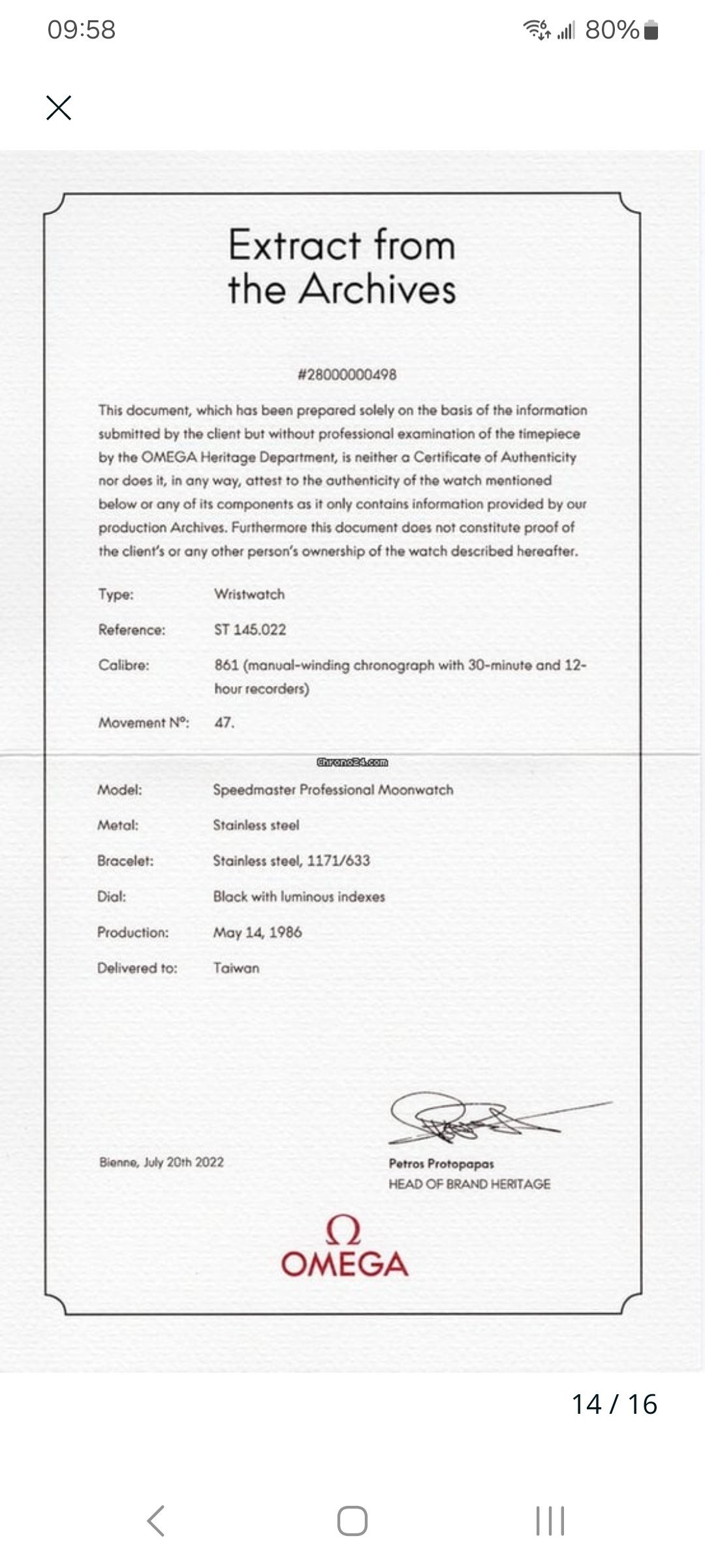 Unusual that someone paid for an Extract for a 1980s Speedmaster. You won't find that very often, and obviously that's the only way to know the production year with certainty, if that is important to you.