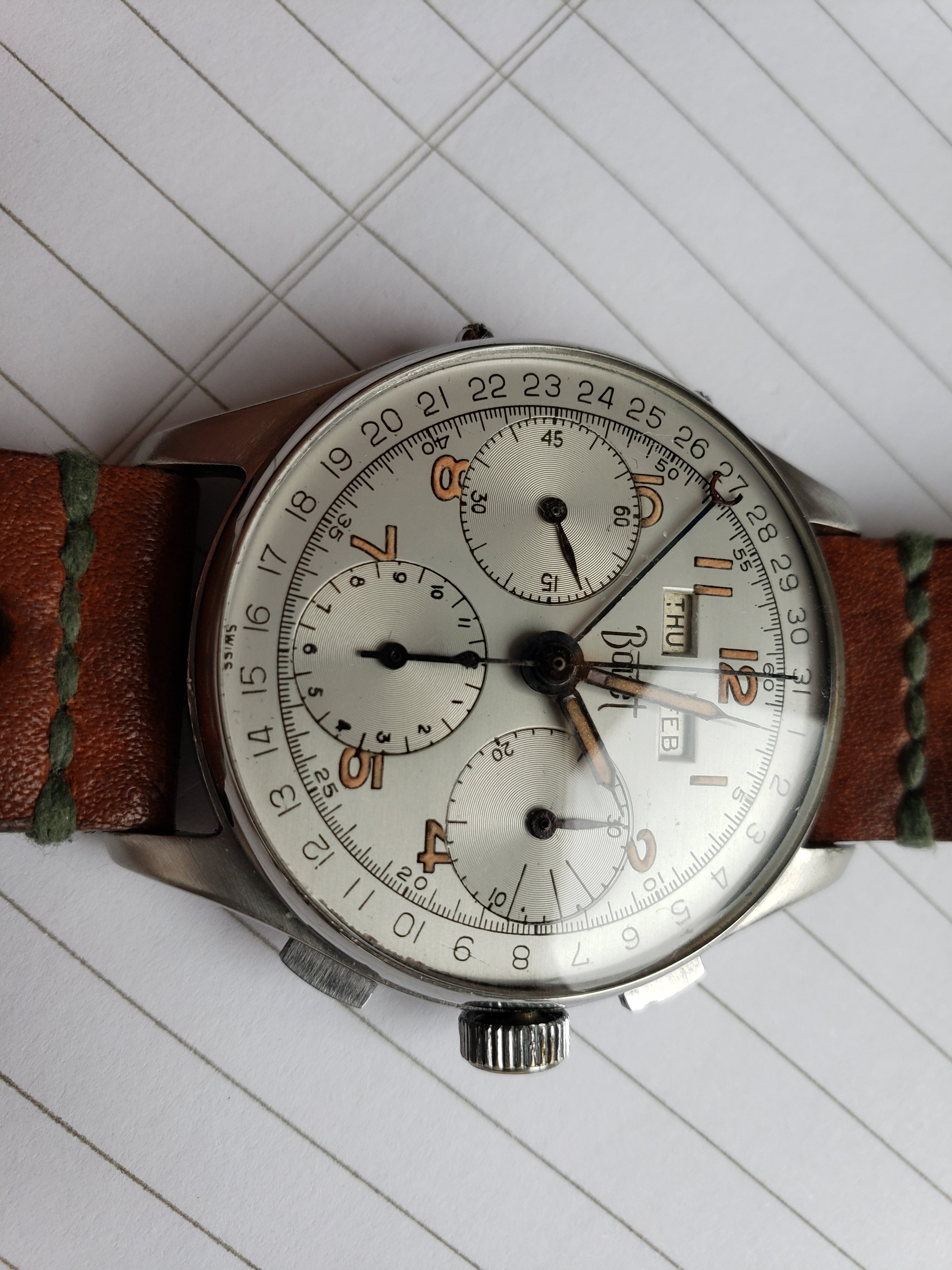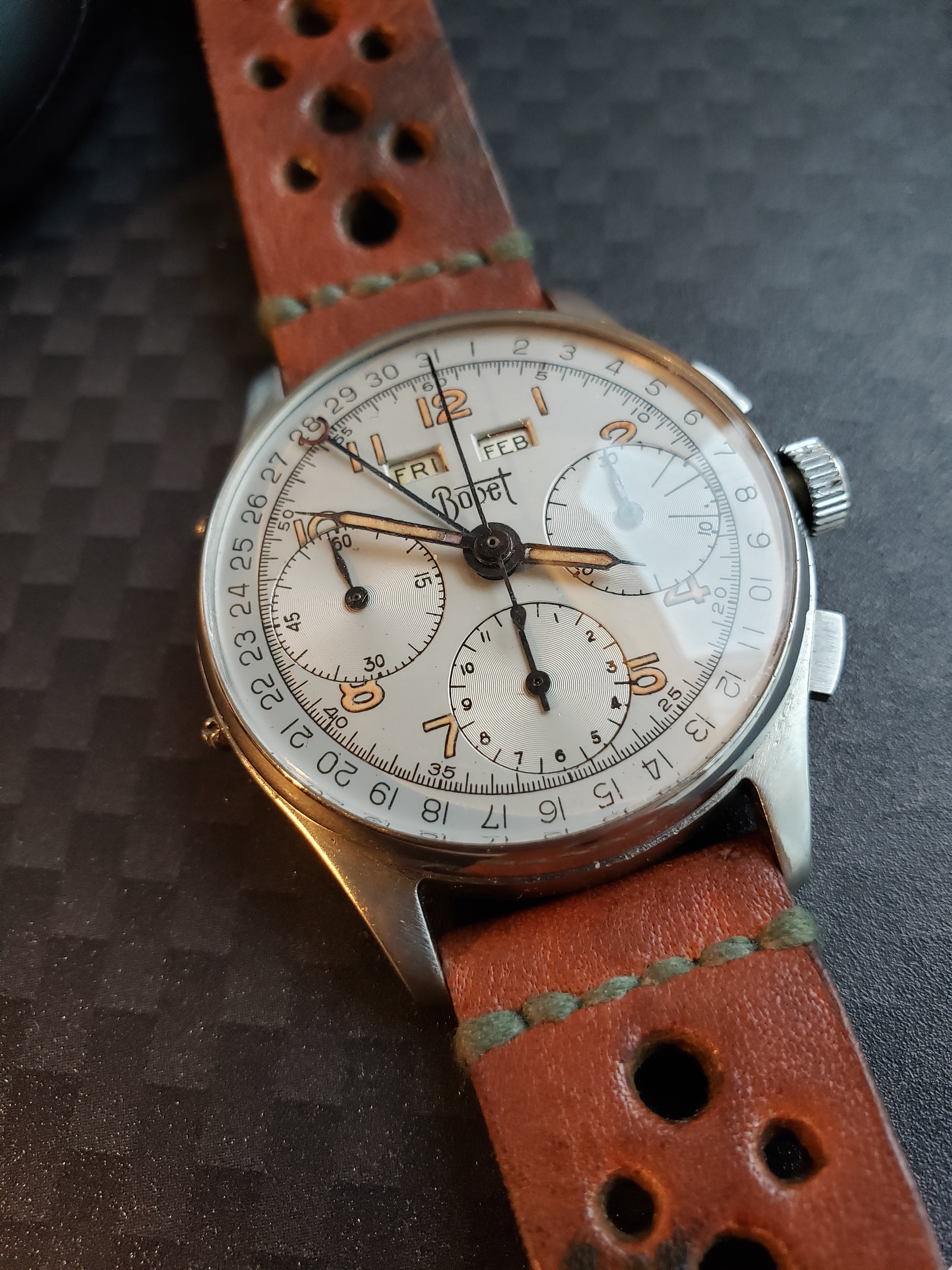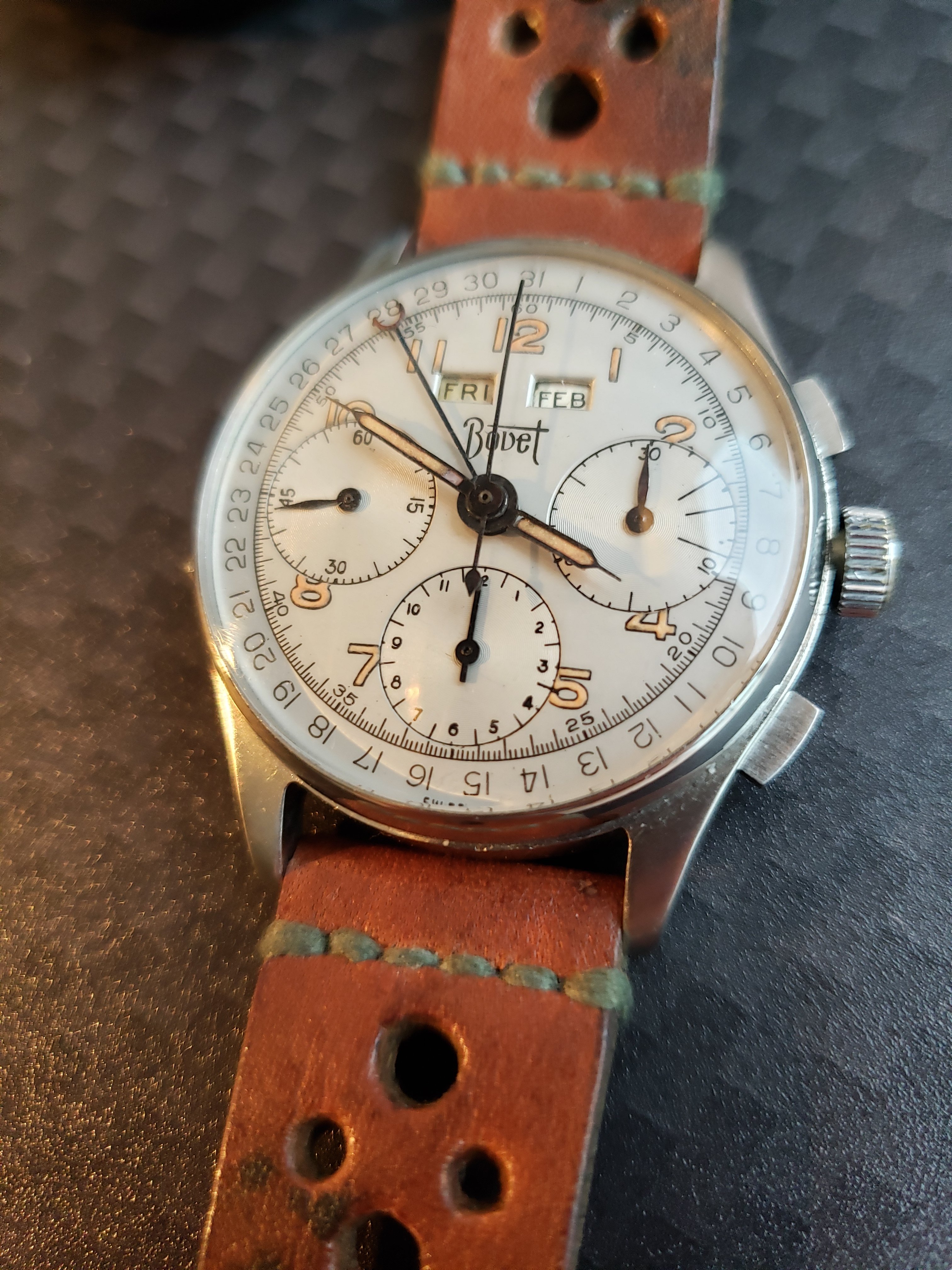 Just Google Your watch. Bovet Dato Compax. There are plenty original dial watches on the Net. One glance will tell you, that you show a re-dial. Kind regards. Achim