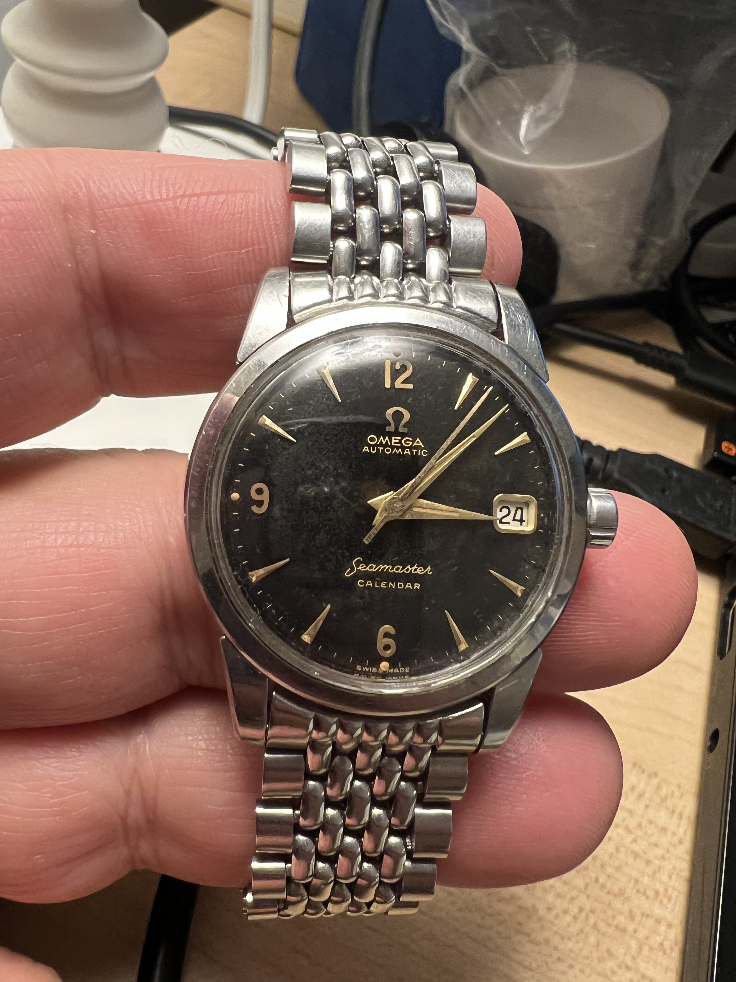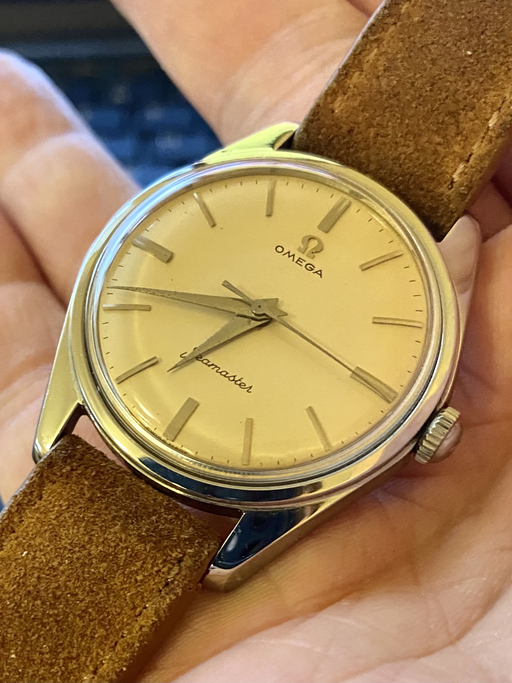 He’s cast an approving eye over my Speedmaster 1863 in the past, so I think I’m safe with Omega. I’d be looking for a piece from 1959, so unfortunately a Speedy is out of the question given the prices. I’ve now begun looking at Seamasters / Devilles but know very little about them. Could anyone point me in the direction of a reliable guide to the different calibres / models from the era, please? I’m thinking something gold, relatively plain (a second hand / complication would be perfectly fine) and probably on a leather strap, £1-2k.