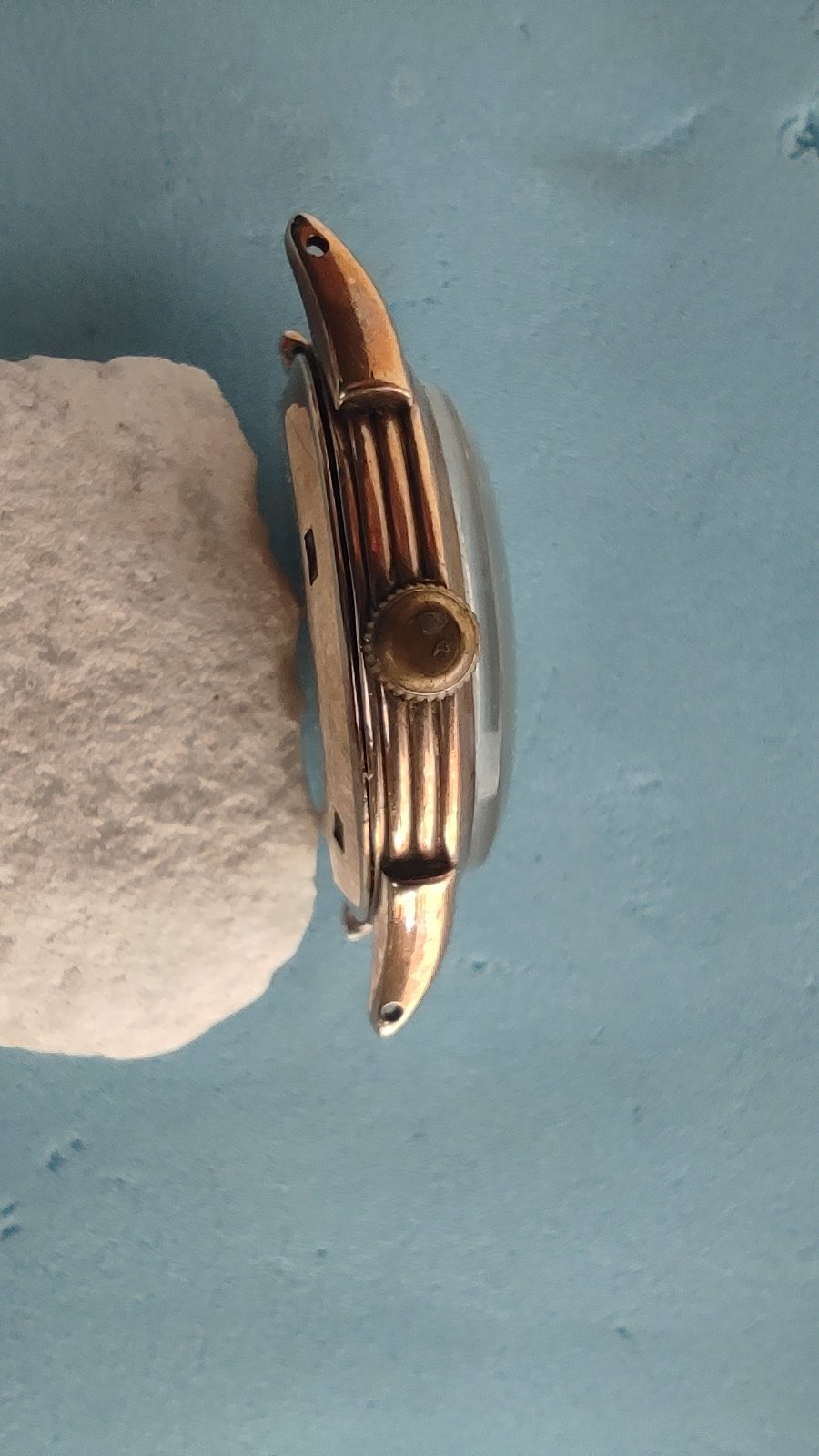 For many years I have had this Omega 9 ct rose gold, 33 mm diameter, in my drawer, it was found in the 70s by my dad while digging in our garden. The clock runs somehow but needs an overhaul.