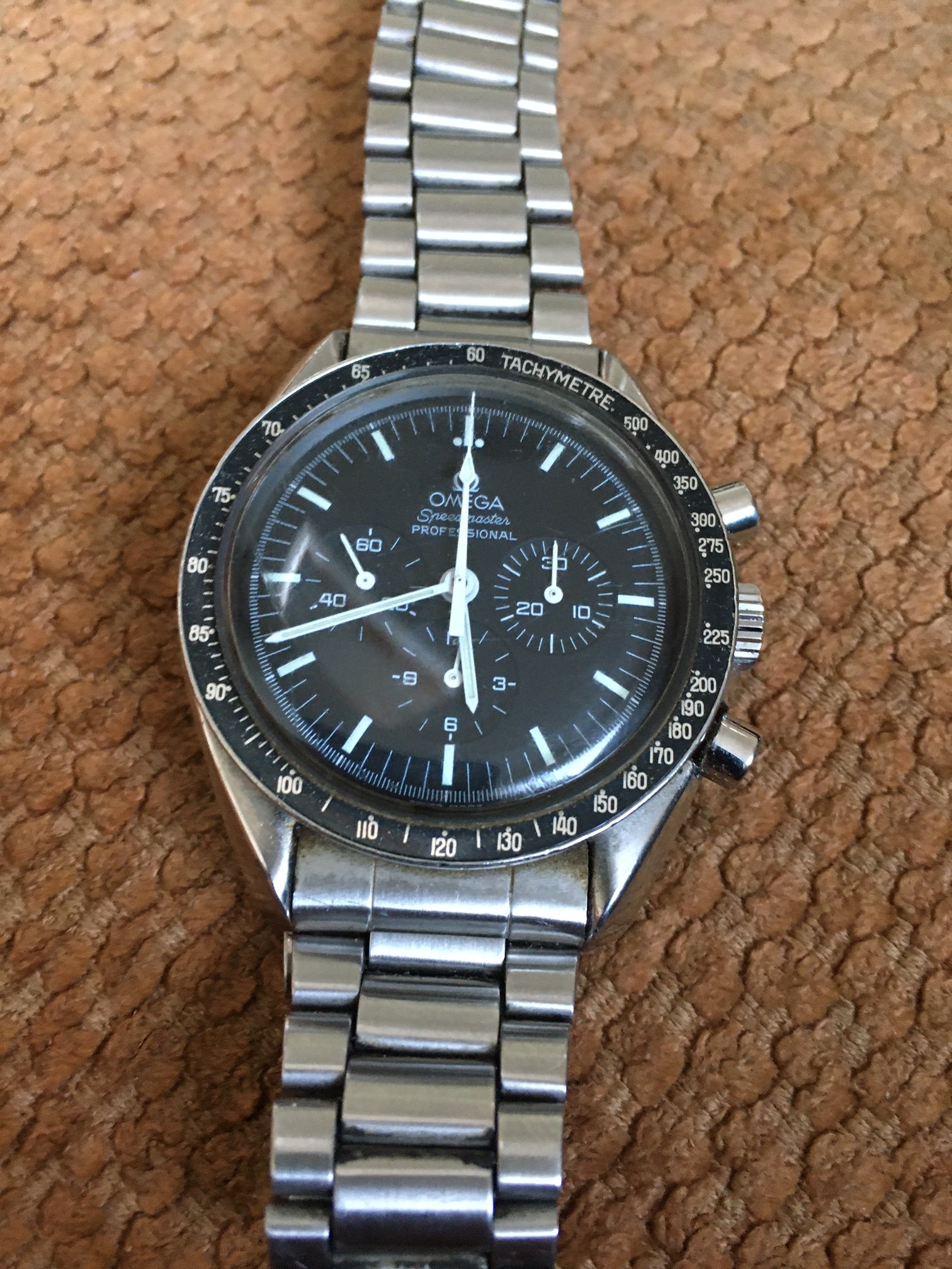 Hi there, I am new to the group and I’ve inherited my uncles Speedmaster Professional. He bought the watch in March 1973 in New York but when I put the serial No in a search engine it comes up as 1974. I have all the purchase papers, clam shell box and original guarantee papers. I have found out that at some point he had the bracelet clasp changed and also the link ends and dial. I would like too put the watch back to original if possible and wanted to know where the best place is to source these items and also the correct ones. I’ve been told that the end links should be 633,s and the clasp should have the trapezoid logo but have no idea what dial to look for. Any idea what the watch would be worth in its present state and is it worth putting back to original. I have attached some photos of the watch. Thanks for any help.