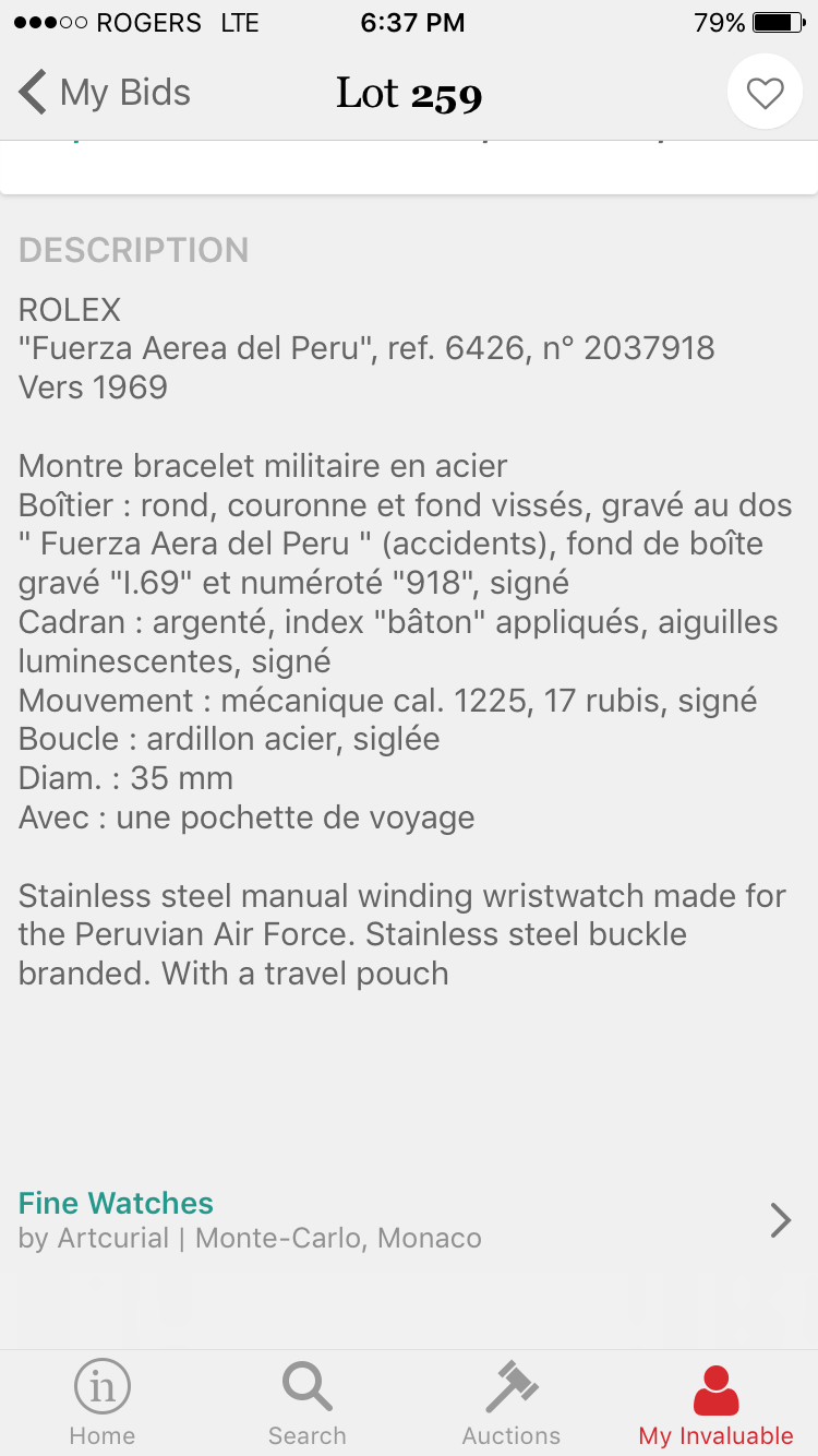 Unfortunately I didn't ask for caseback photos as I had convinced myself I wasn't going to buy, just watch (always a bad move not to know oneself). The red flag should have been the fact that there wasn't any posted given that the FAP provenance was the key to getting a premium over a standard 6426 and the FAP writing on the caseback was therefore quite important. That said, most watches in the sale didn't have multiple photos, so I gambled.