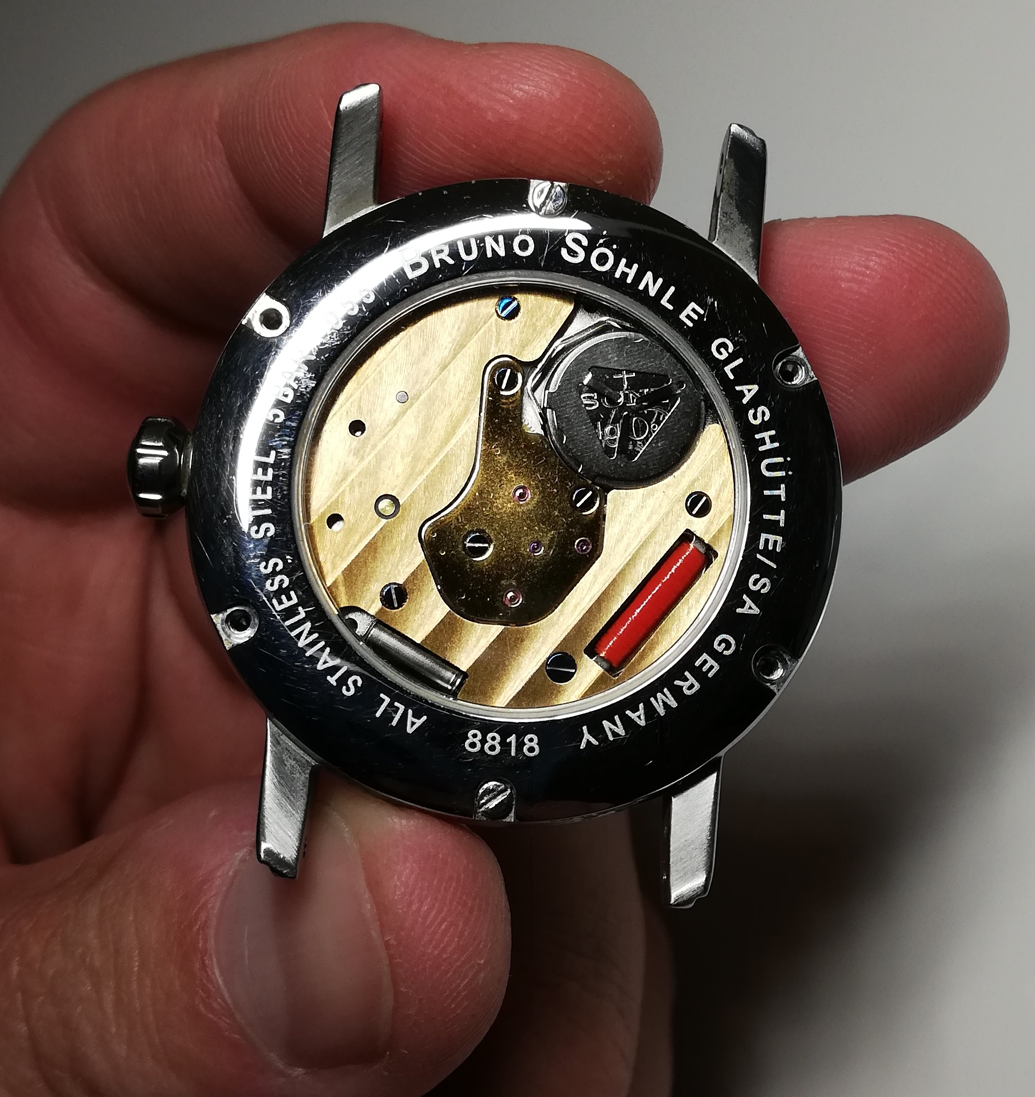 Small introduction: the watch stopped working, he brought it to a watchmaker for the "annual" battery change. But this time the watchmaker said, the movement is damaged and needs replacement. So they sent the watch to Germany for cost estimation. They estimated ~300,- EUR. He refused since that is almost the price of the new watch. After a month or so he got the watch back and then consulted with me for help..
