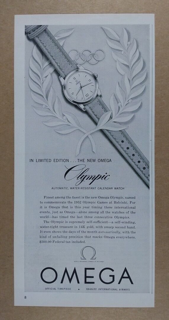 ·Hello, I wanted to see if anyone had any info on the 1952 Olympic 14k watch that was make for the Helsinki games. I have an advert for it, but can’t find anything past that.