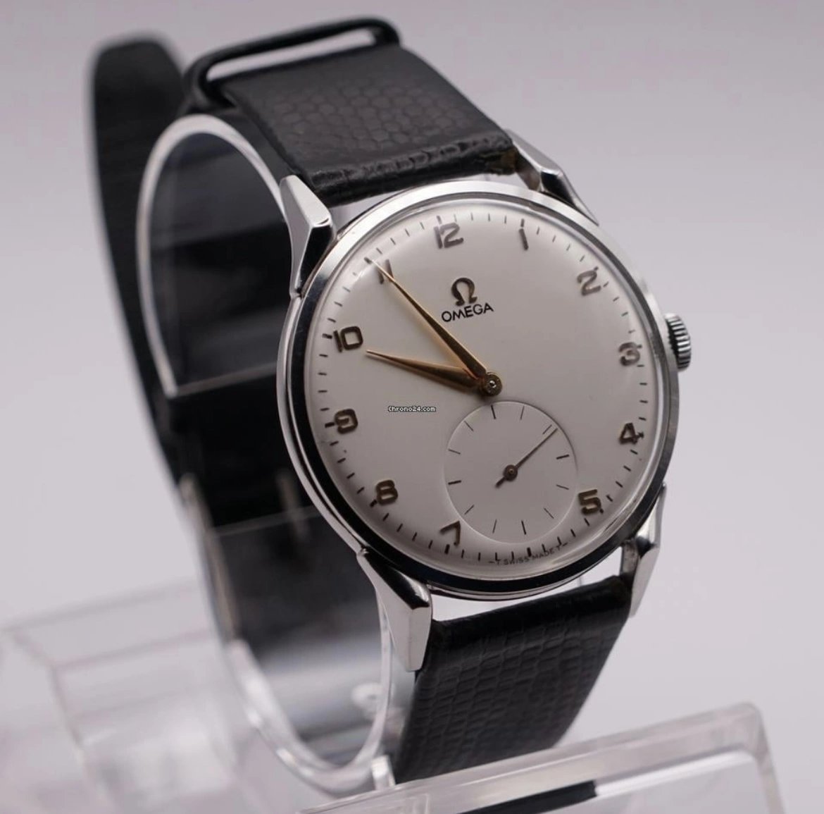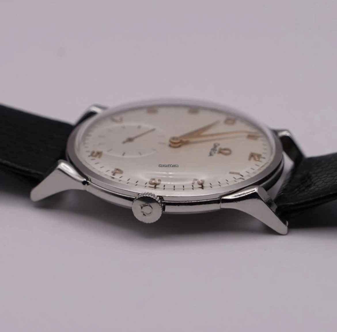 ·So I’ve seen a listing for this « jumbo calatrava » on chrono24. I like the dial design, the spider lugs, everything. But between the misaligned 7, 3 and 2, and the fact that I have trouble finding any info on this specific model online, I am starting to believe that the dial I like so much is a later fake. Movement and case look original, and in decent condition but I’ll wait for the experts opinions ! I’m really not a pro in vintage omegas and my budget isn’t stretchy enough for such a scam. It’s listed for 1550, reduced from a prior 1600.