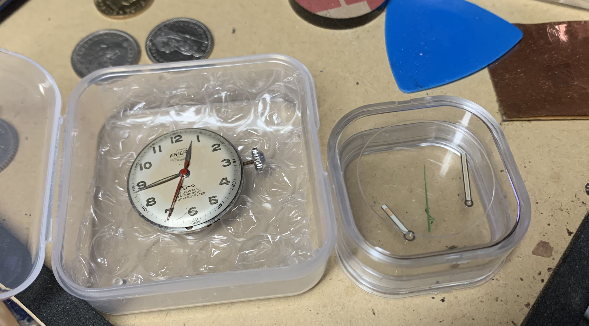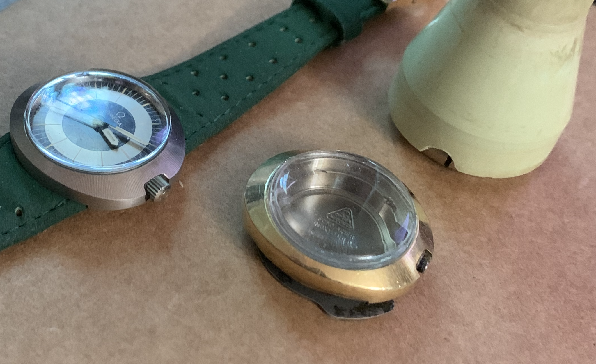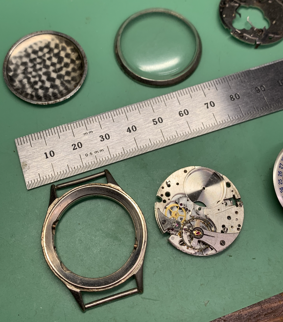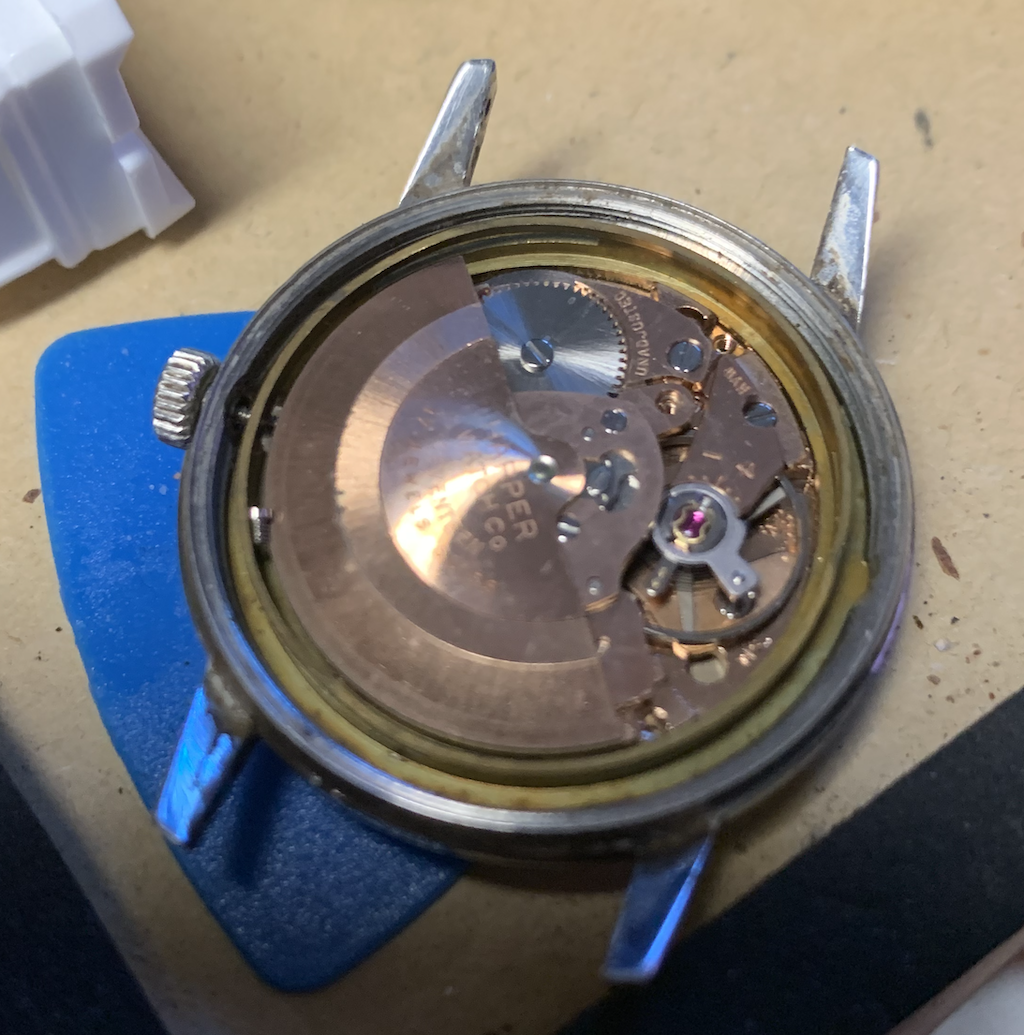 The case however is in poor condition, but it serves a purpose. When I got the new crown and crystal, there was an extra scratched and chipped crystal. That is what got me to purchase this watch case/band parts that have been in my watchlist the last month. This way I can test, practice and play with the tool without risk on the watch I really like. Of course I could not wait to try the band on the moldavian watch. So the first thing I did was swap it. It will be some time before I open the moldavian watch to clean it as there are about 6 watches in the queue before I get to it. (there are watches and there are watches.)