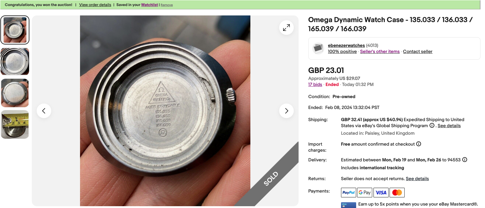 I noticed that unlike other listings that state ended, this one states 'out of stock.' Perhaps it has been sold/returned before. It does serve a purpose, which is for practicing to use the tool 102 lift. The extra crystal (scratched and chipped) was a bonus. Who knows, a movement, hands, and dial may show up someday, I will have an extra crown as well so there is no real reason no to have purchased this. There is also the additional use if I ever decide to make a custom band.