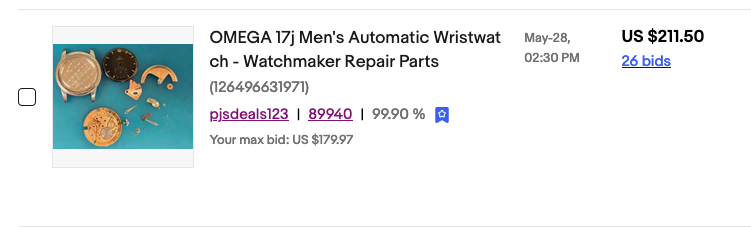 So of course I went for the rebound. I have become quite fond of these 550 movements. So in the last second I hit the bid button and won this instead. About the same price I wanted to pay for the other one.