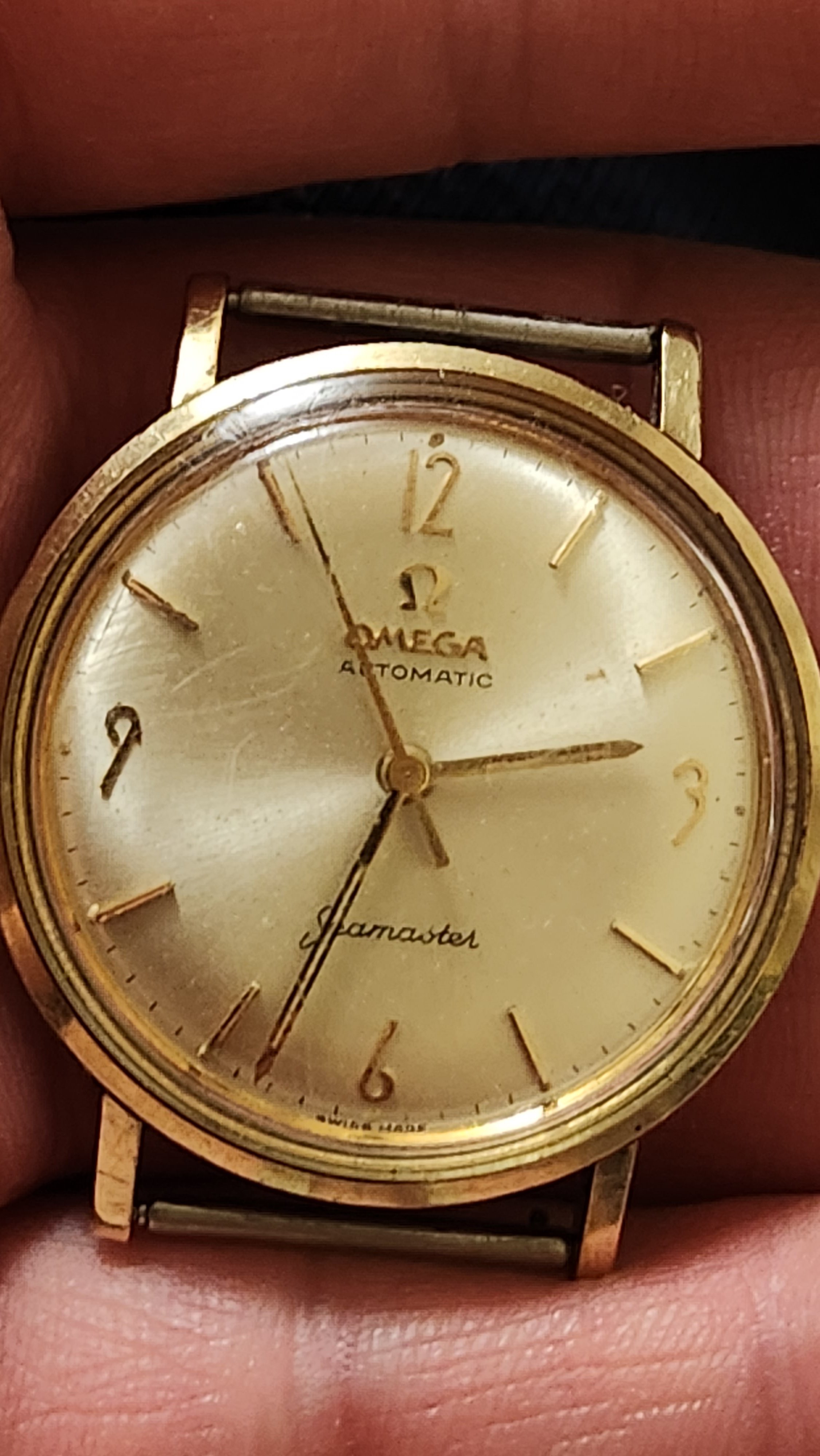 ·Can someone please help me identify my vintage omega seamaster. The serial number is 1903XXXX and the case reference number is 14765. The caliber is 552. I'd like to know how many carats the gold is (back is stainless), if it is gold plated or solid gold, and possibly the value. Additionally, I have looked online for a while to find a seamaster with the shape of the 3, 6, 9, 12 on the dial like mine and I have found nothing. Is this a special watch possibly made for a short period of time? Any info would be greatly appreciated