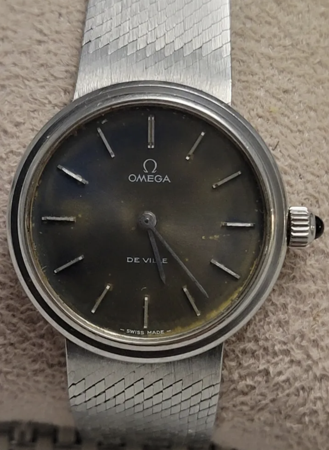 Crown is original. Omega used crowns with cabochon inserts on a number of models, e.g. ST 711.2027 and ST 311.0165.