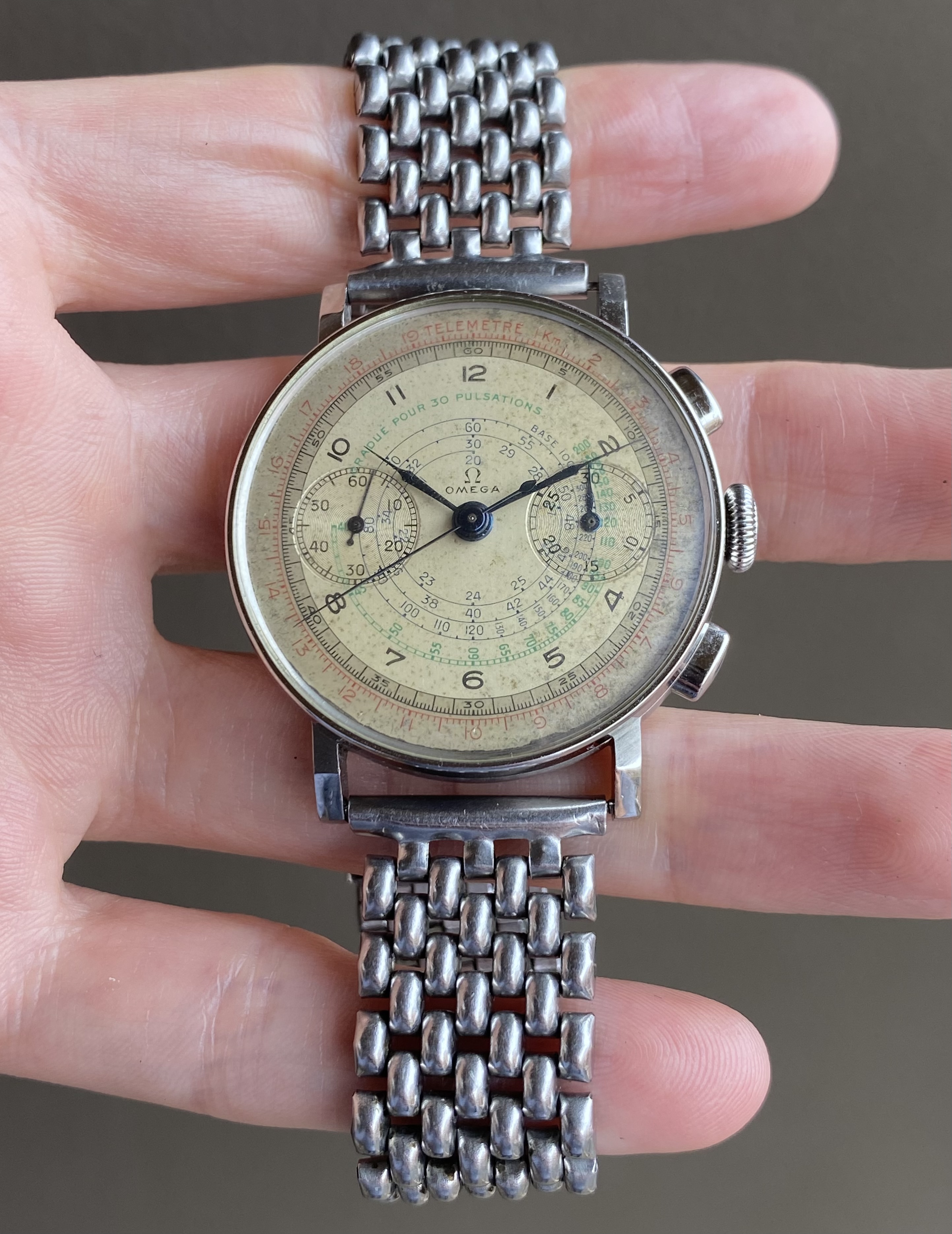 What are people's opinions on the originality of this dial? It seems all correct to me, I think - but the mint green is an extraordinary choice, and the white background I would have expected to see a greater diversion of tone across various aspects of the dial. My opinion was that it was a good refinished dial - anyone think otherwise?