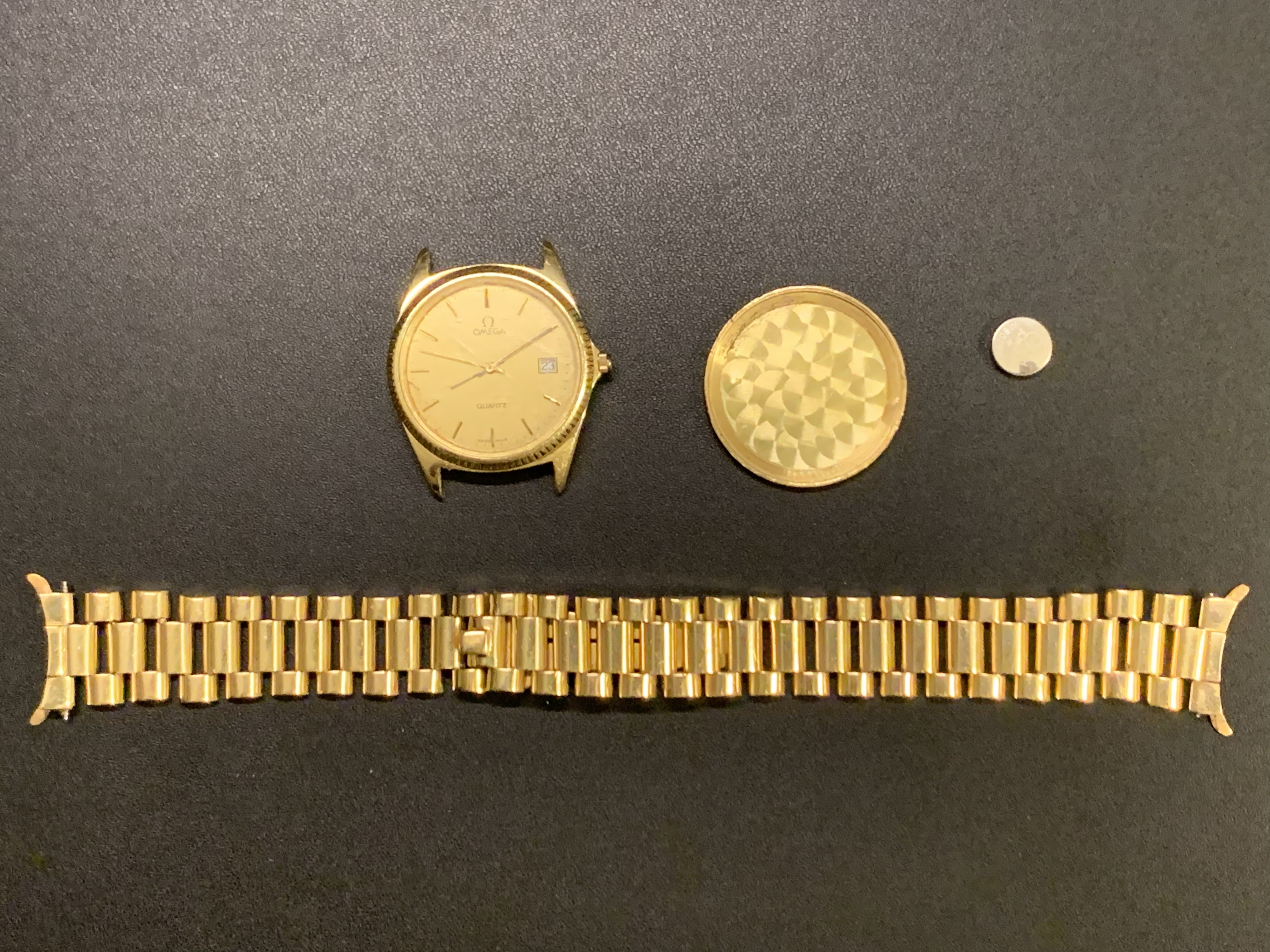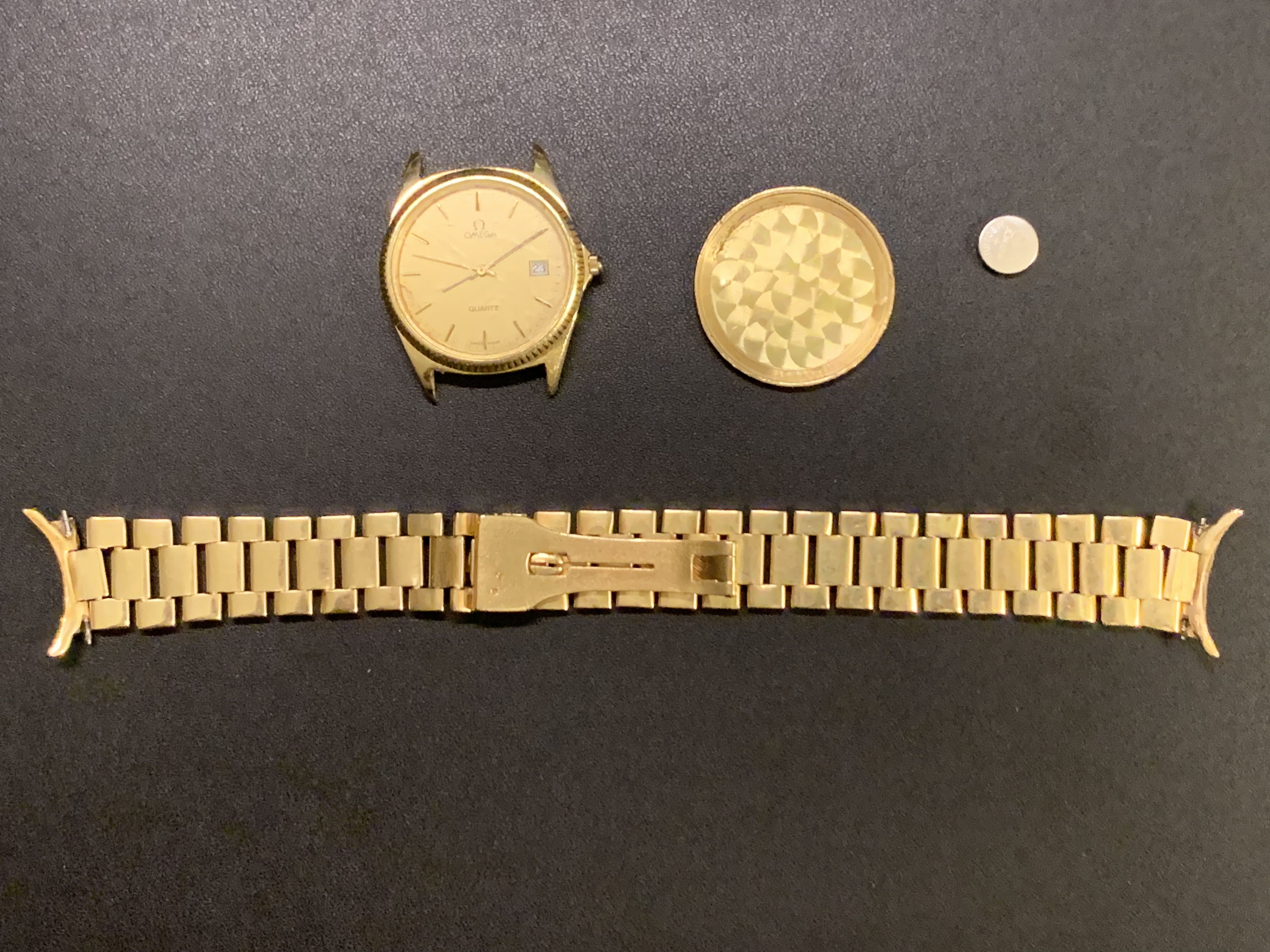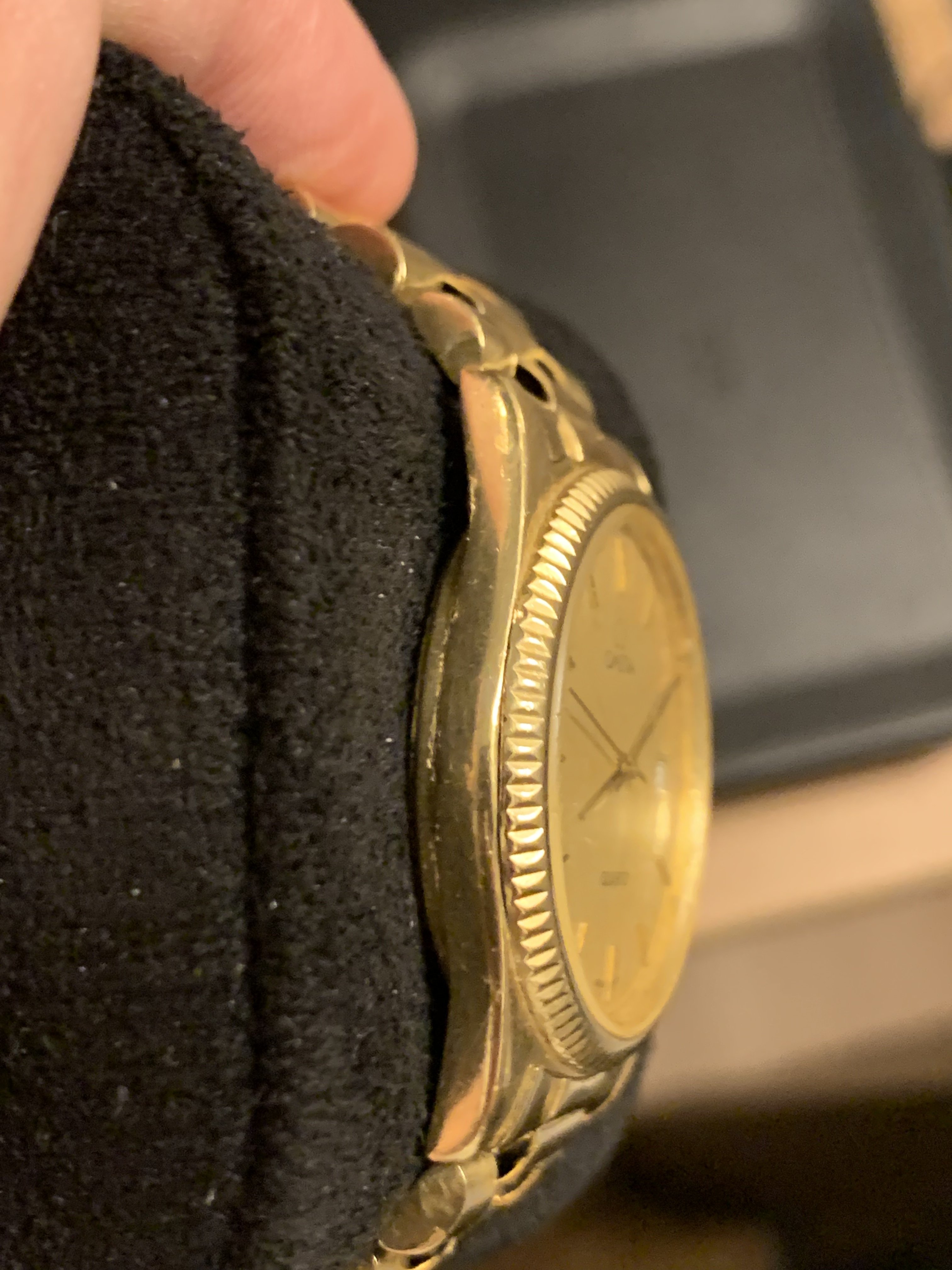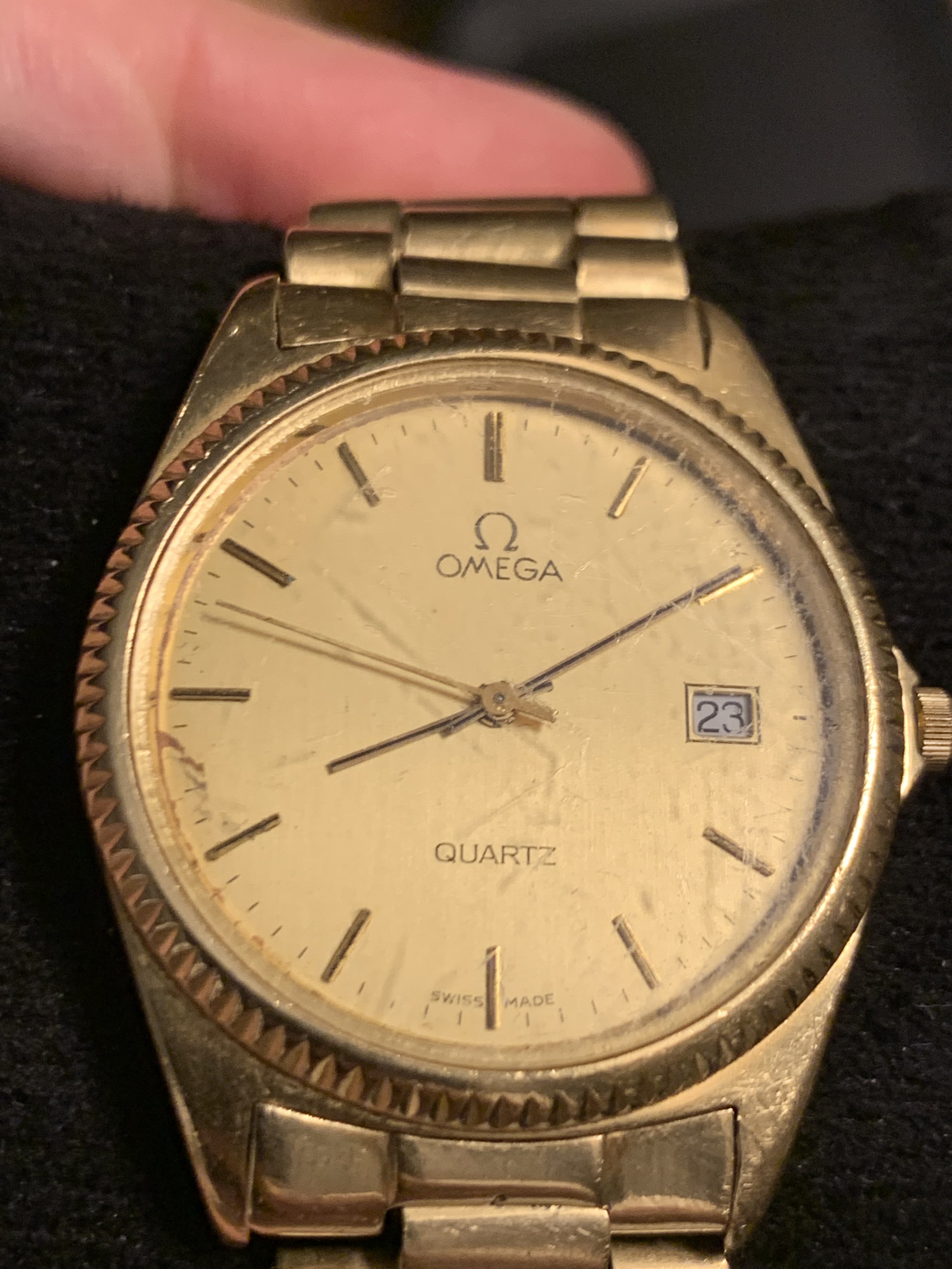 It was purchased in a jewelry shop in Malaga (Spain) sometime in the early 80s by my mother in law, no box or papers. My understanding is that local goldsmith used to buy cheap omegas, disassemble them, cast a gold case, case back, bracelet, and swap the movement, dial and acrylic, and sell them like the real thing… but now we doubt the dial or movement are original ♂️