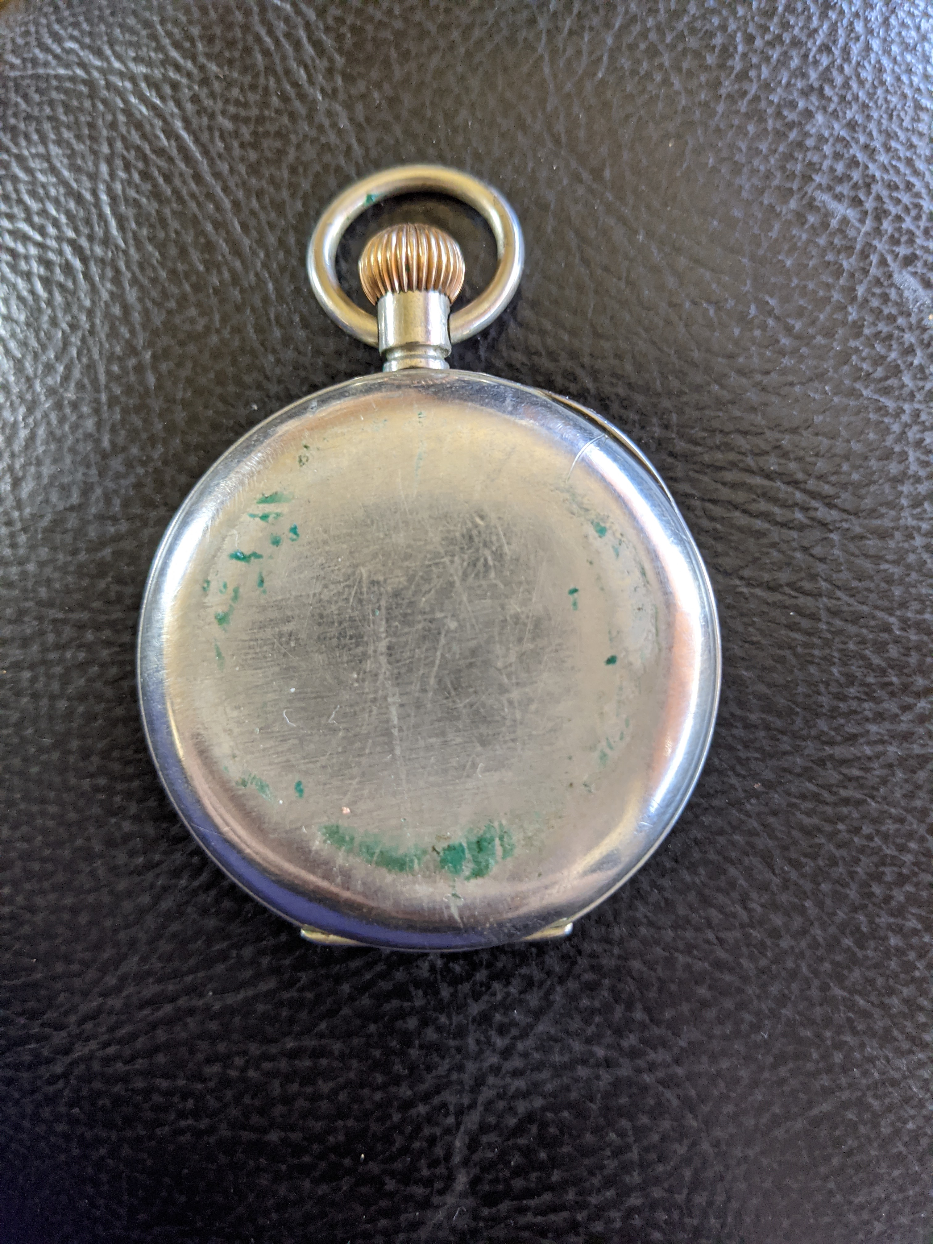 My dad has this pocket watch and we would love to find out some more about it. Any information on its age, materials, value (purely curiosity, he's not planning to sell) or absolutely any other information would be so helpful, we know nothing for certain about it! If it has a name or model so we could do some more research on it even (forgive me, I don't know a lot about watches, so I can't really say what the movement is either.)